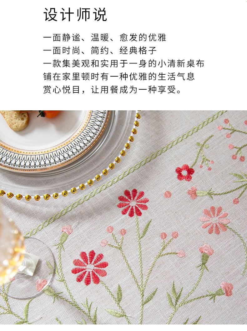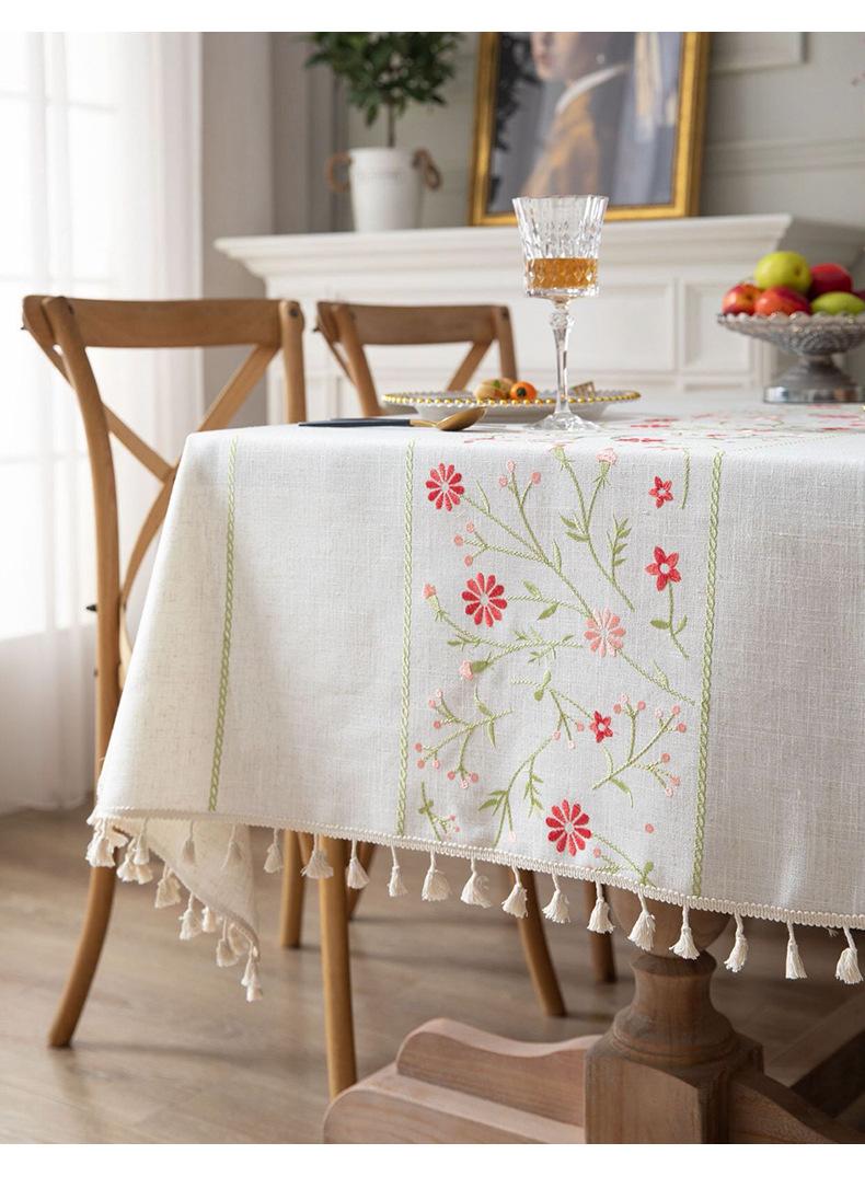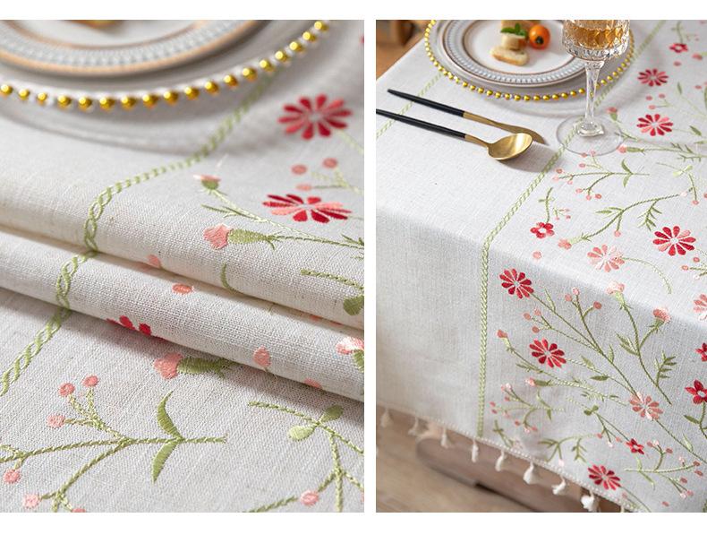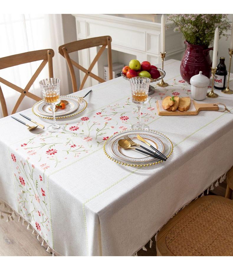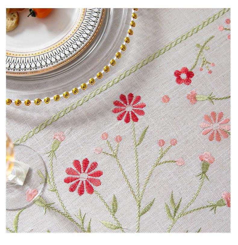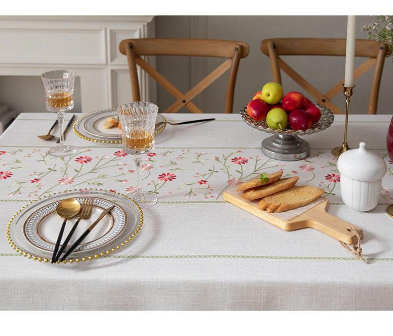 Mantel de algodón y lino bordado, moderno y sencillo, blanco, con pequeñas flores, estilo pastoral francés, para el hogar y el restaurante occidental.