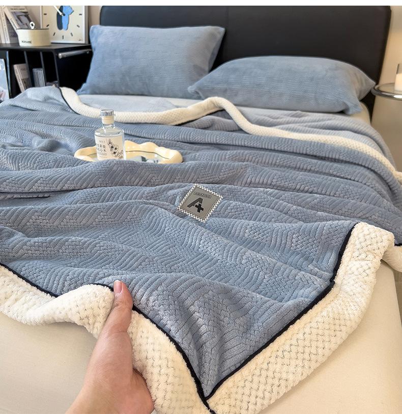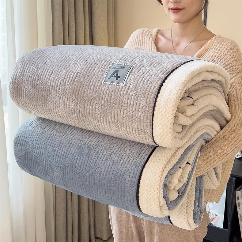 Manta de vellón de leche gruesa para la siesta de invierno en la oficina, manta de sofá de vellón coral con brida, manta para aire acondicionado, venta al por mayor