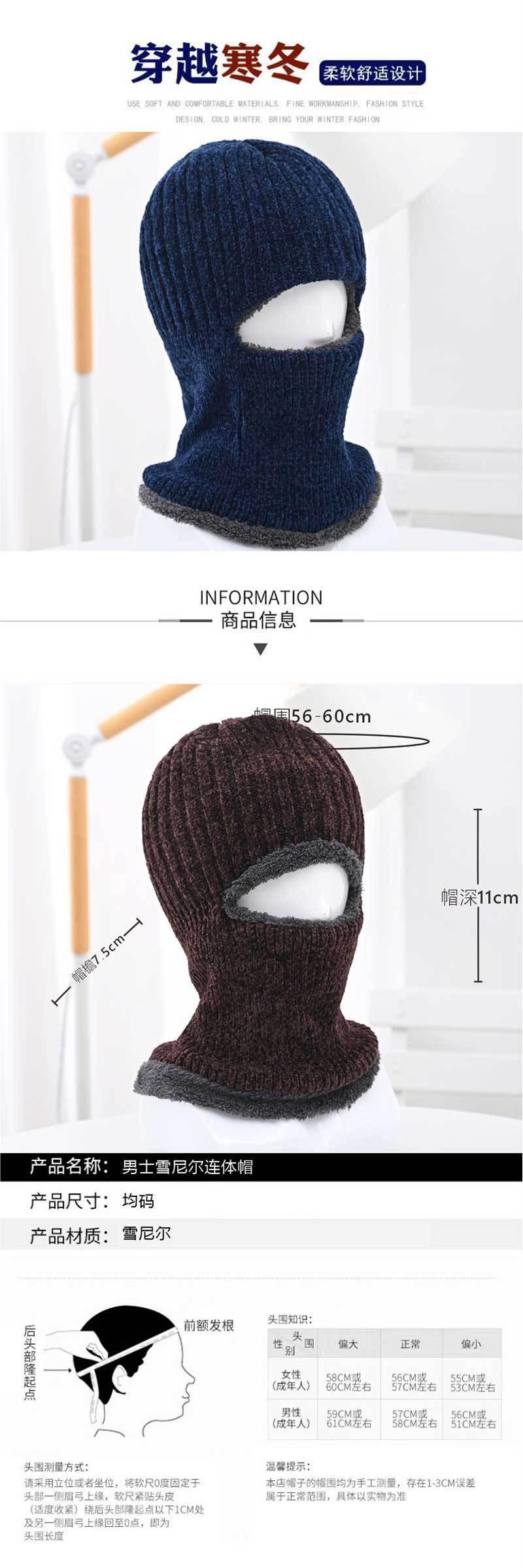 Gorro de invierno para hombre, para ciclismo al aire libre, resistente al frío, con forro polar, cálido, de punto, con protección para las orejas y el cuello, de lana integrada.