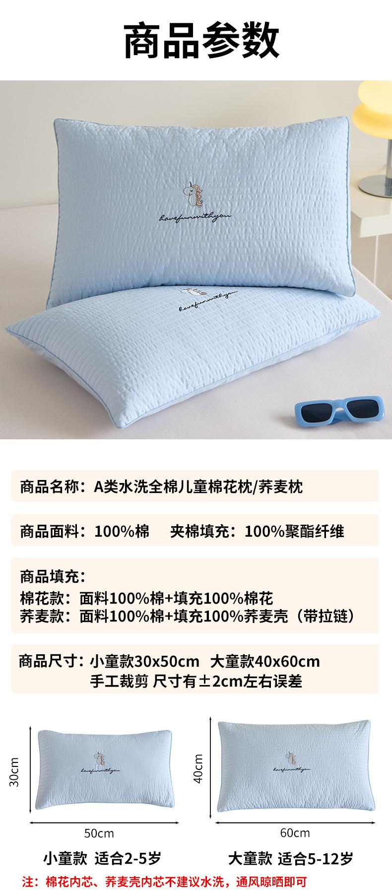 Almohada de algodón para niños de clase A, bordada con dibujos animados, de trigo sarraceno para estudiantes, para el hogar y para bebés.