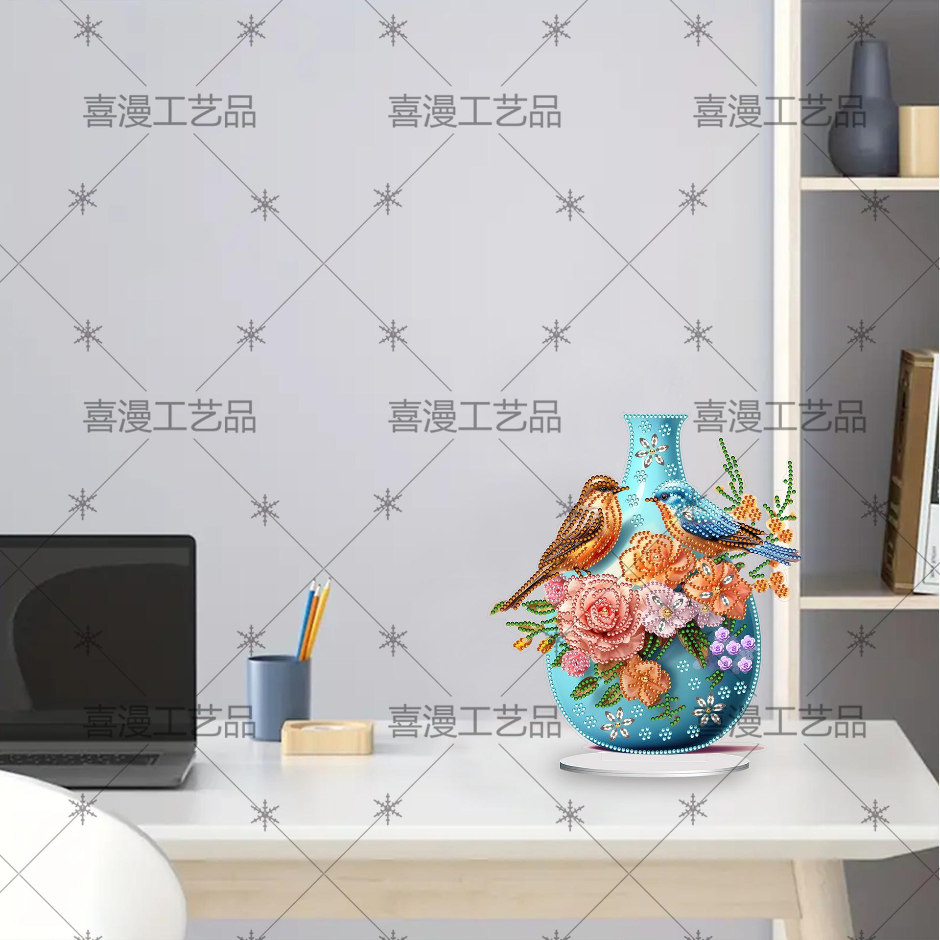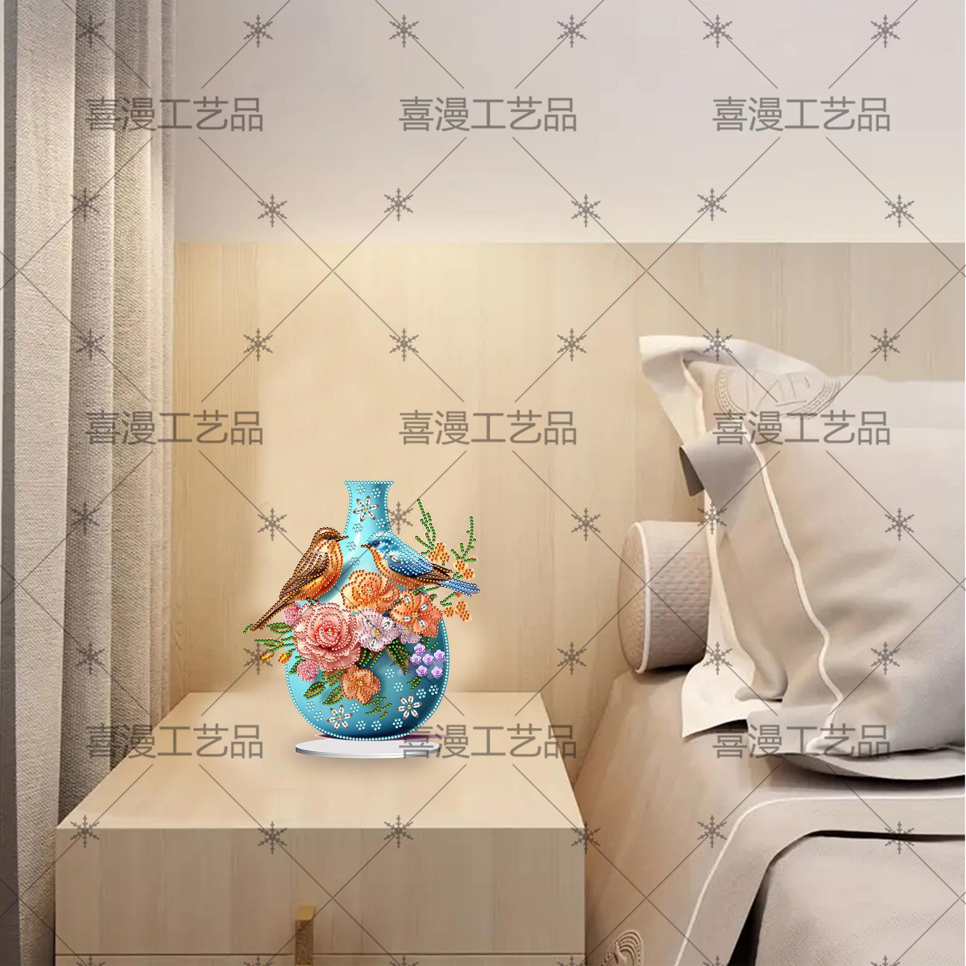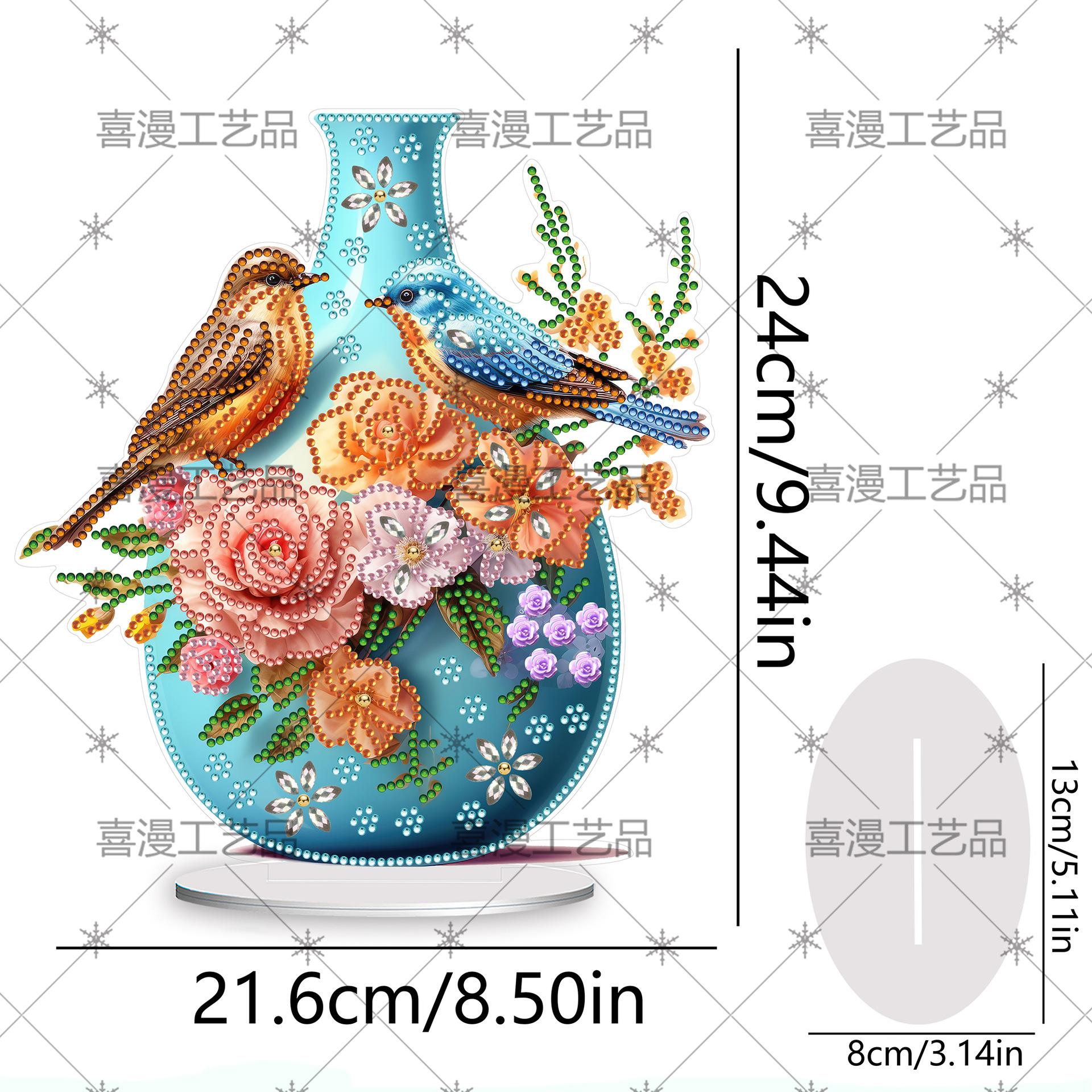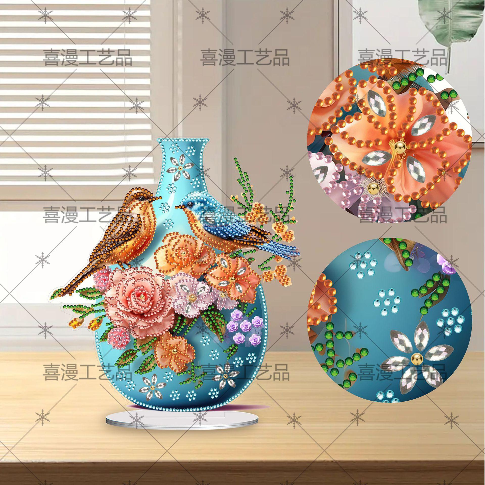 Jarrón Estéreo Creativo 5D Transfronterizo con Forma de Pájaro Redondo de Cristal Adornos de Pintura de Diamantes DIY