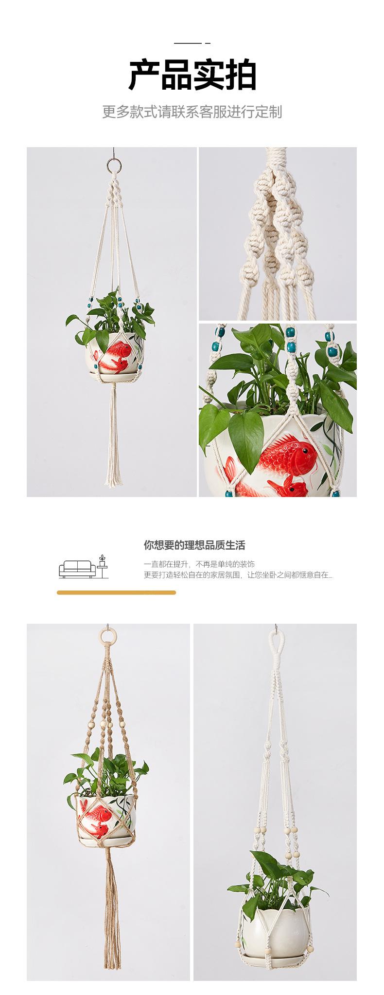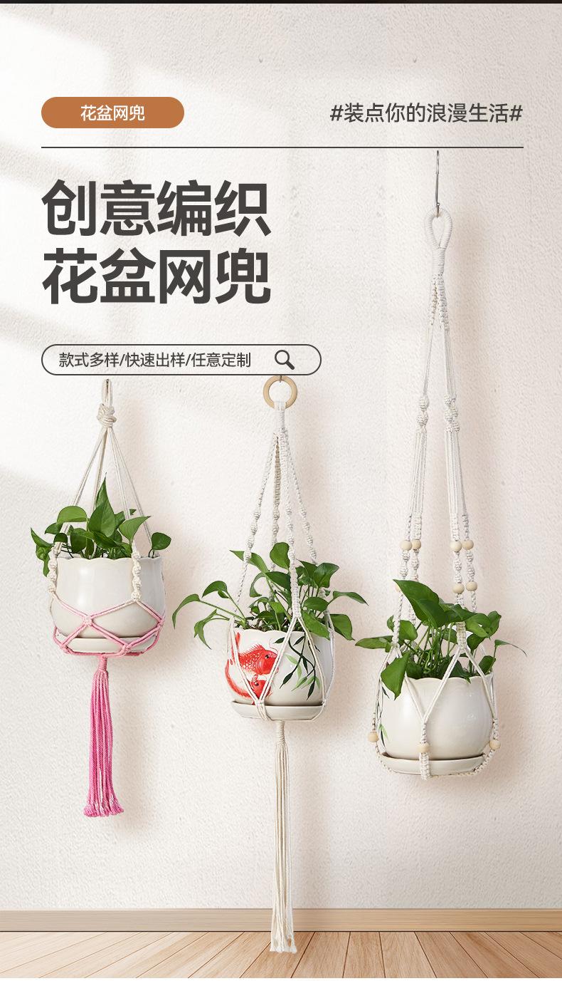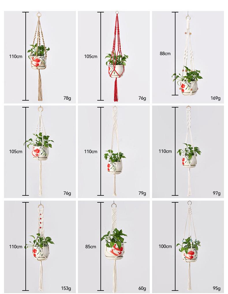 Bolsa de red para macetas, cuerda de algodón tejida a mano, para jardinería, tejido verde, para colgar en interiores y exteriores, cesta colgante decorativa