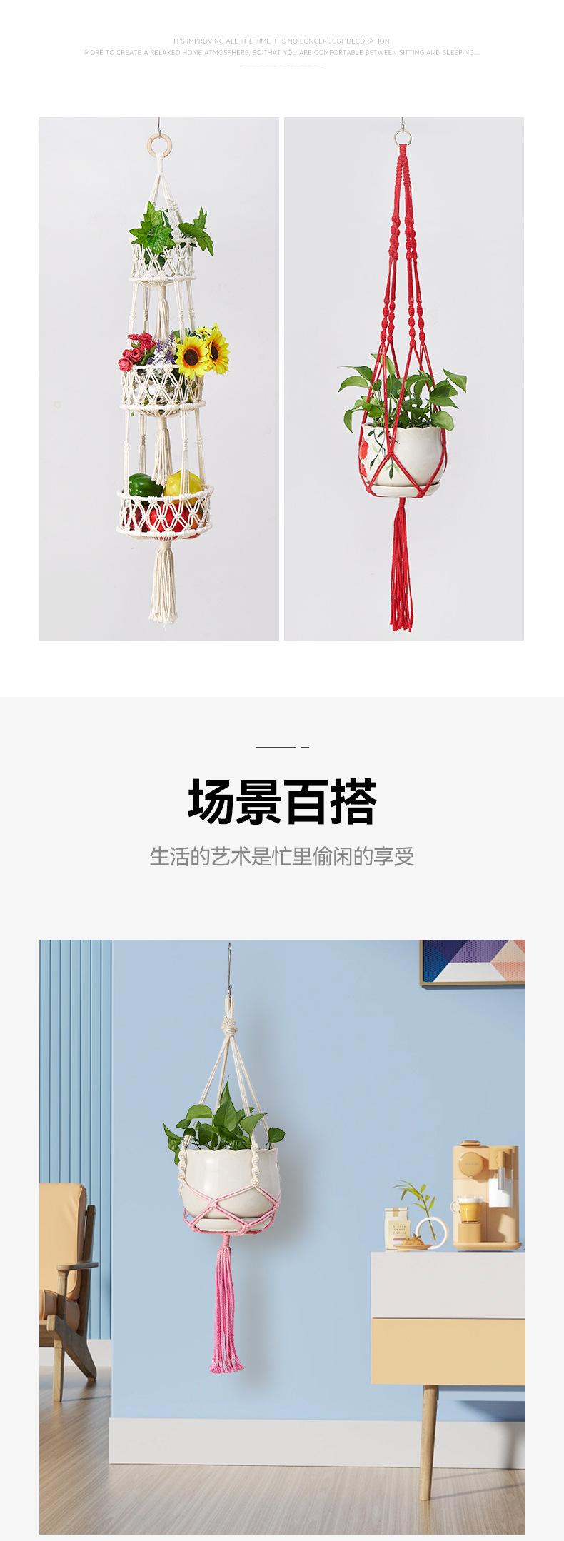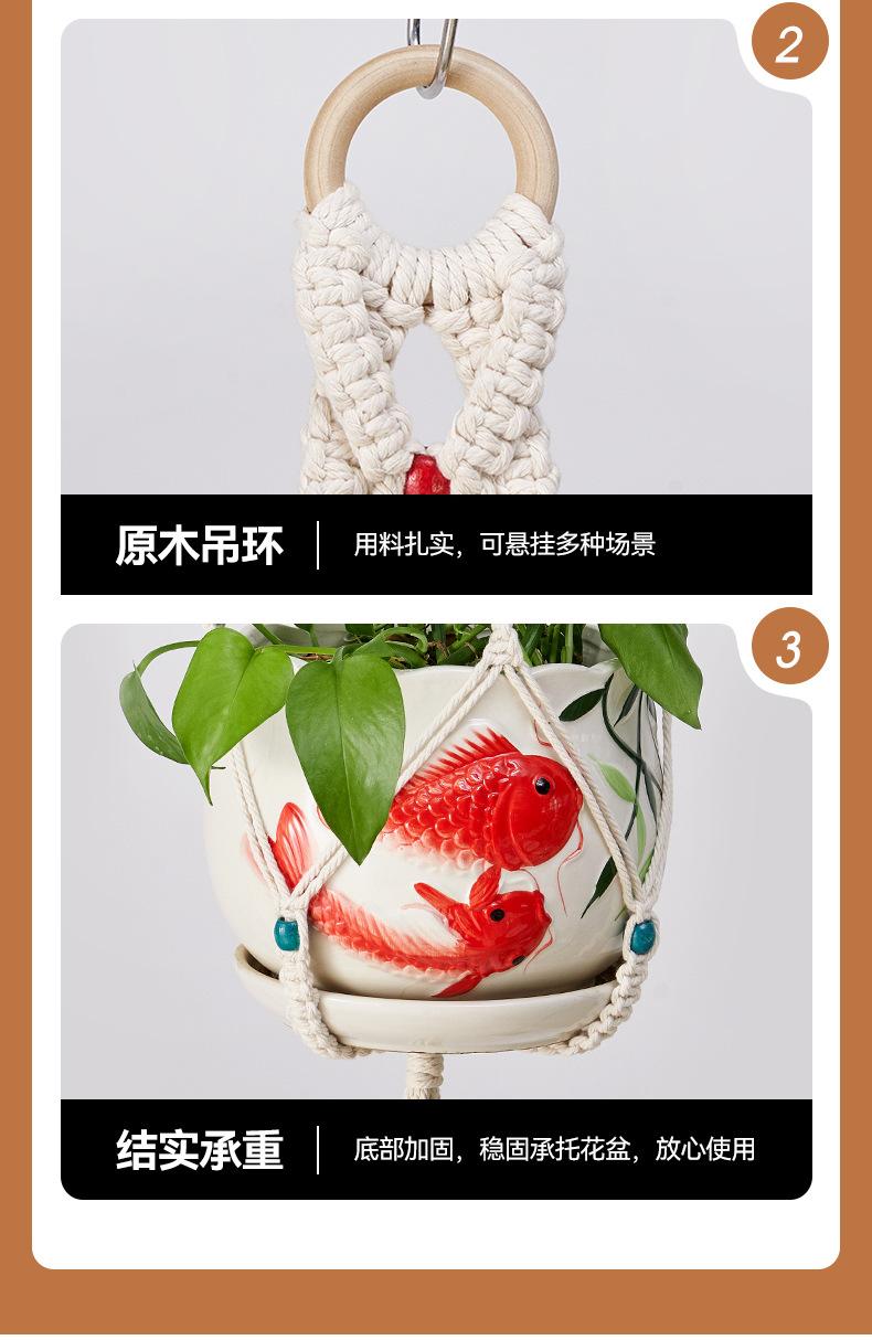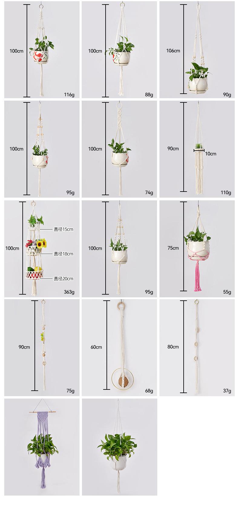 Bolsa de red para macetas, cuerda de algodón tejida a mano, para jardinería, tejido verde, para colgar en interiores y exteriores, cesta colgante decorativa