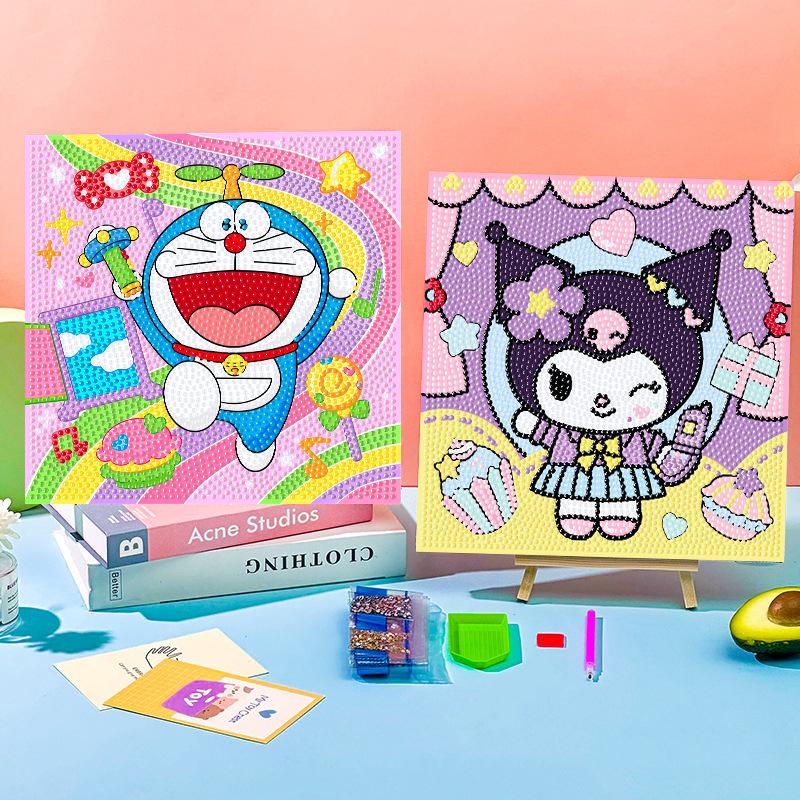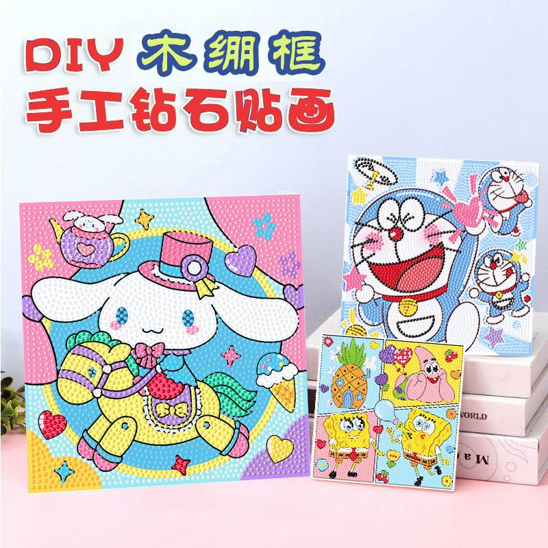 Pintura de Diamantes DIY 20*20 Comercio Exterior Transfronterizo Dibujo Animado Infantil Hecho a Mano Pintura Decorativa Kulomi Marco de Madera con Rebote