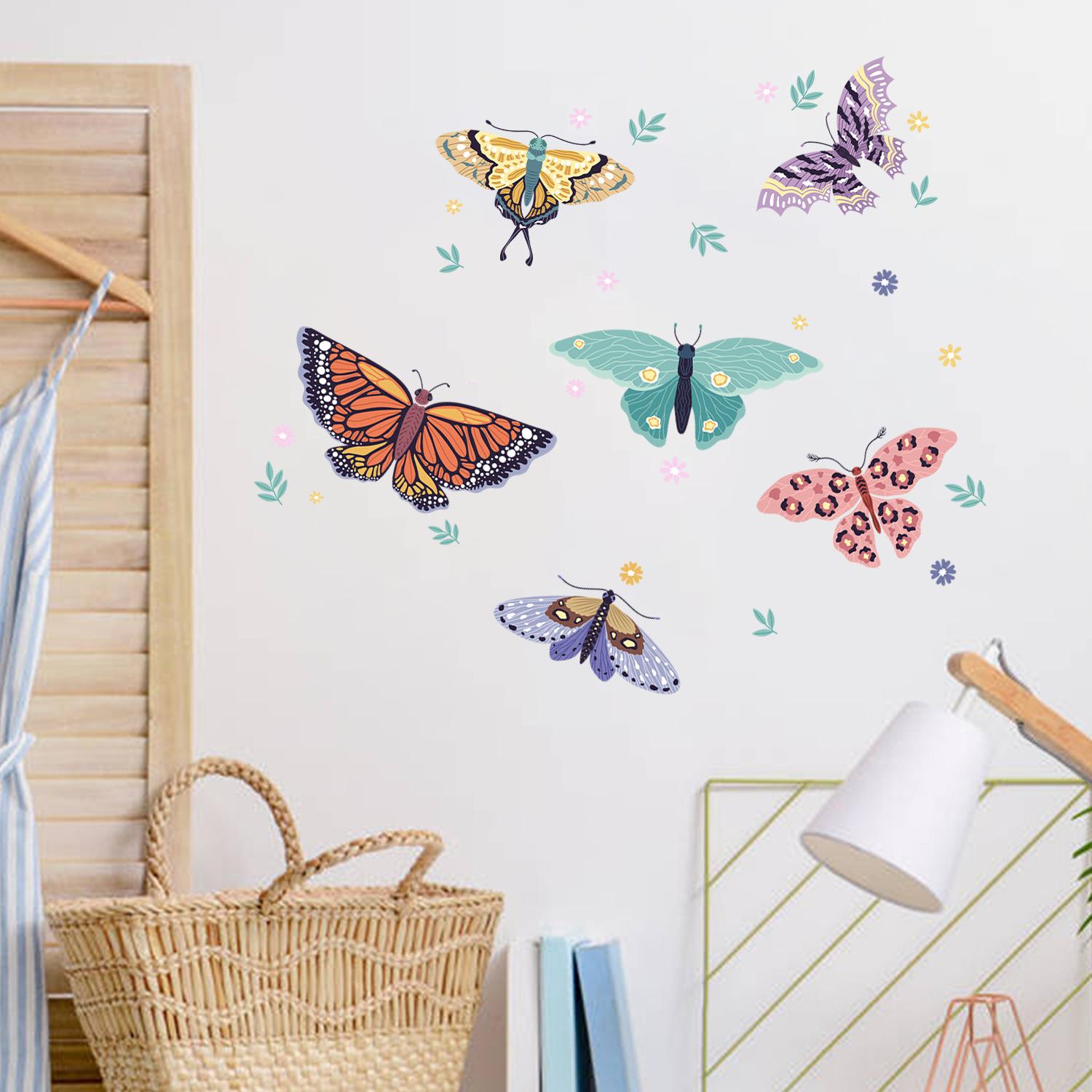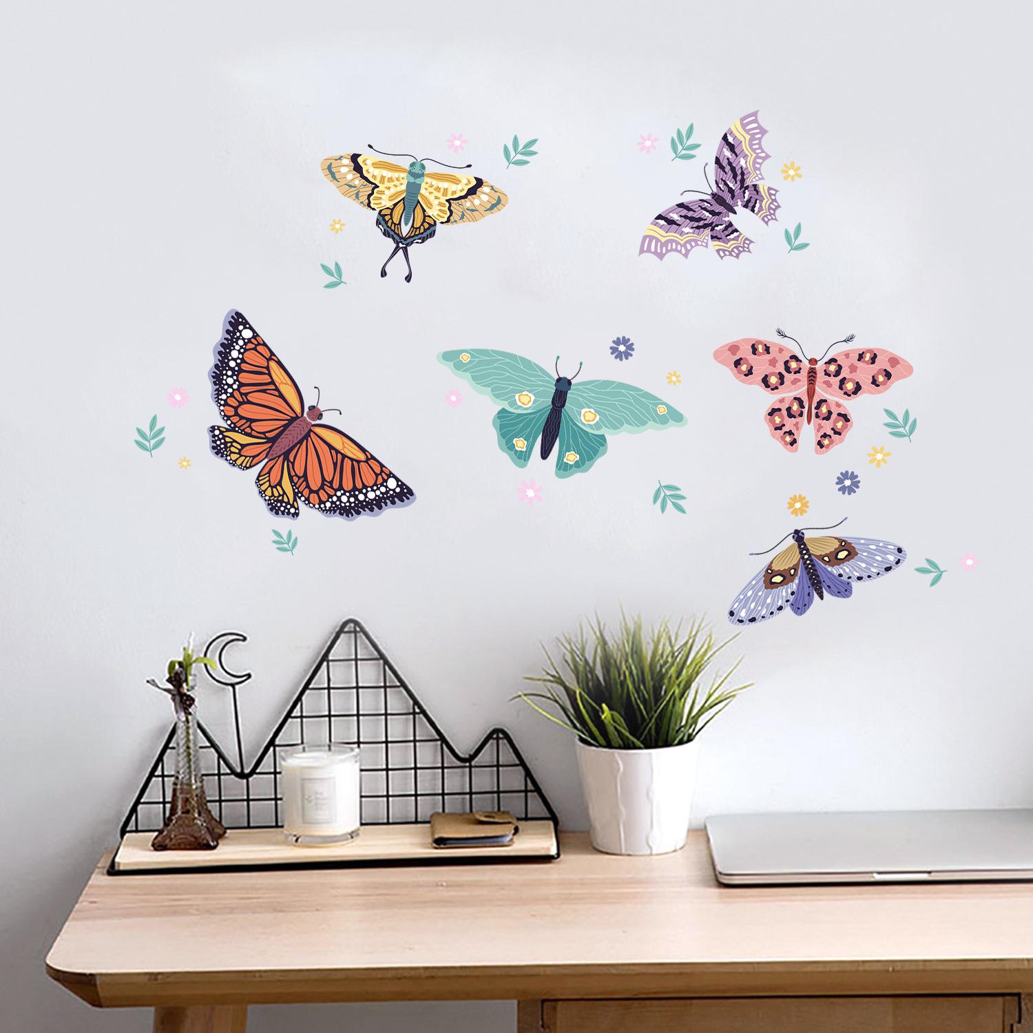 Pegatinas de Flores de Mariposa para Comercio Exterior de Amazon Transfronterizo Arreglo Decoración Habitación Dormitorio Sala de Estar Pegatinas de Pared Venta al por Mayor