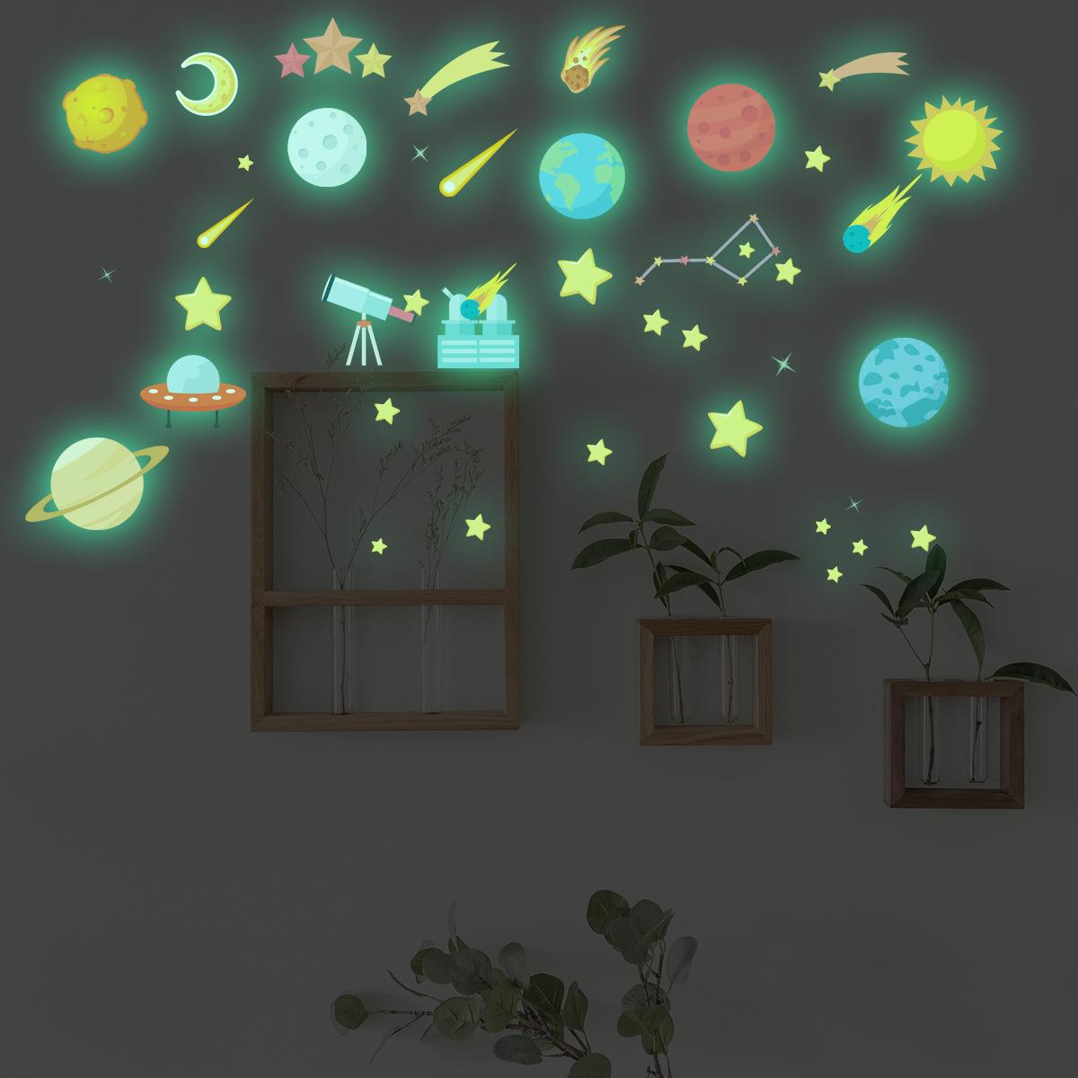HP-YG033 Pegatinas luminosas transfronterizas de estrellas y luna para habitación infantil, pegatinas decorativas luminosas, autoadhesivas fluorescentes