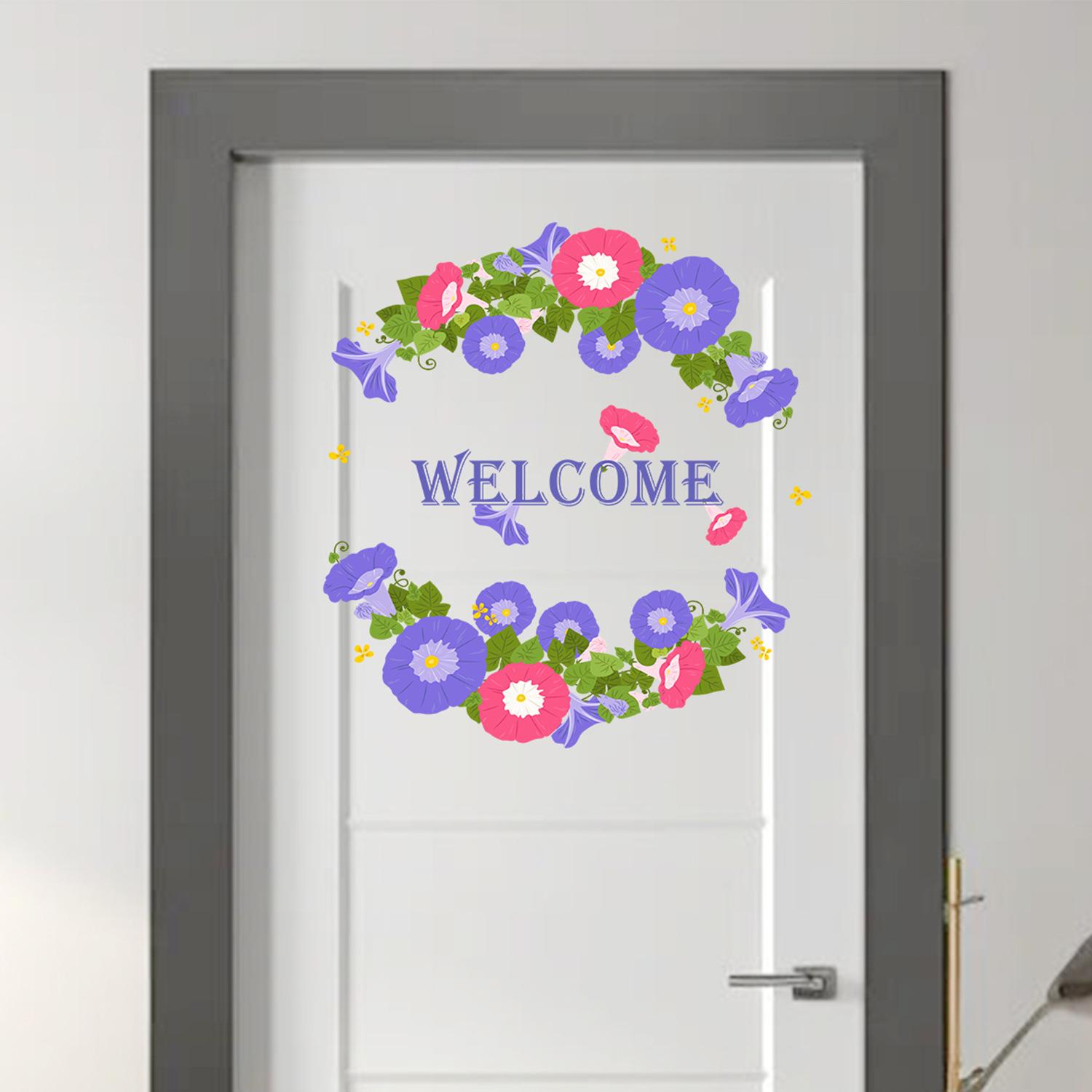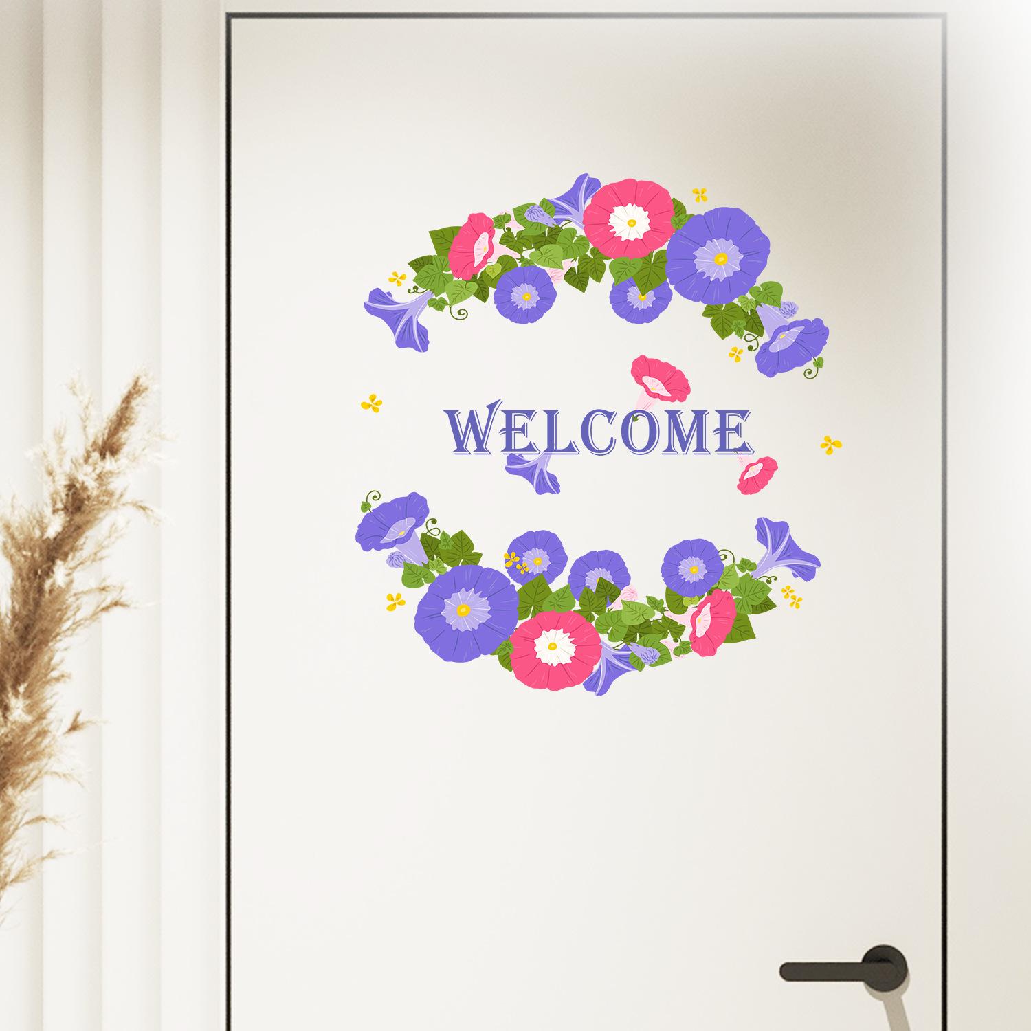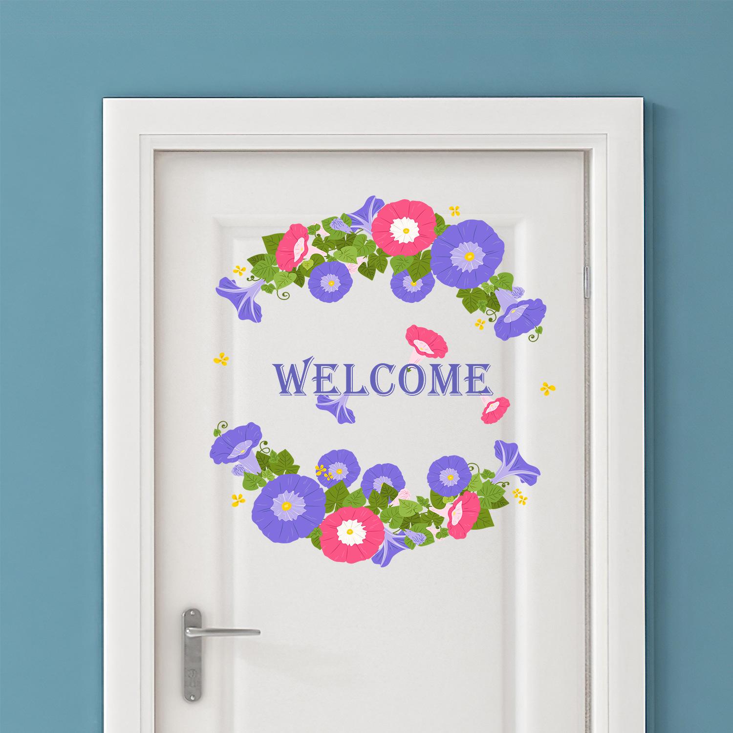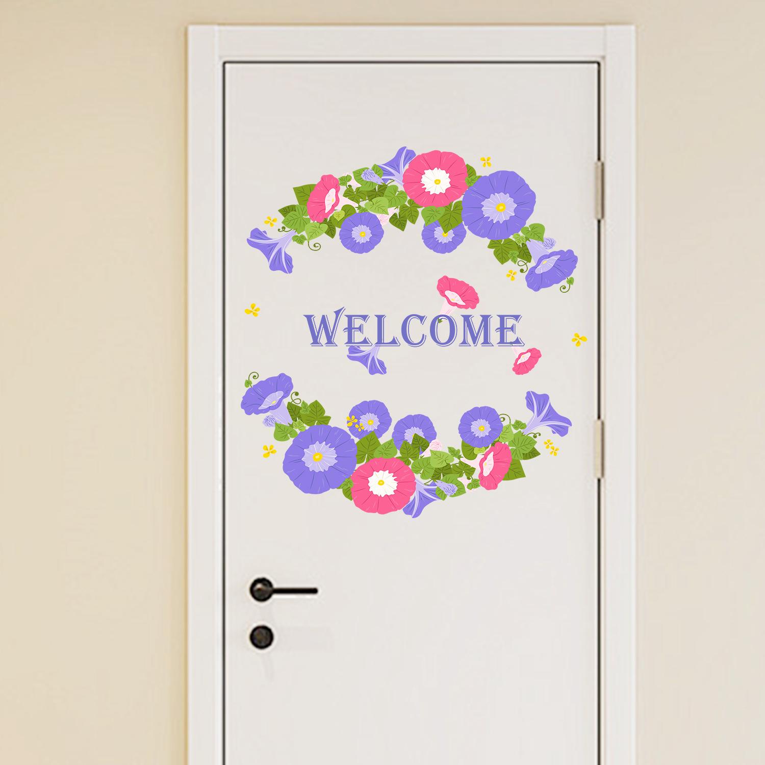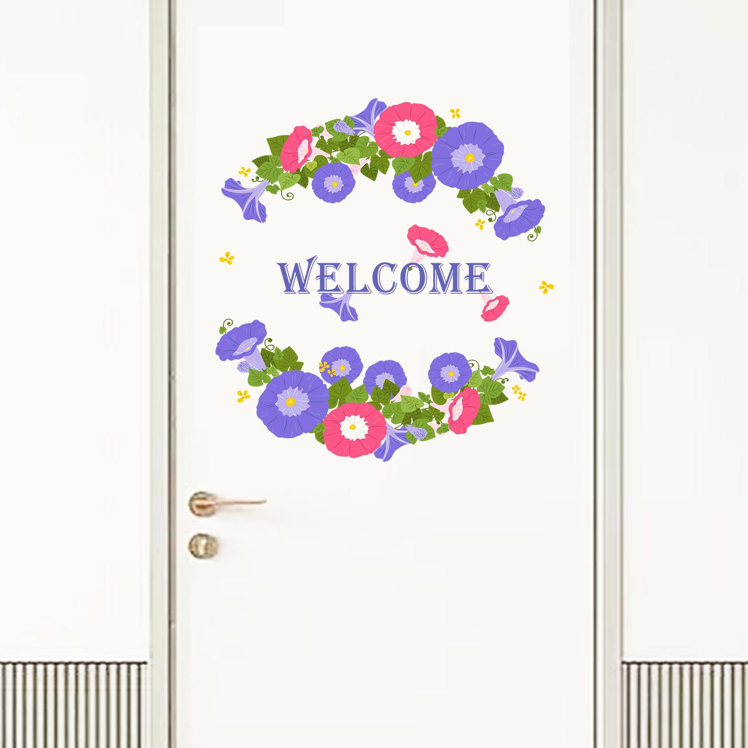 Calcomanías de flores de trompeta de bienvenida de Amazon transfronterizas, pegatinas para puerta, arreglos para dormitorio, sala de estar, decoración de pared.