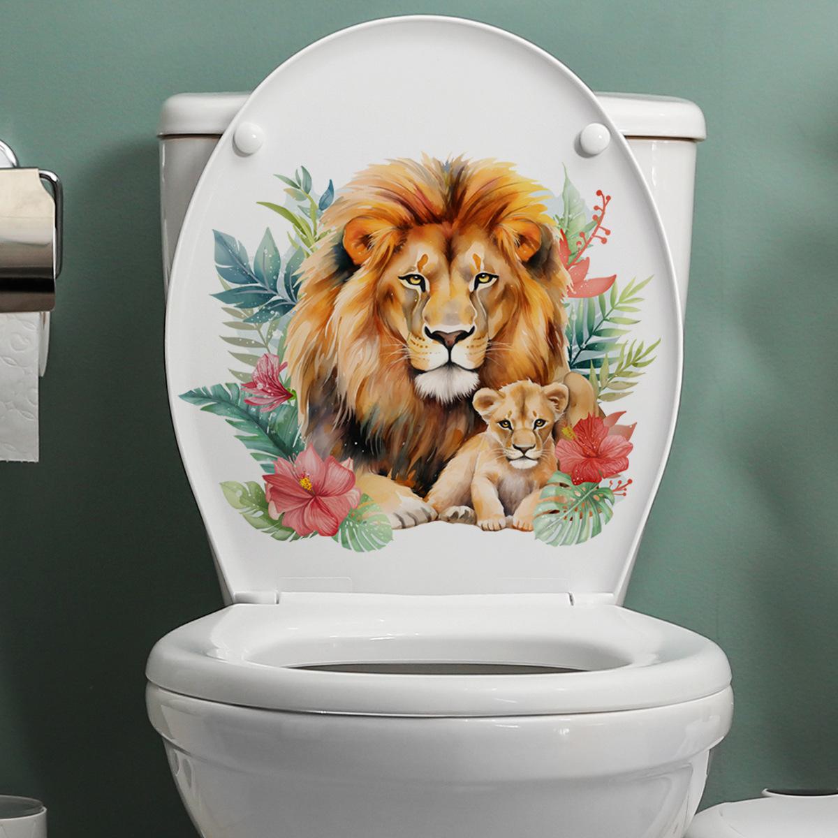 MS2509 caricatura simulación león bosque pegatinas de pared baño inodoro feo pegatinas decorativas pvc