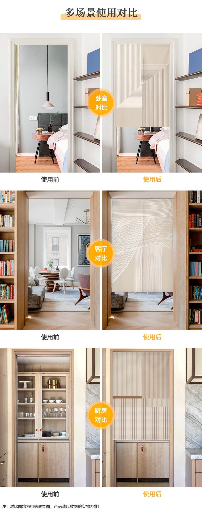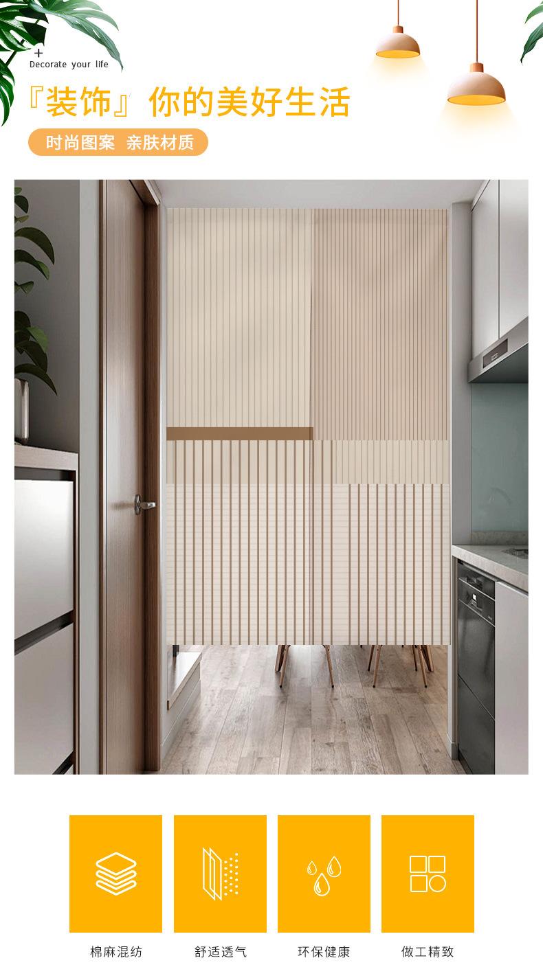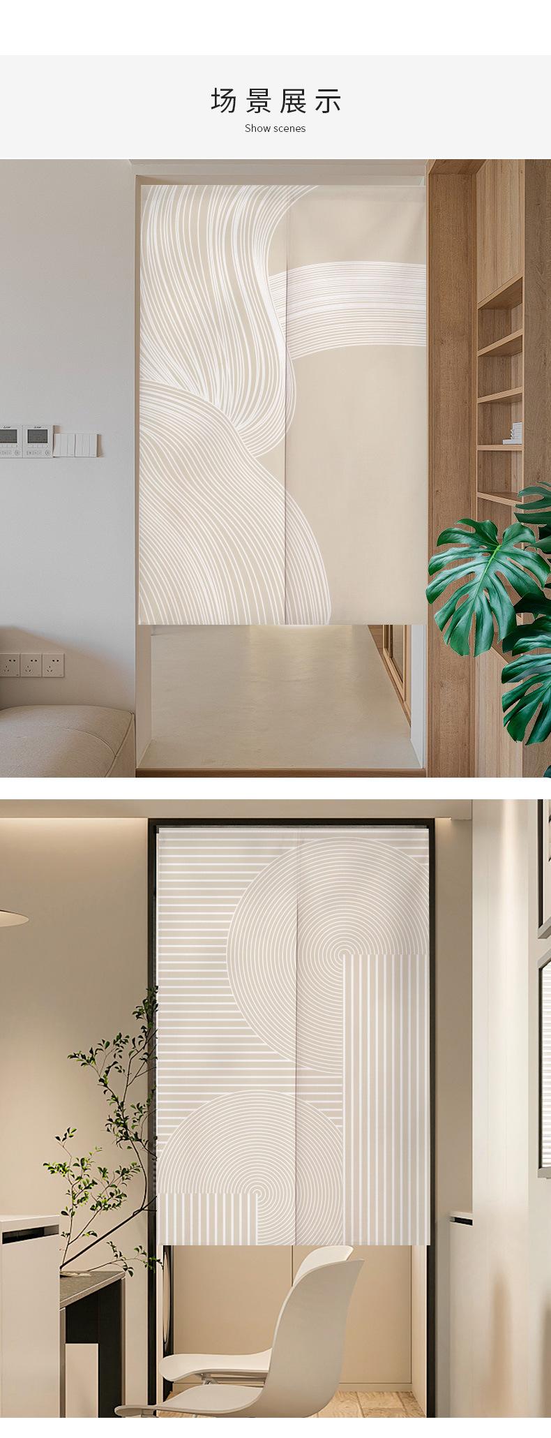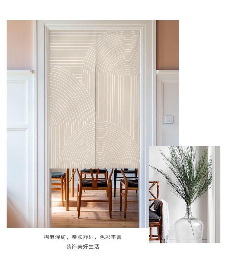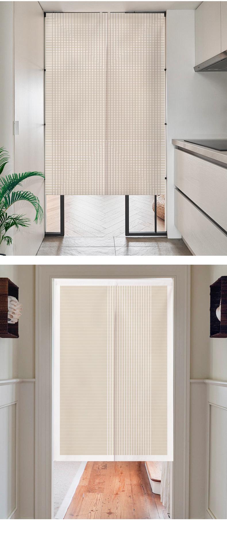 Cortina de tela para puerta de estilo silencioso, cortina divisoria con líneas geométricas, sin perforaciones, para el hogar, dormitorio, cocina, refugio, cortina de tela personalizable