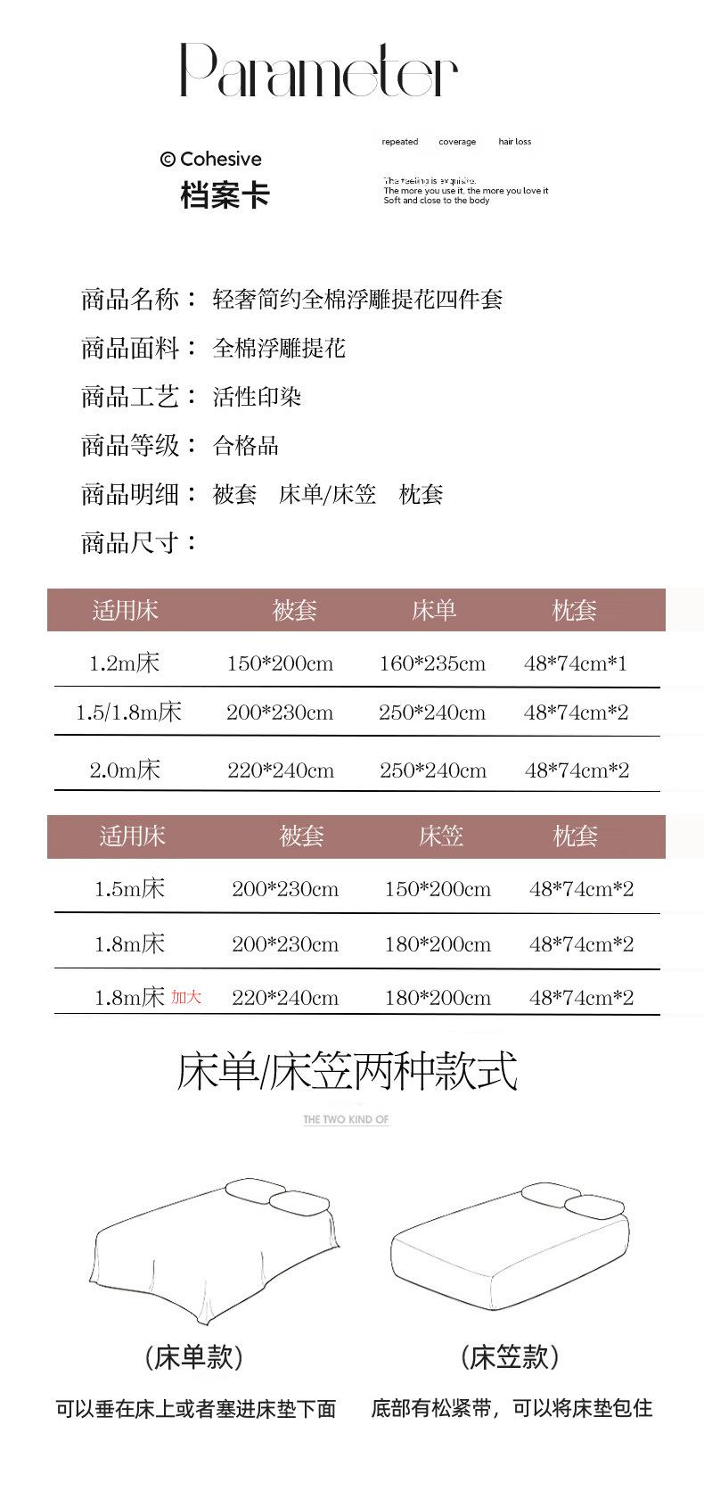 1.2 m bed sheet three-piece set-suitable for 150x 200cm quilt core, 1.5 m bed sheet four-piece set-suitable fo...