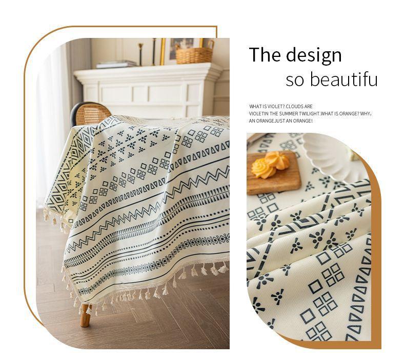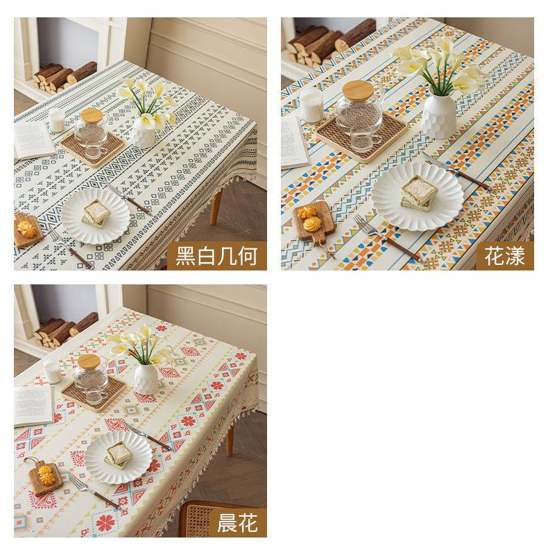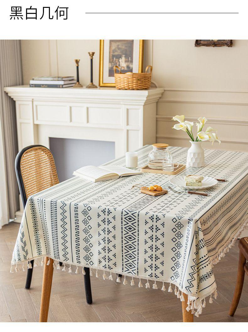Mantel de Mesa Estilo Nórdico Bohemio Algodón Lino Sin Lavado Estilo Étnico Rectangular Borla Mantel de Camping Impermeable y a Prueba de Aceite