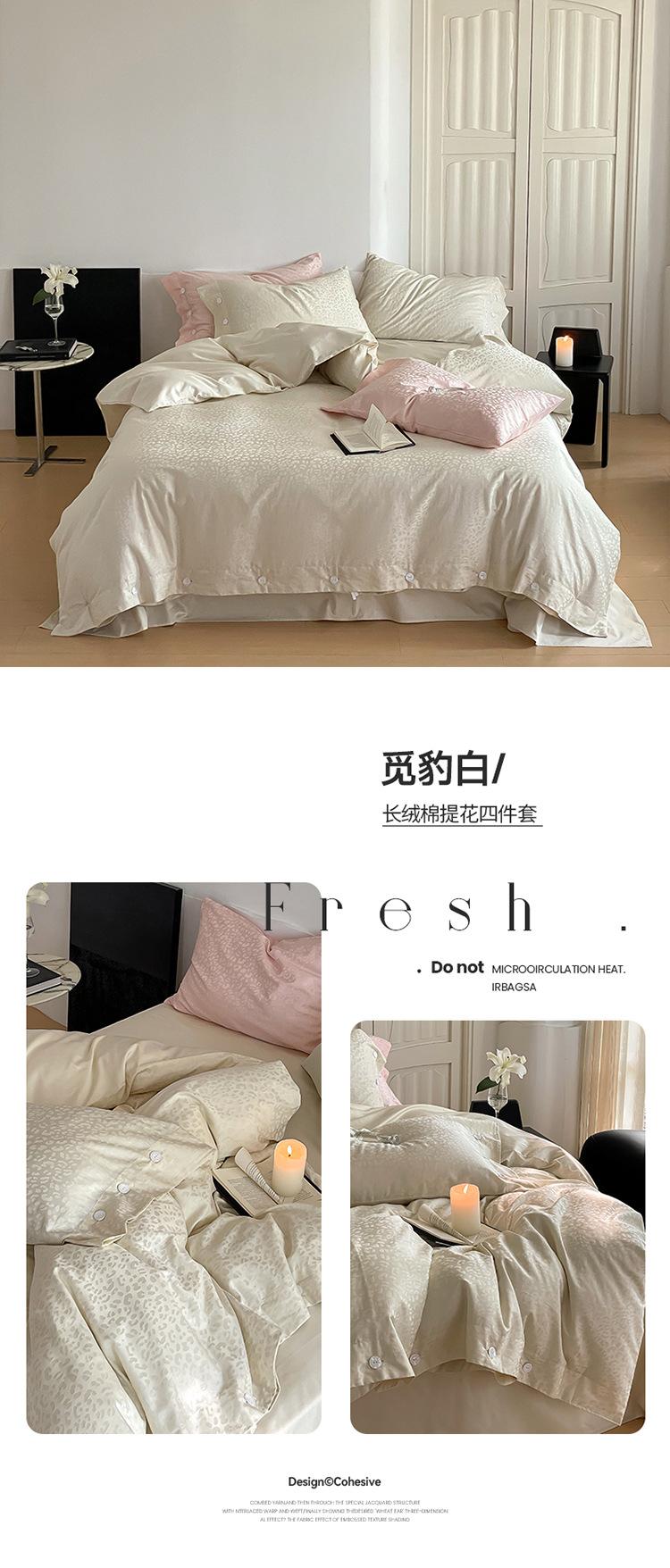 Compra Juego de cuatro piezas de lujo ligero con estampado de leopardo, clase A, 100% algodón de fibra larga, sencillo, funda nórdica de algodón, sábana de satén de algodón puro, sábana bajera, ropa de cama al por mayor en Joom.pro