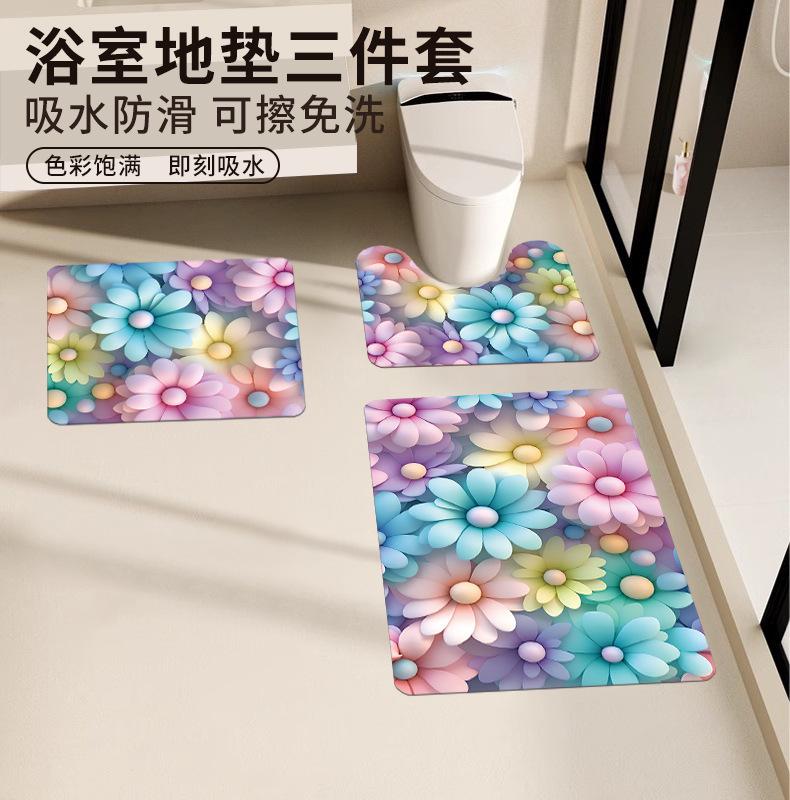 Alfombra de baño de barro de diatomeas, alfombra de tres piezas con base de goma, alfombra de baño antideslizante para el hogar, alfombra absorbente de secado rápido