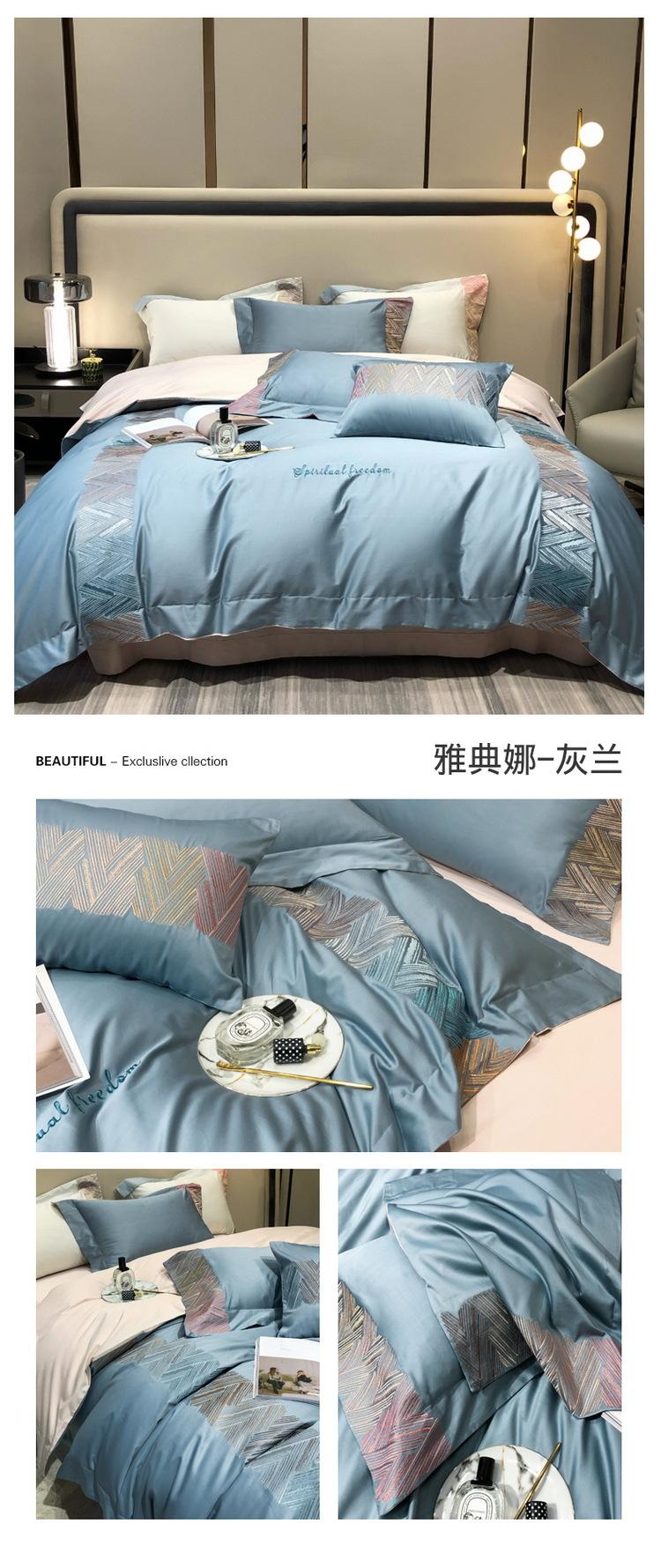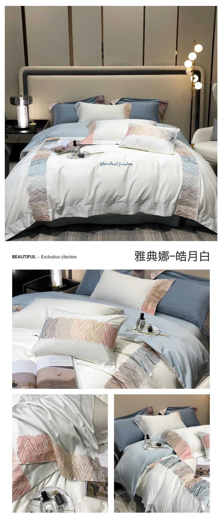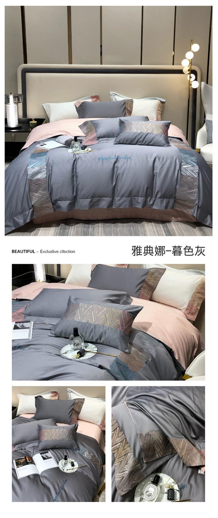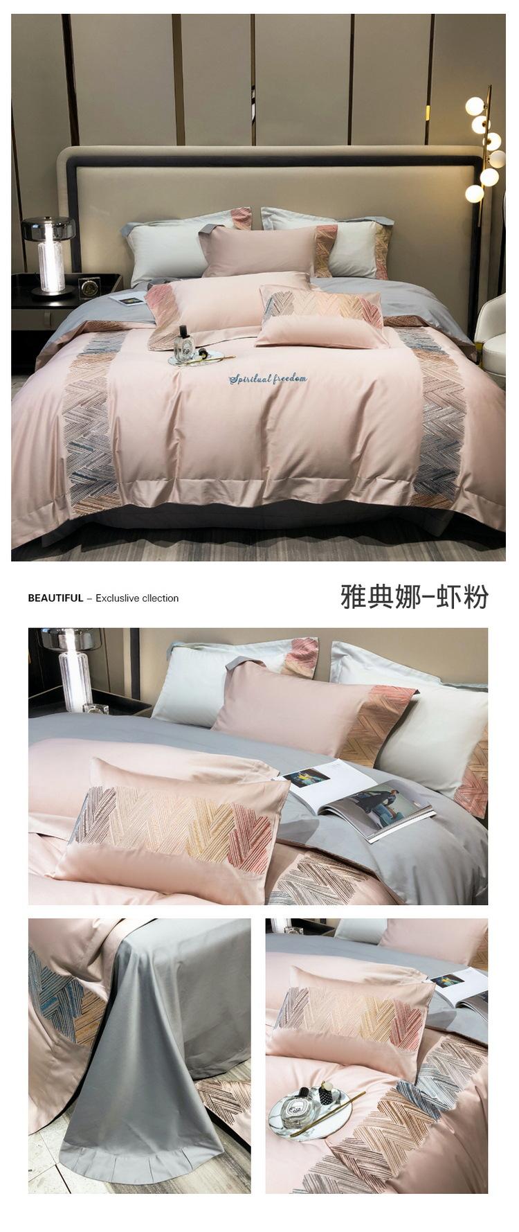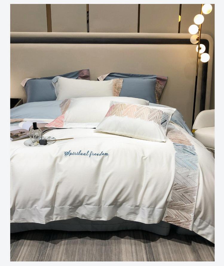 Nuevo juego de sábanas de algodón de fibra larga de 100%, cuatro piezas, bordado de algodón de alta calidad, juego de regalo