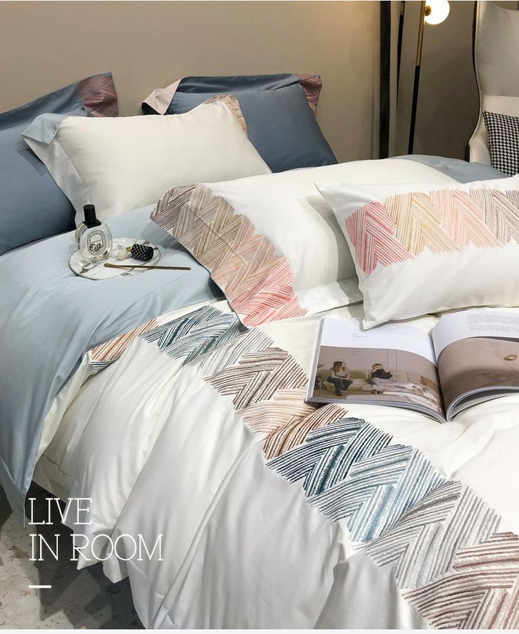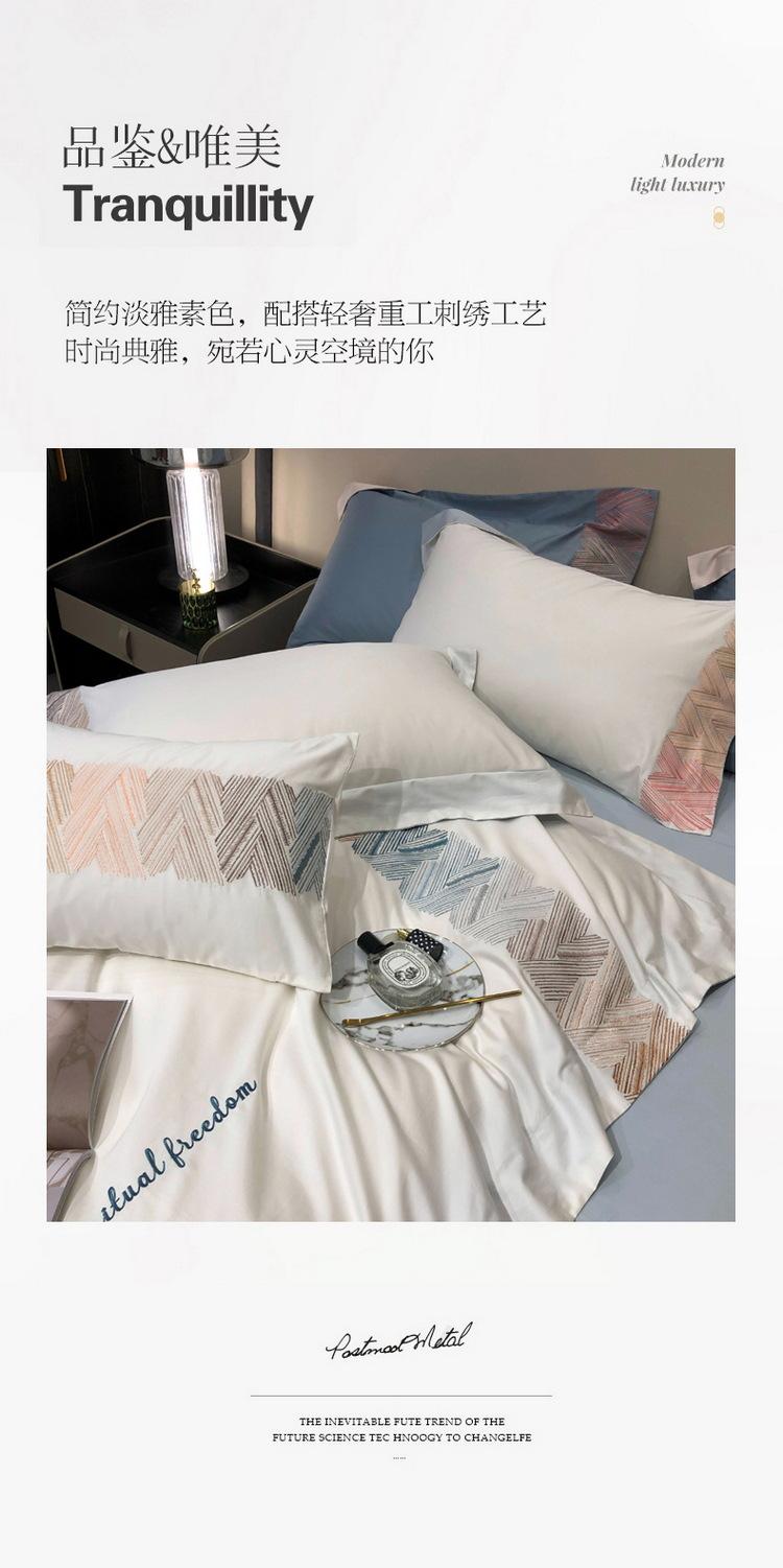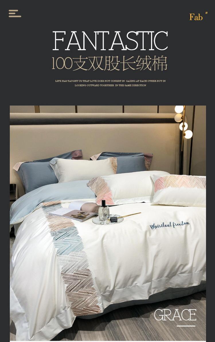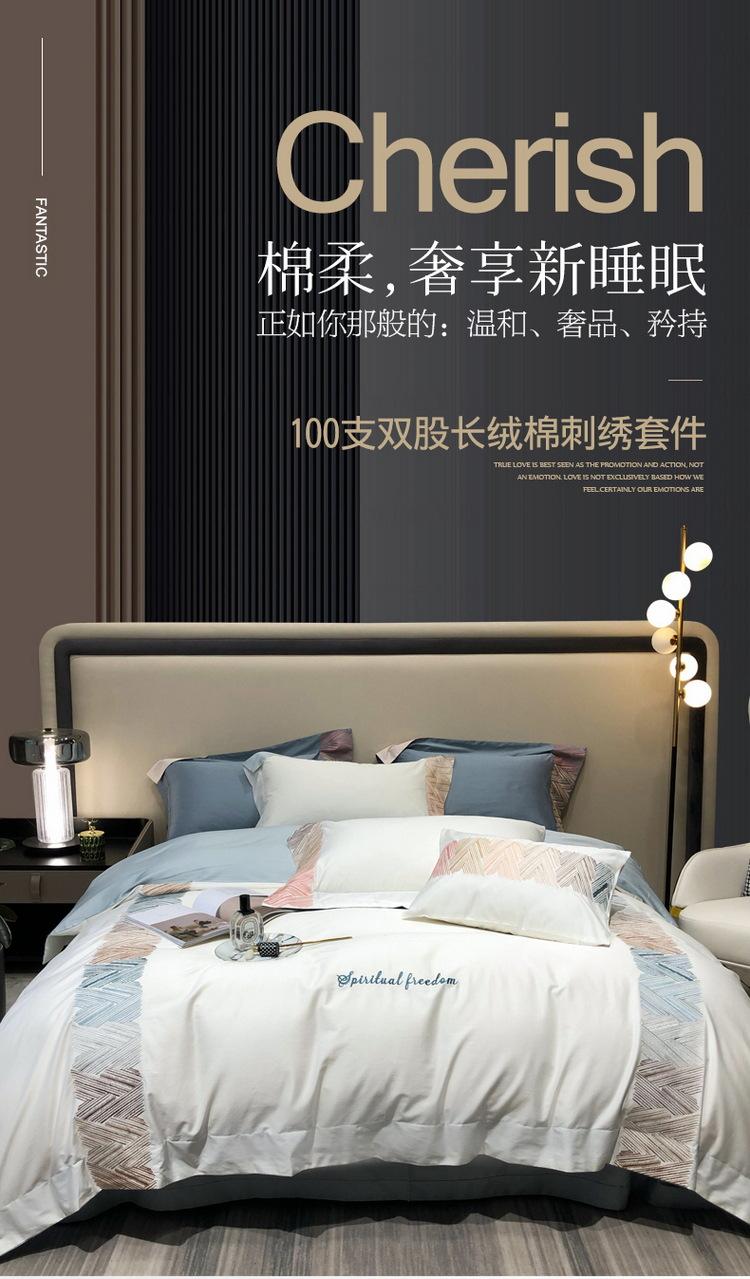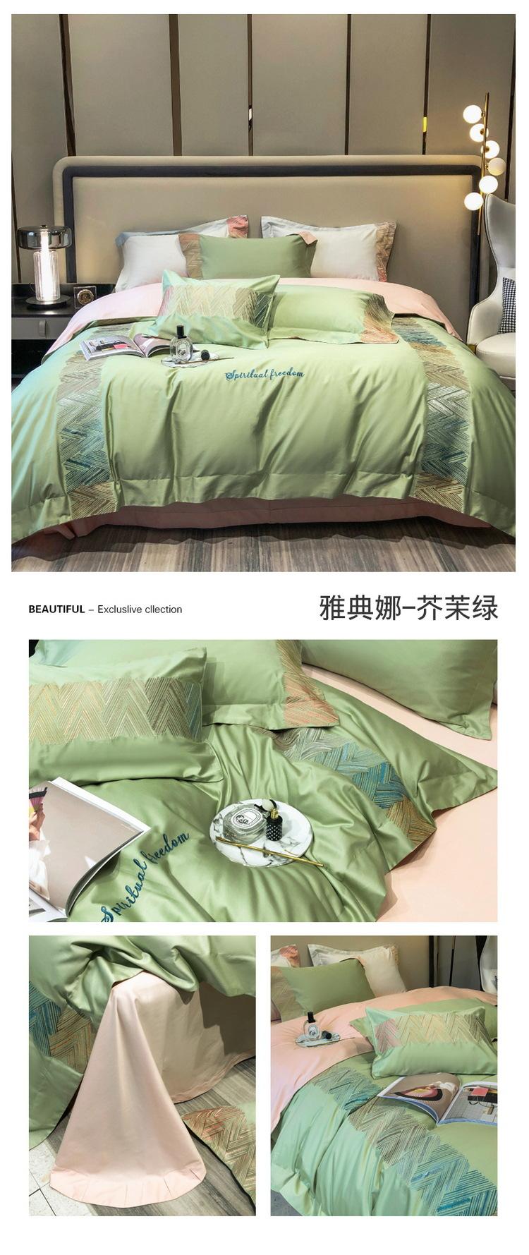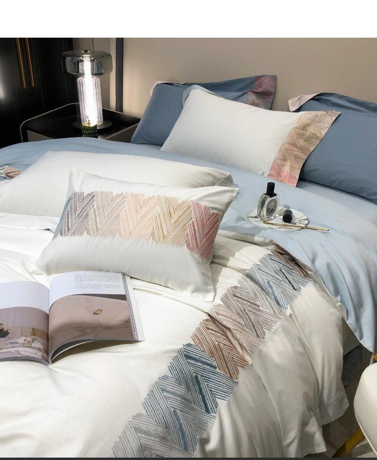 Nuevo juego de sábanas de algodón de fibra larga de 100%, cuatro piezas, bordado de algodón de alta calidad, juego de regalo