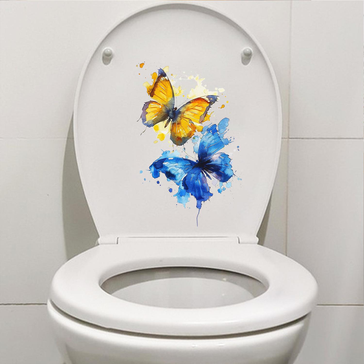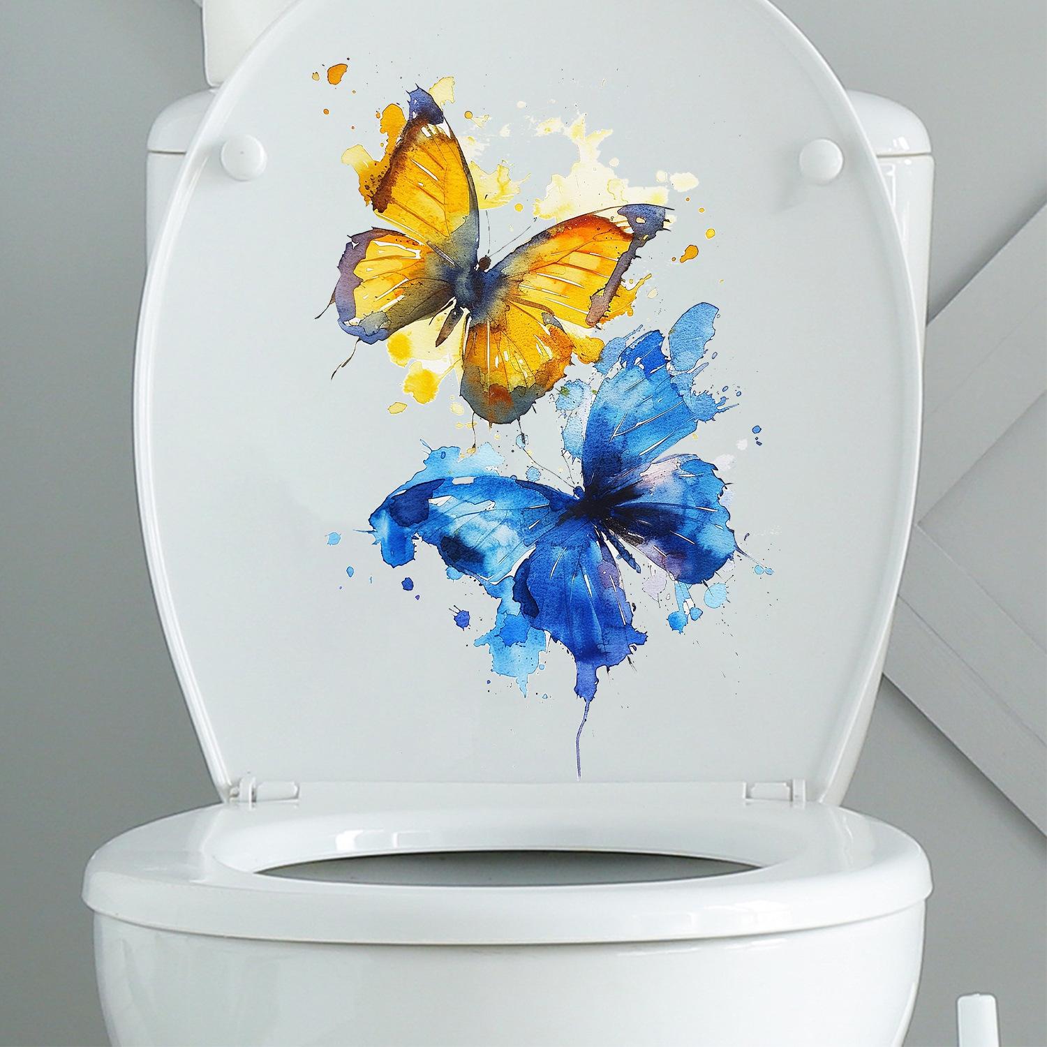 Pegatinas de mariposa amarilla y azul para inodoro, comercio exterior transfronterizo de Amazon, pegatinas de pared para baño