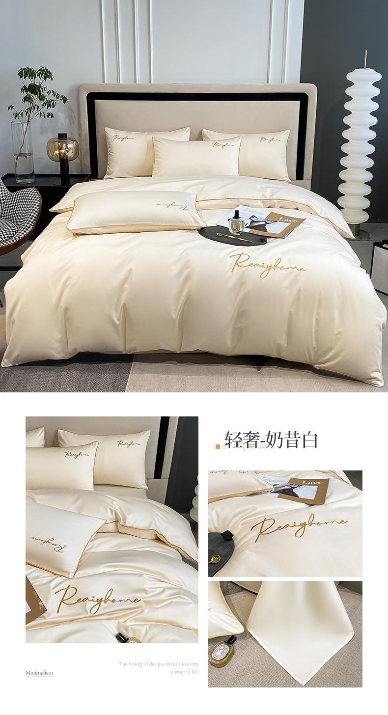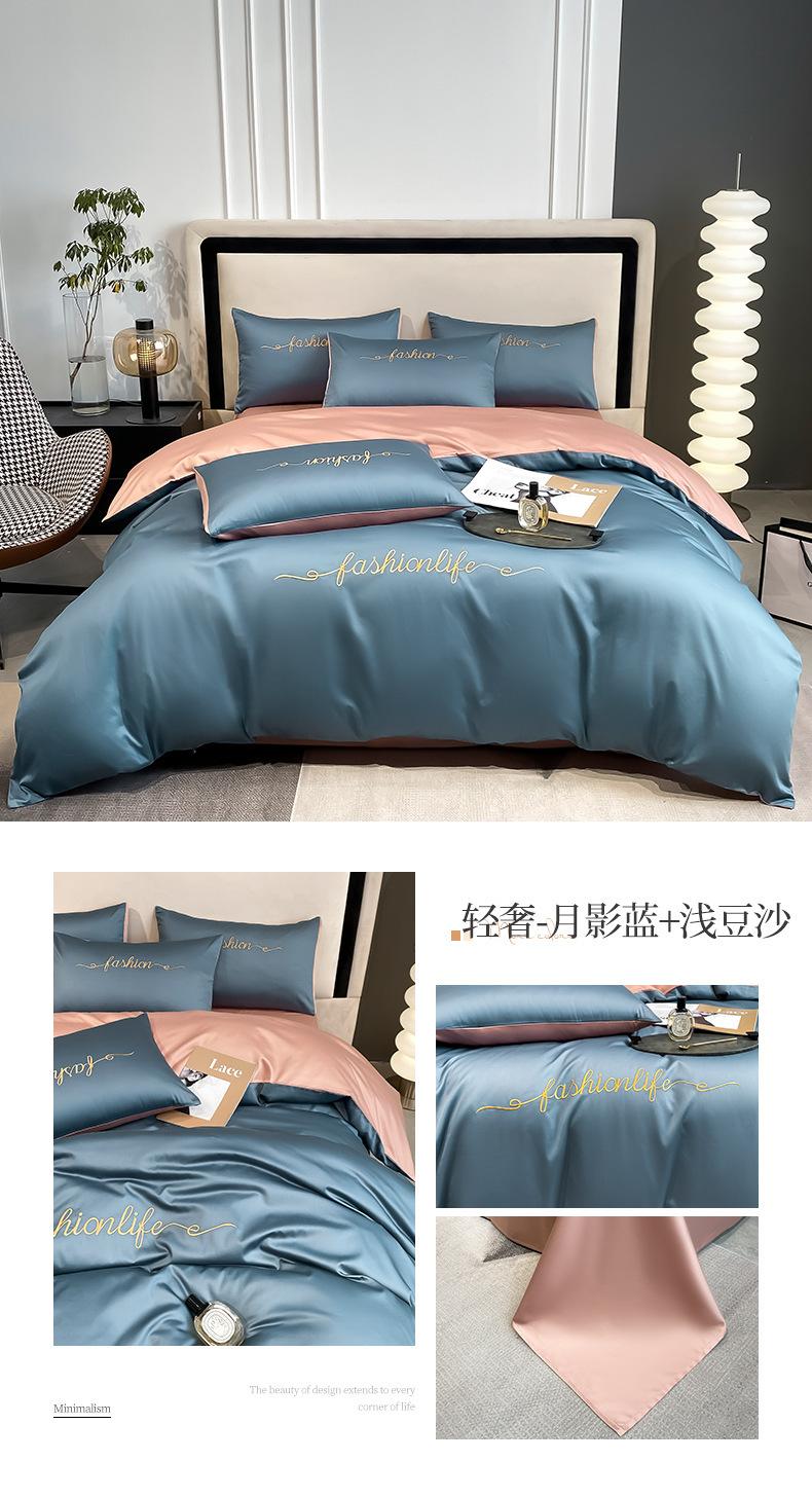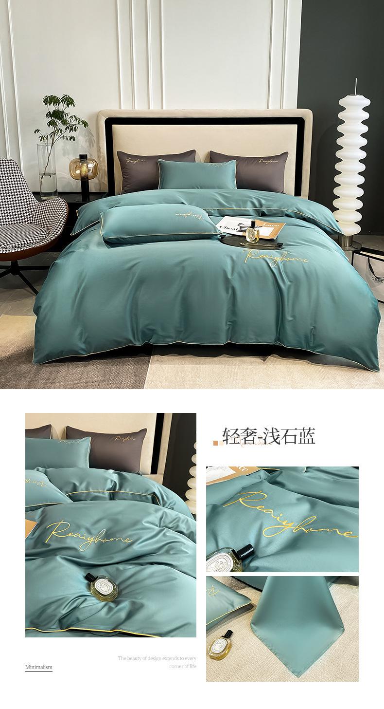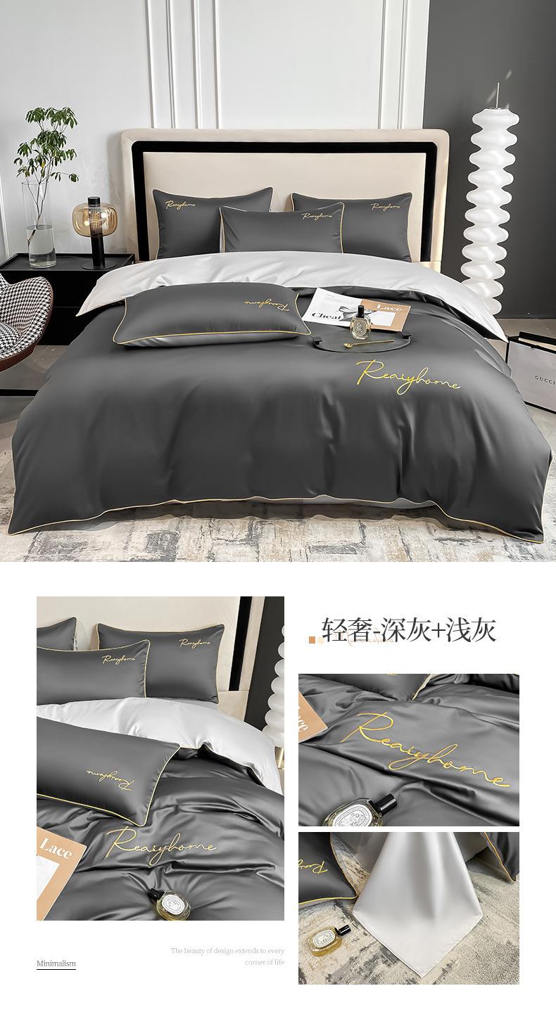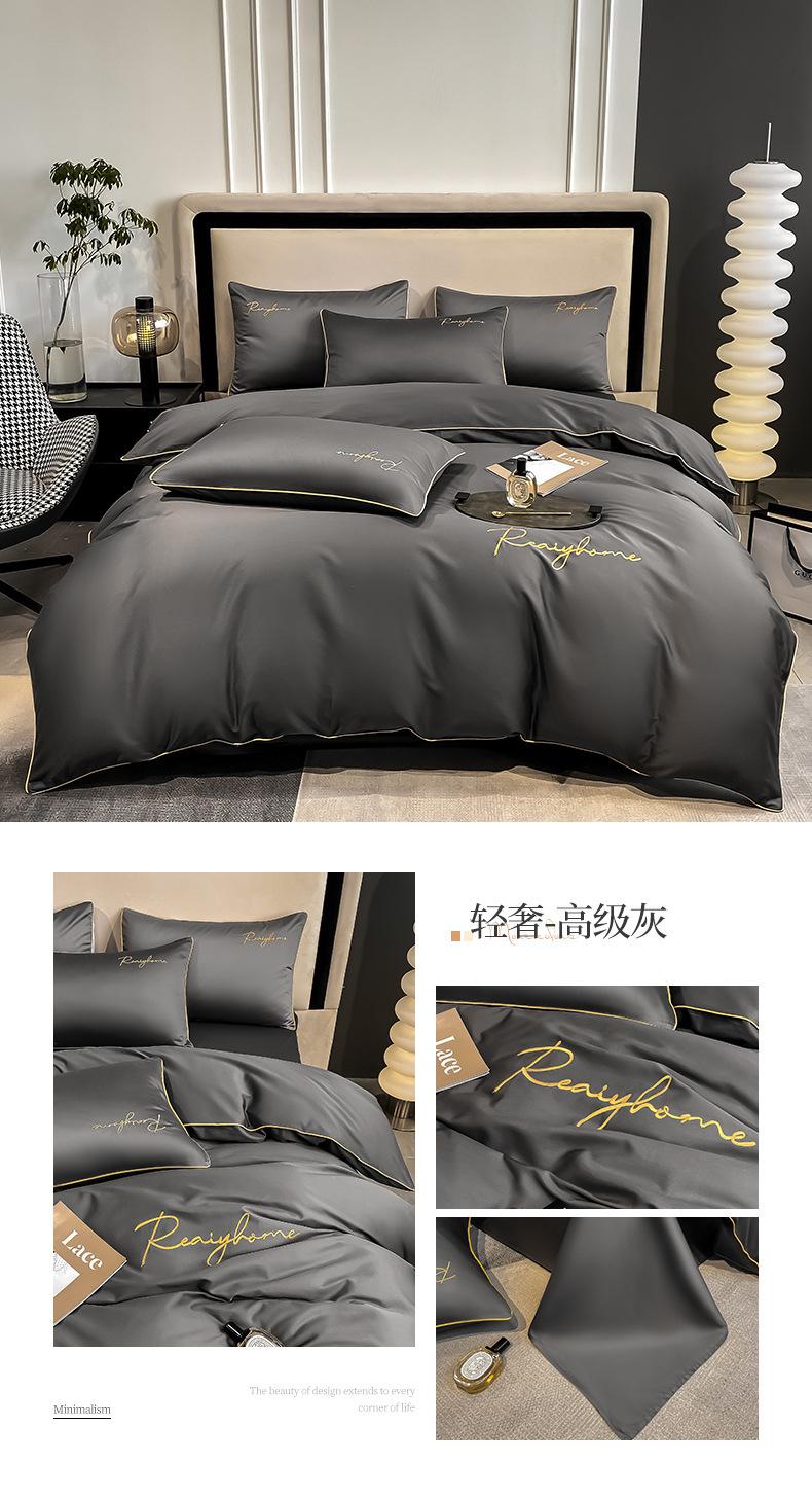 Juego de sábanas de algodón puro de fibra larga de 60 pts Advanced Sense, juego de cama de cuatro piezas, funda de cama ligera de lujo bordada, juego de dormitorio de tres piezas, cama para dormir desnudo