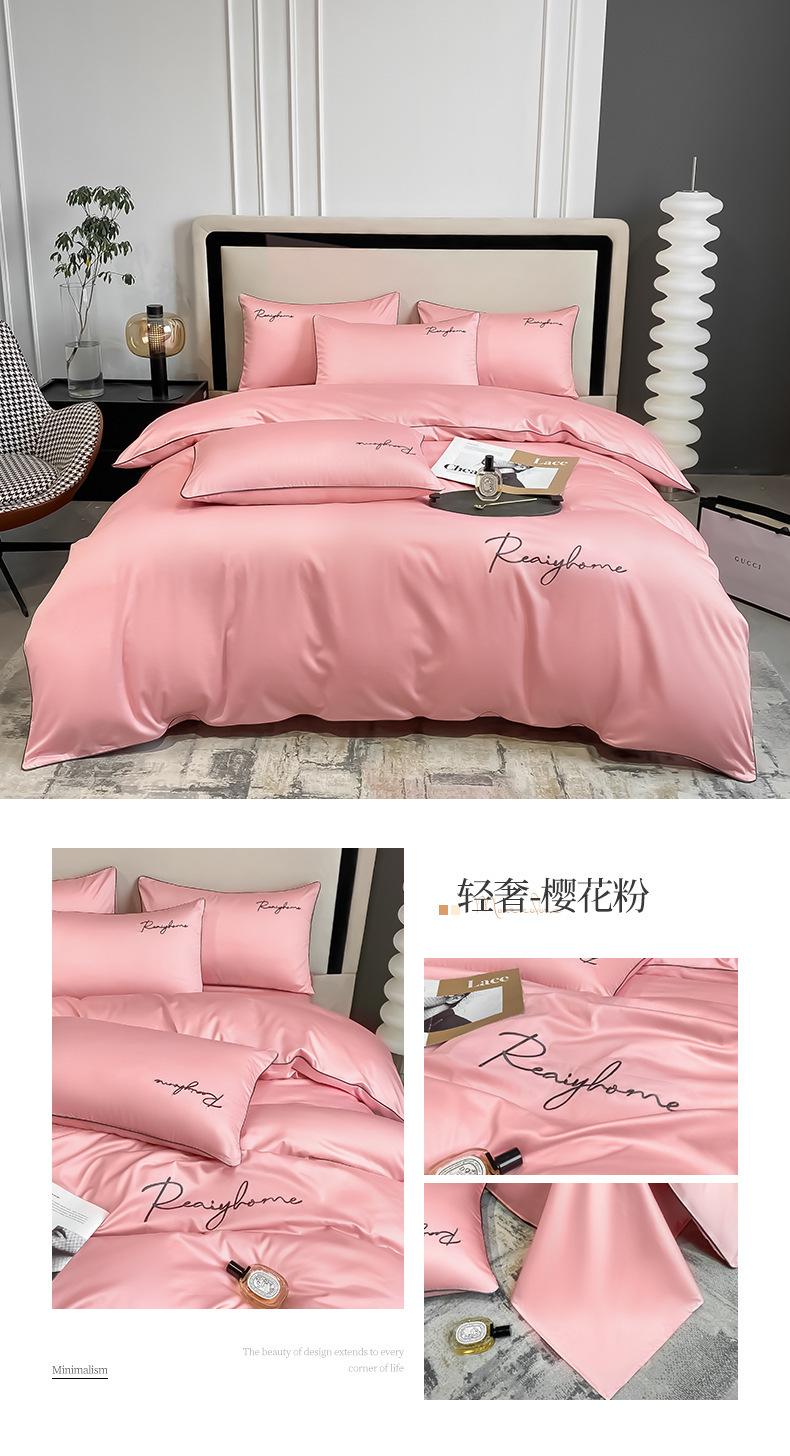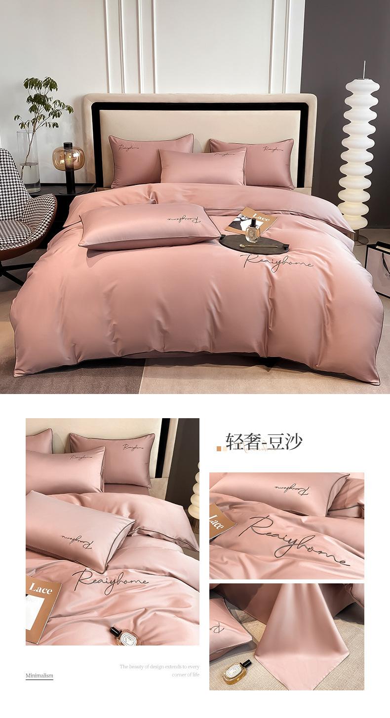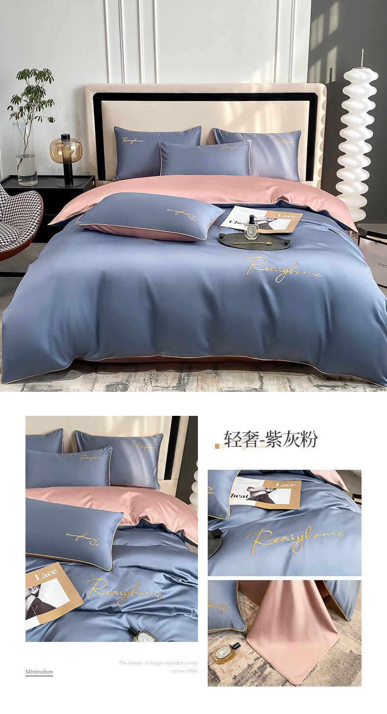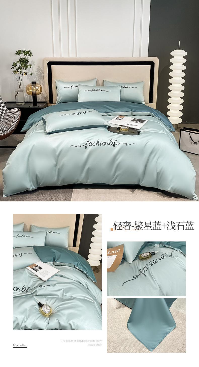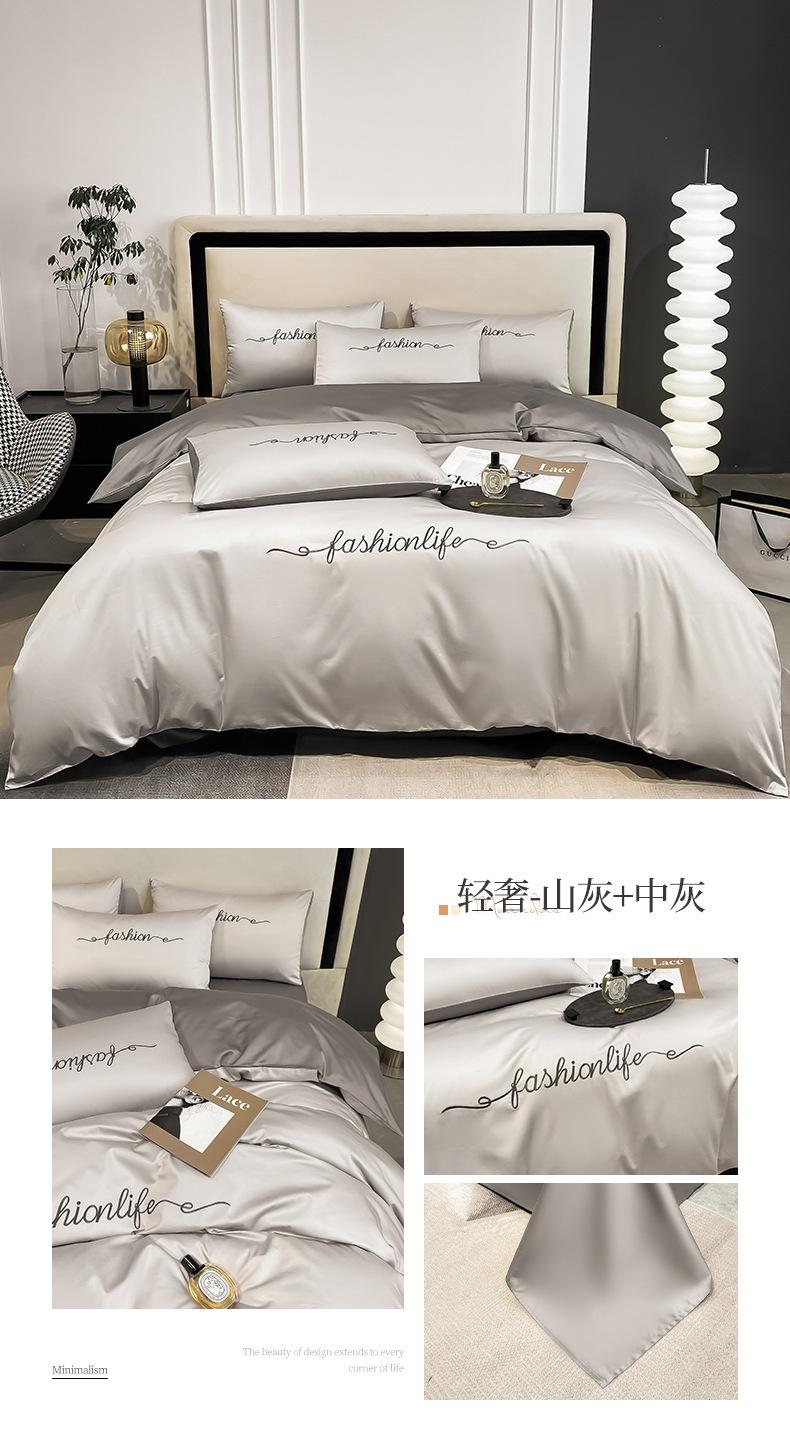 Juego de sábanas de algodón puro de fibra larga de 60 pts Advanced Sense, juego de cama de cuatro piezas, funda de cama ligera de lujo bordada, juego de dormitorio de tres piezas, cama para dormir desnudo