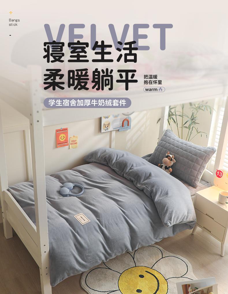 Conjunto de tres piezas de ropa de cama de lana coralina de doble cara gruesa para dormitorio de estudiantes, otoño e invierno, sencillo