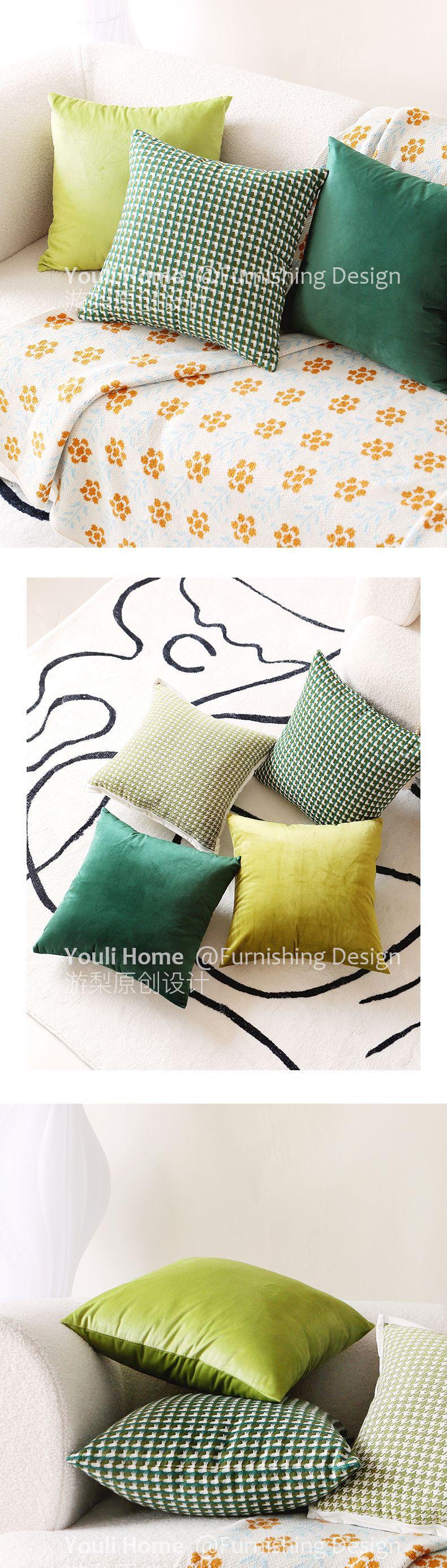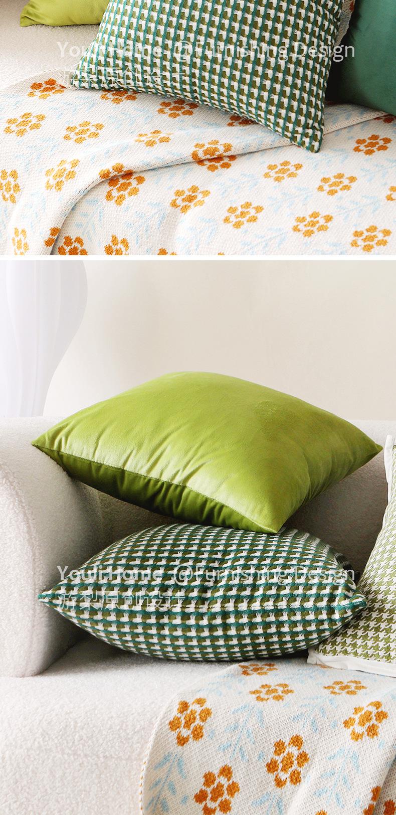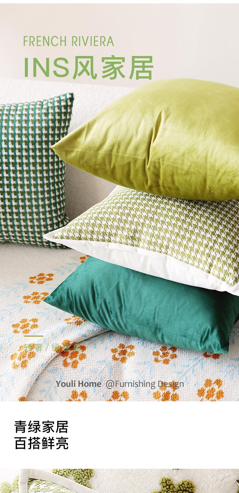 Funda de almohada verde nórdica ligera de lujo de alta gama retro para sofá, sala de estar, almohada para la cama, cojín de respaldo moderno de terciopelo