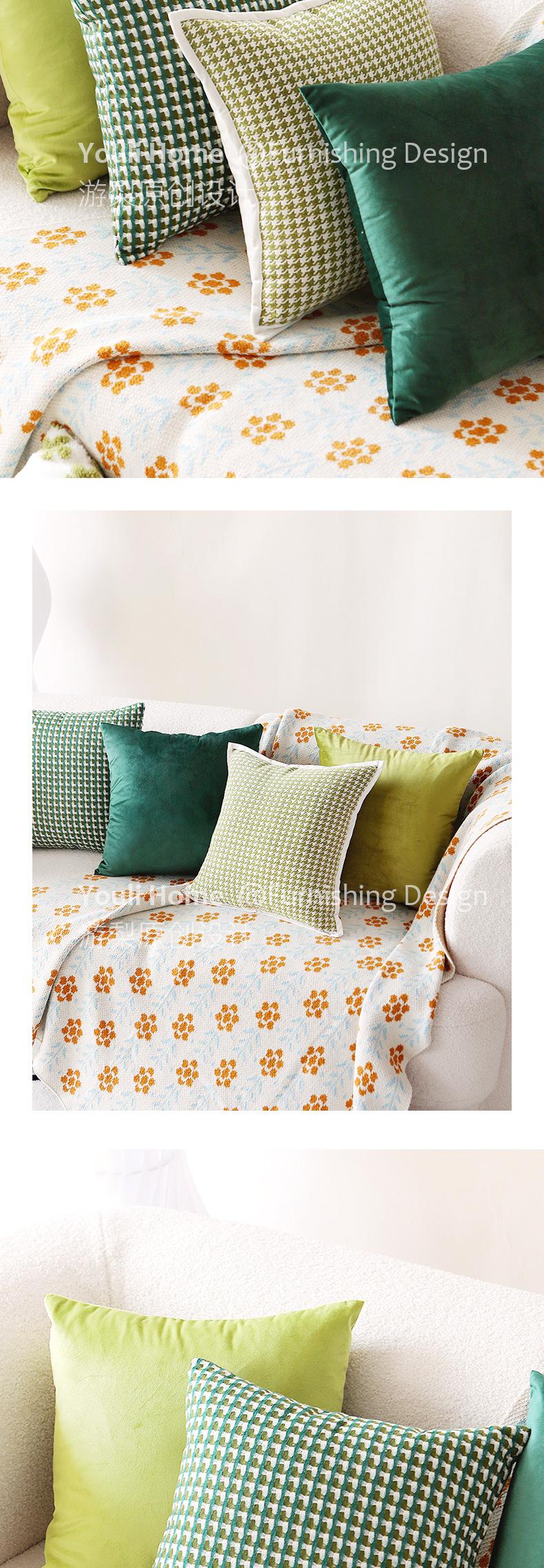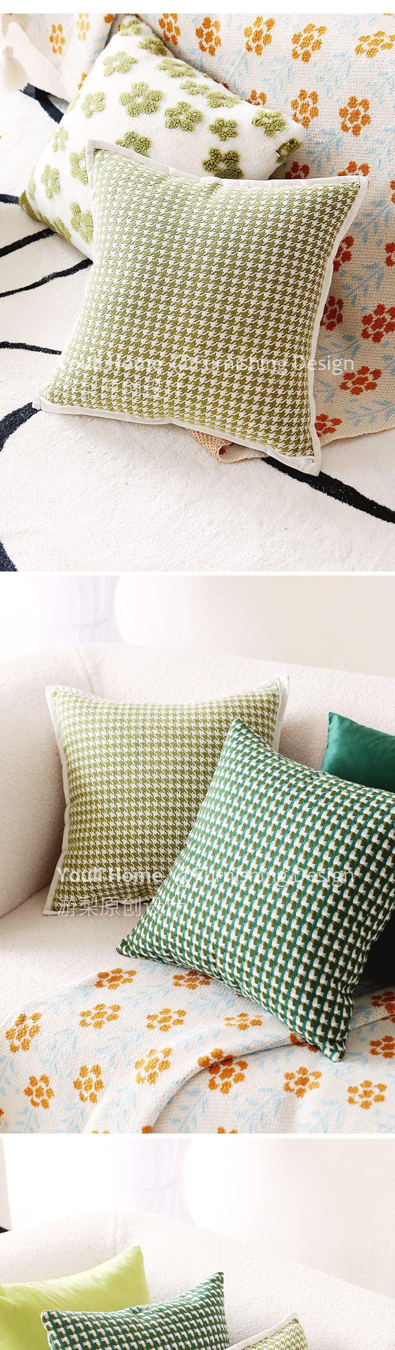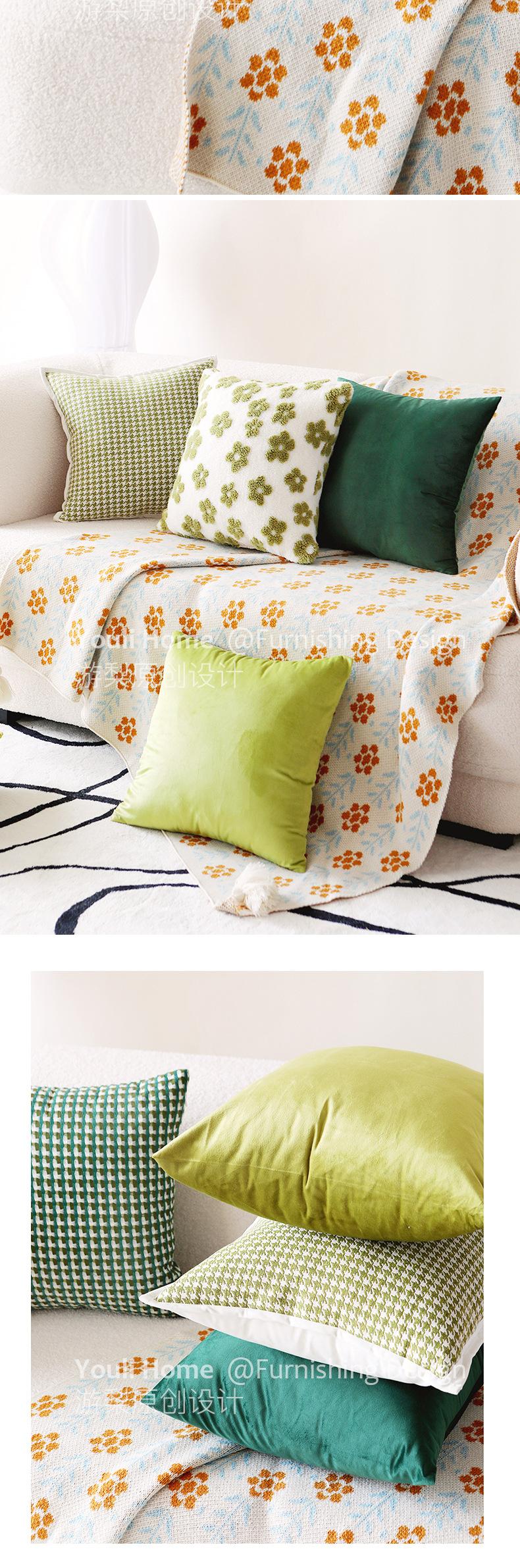 Funda de almohada verde nórdica ligera de lujo de alta gama retro para sofá, sala de estar, almohada para la cama, cojín de respaldo moderno de terciopelo