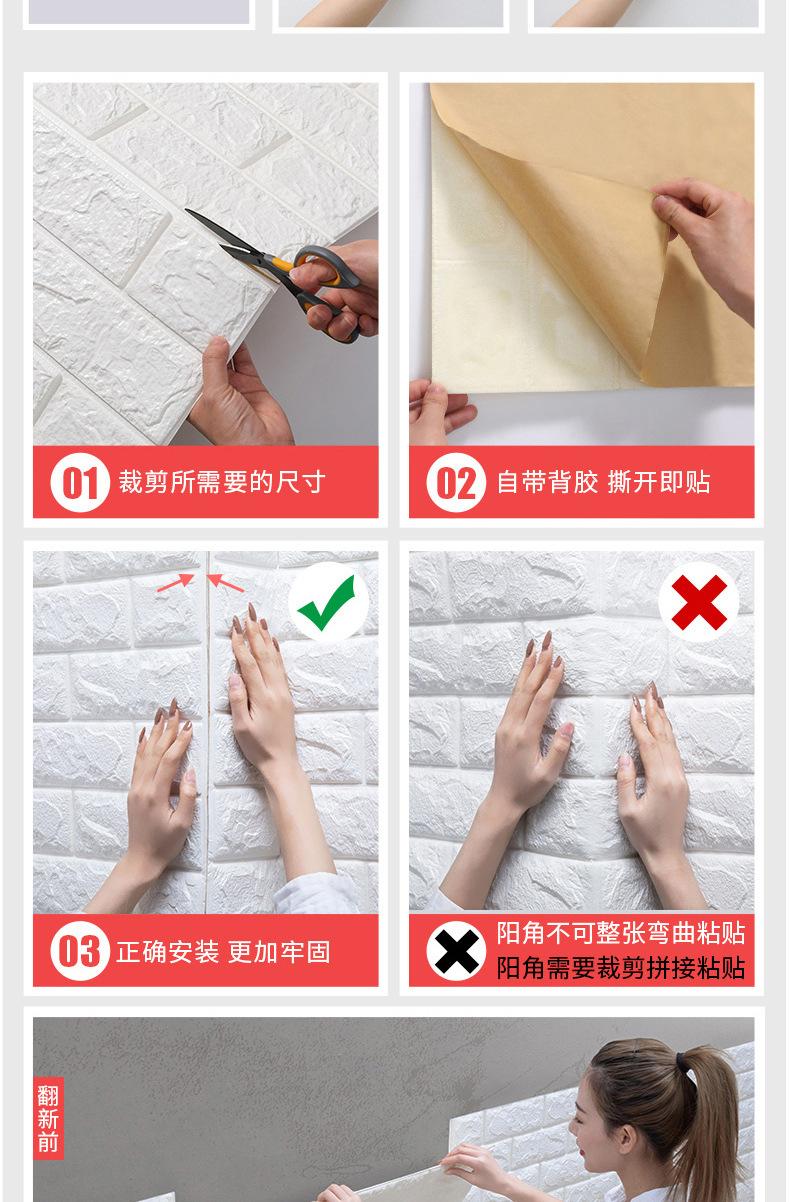 Pegatinas de pared tridimensionales 3D autoadhesivas de espuma XPE transfronterizas para decoración de pared de fondo de dormitorio, papel tapiz impermeable a prueba de humedad
