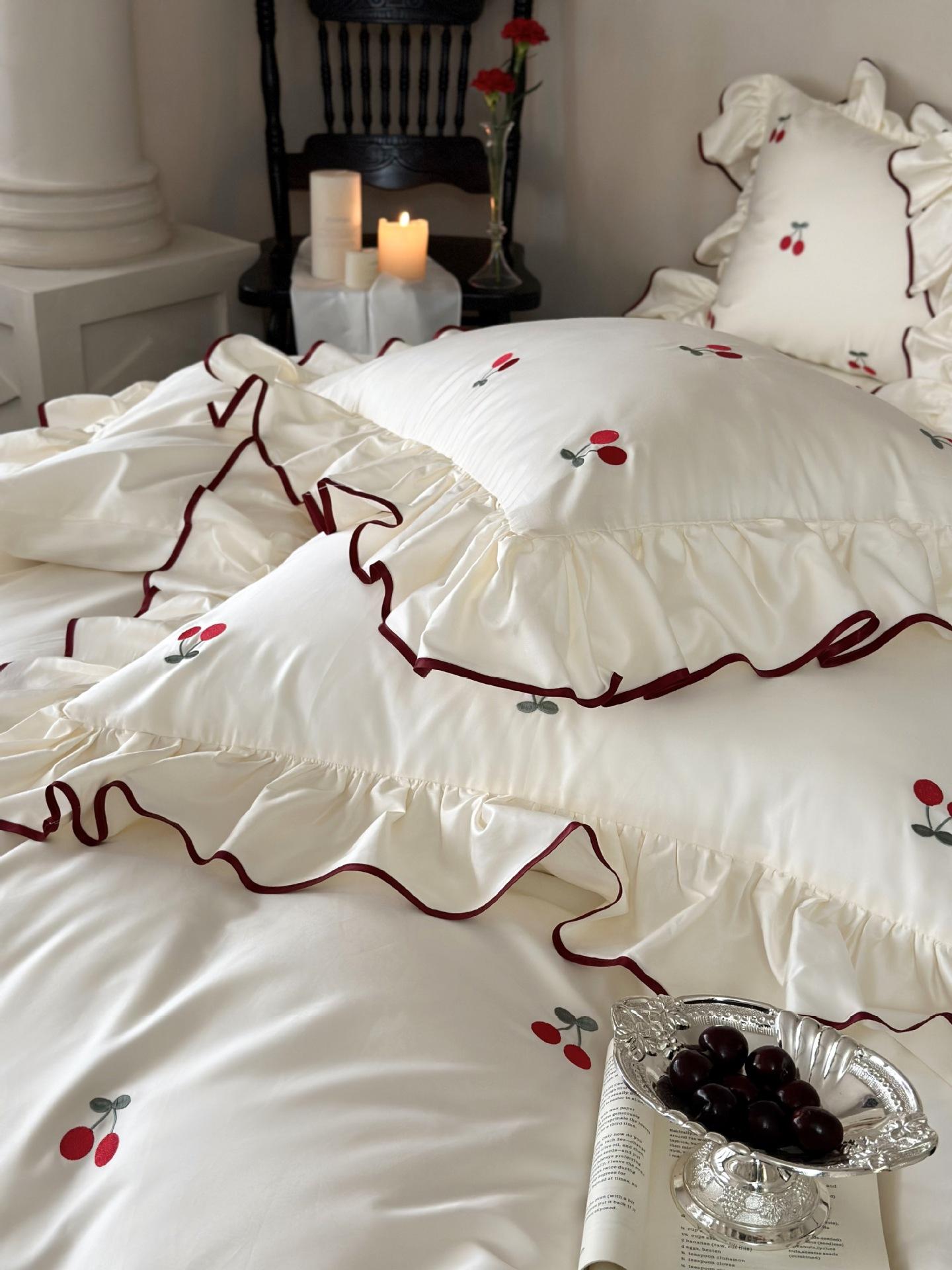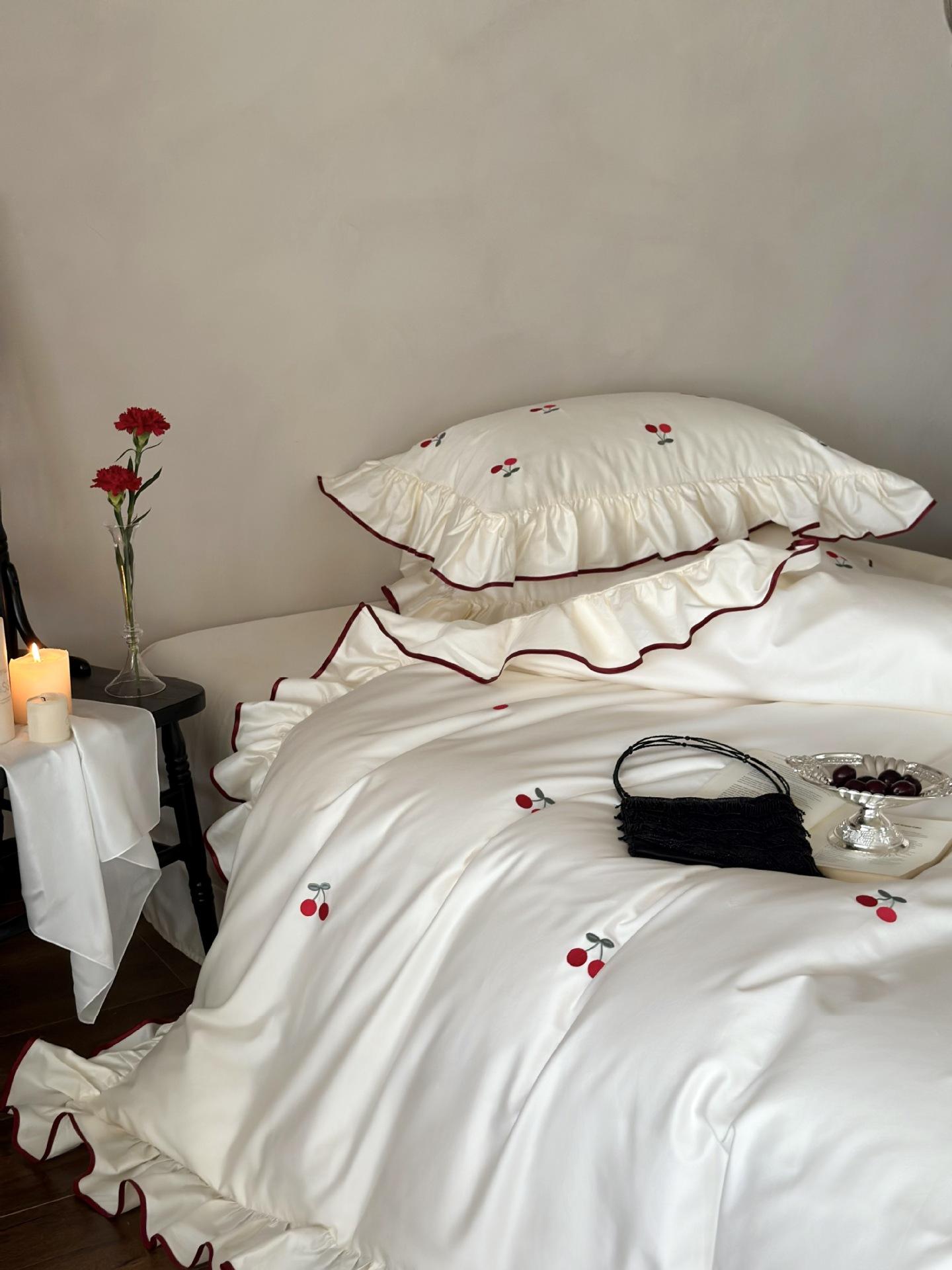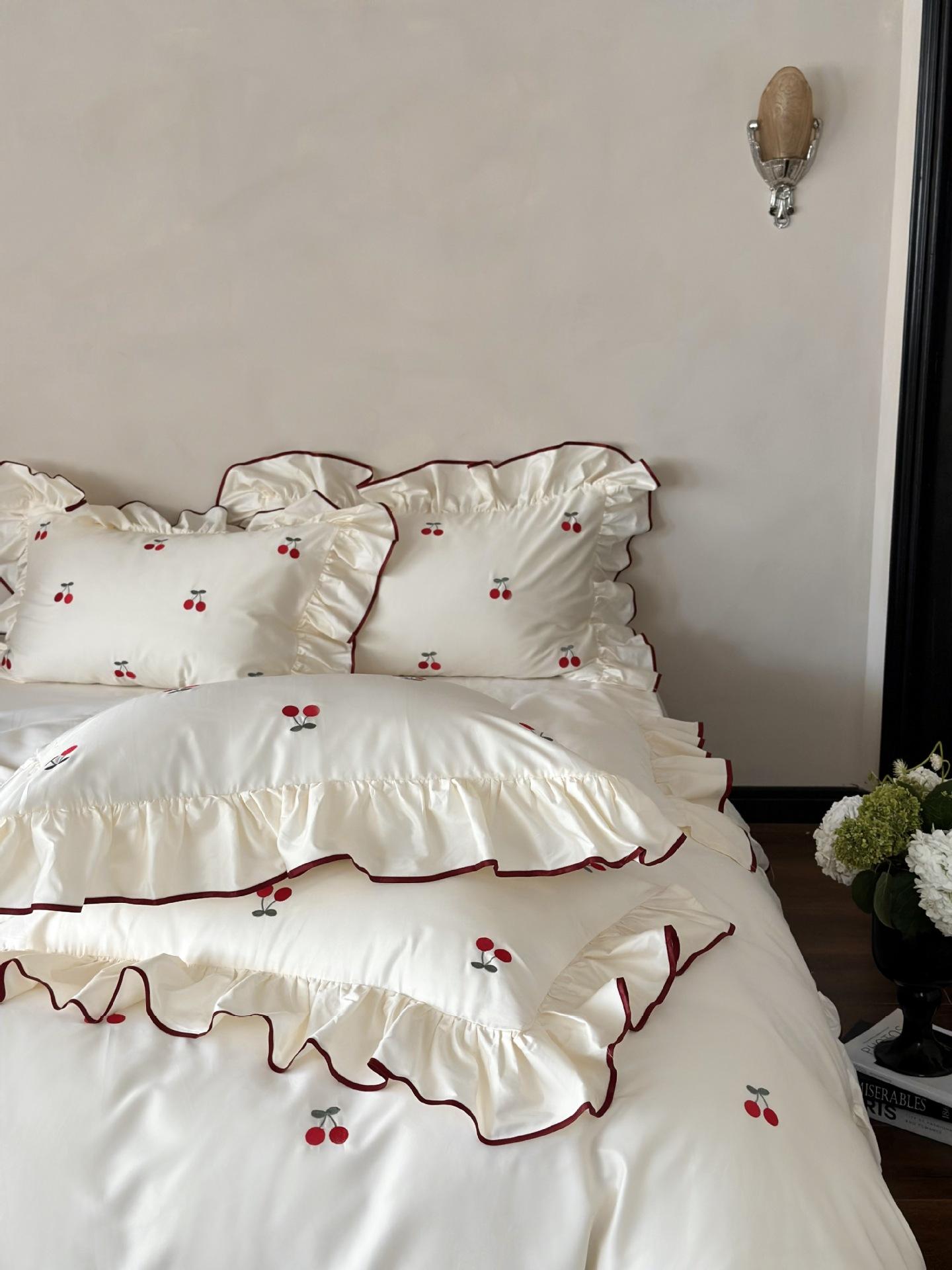 El algodón de fibra larga se utiliza a menudo para tejer hilo de alta densidad. El producto final es transpirable, suave, delicado, liso y con cierto brillo. Por lo tanto, la tela es más suave, delicada y lisa. Por lo tanto, no será demasiado gruesa y puede ser transmisora de luz. Se recomienda usar un núcleo de edredón blanco o liso del mismo color.