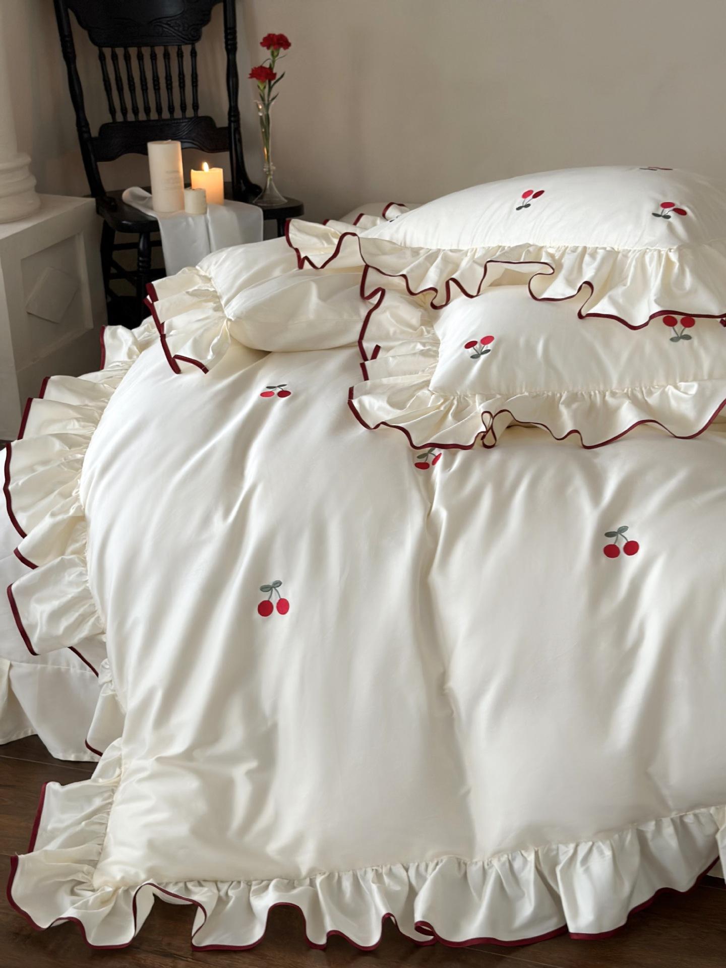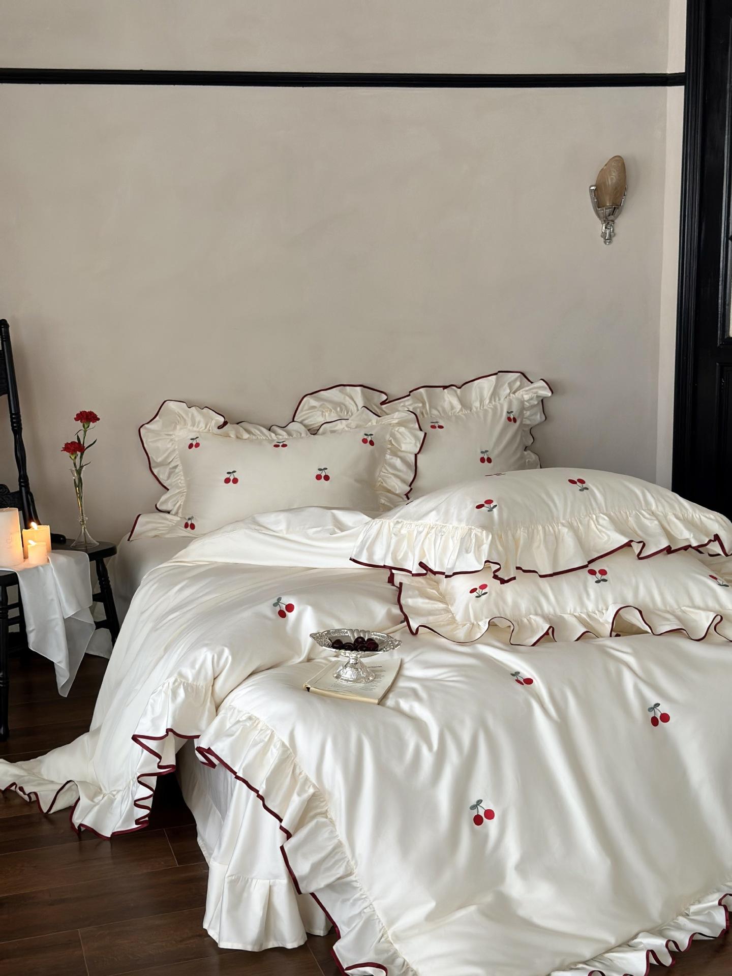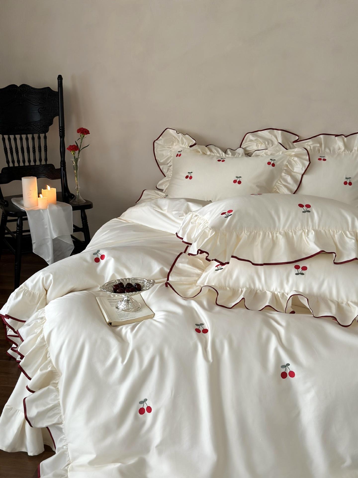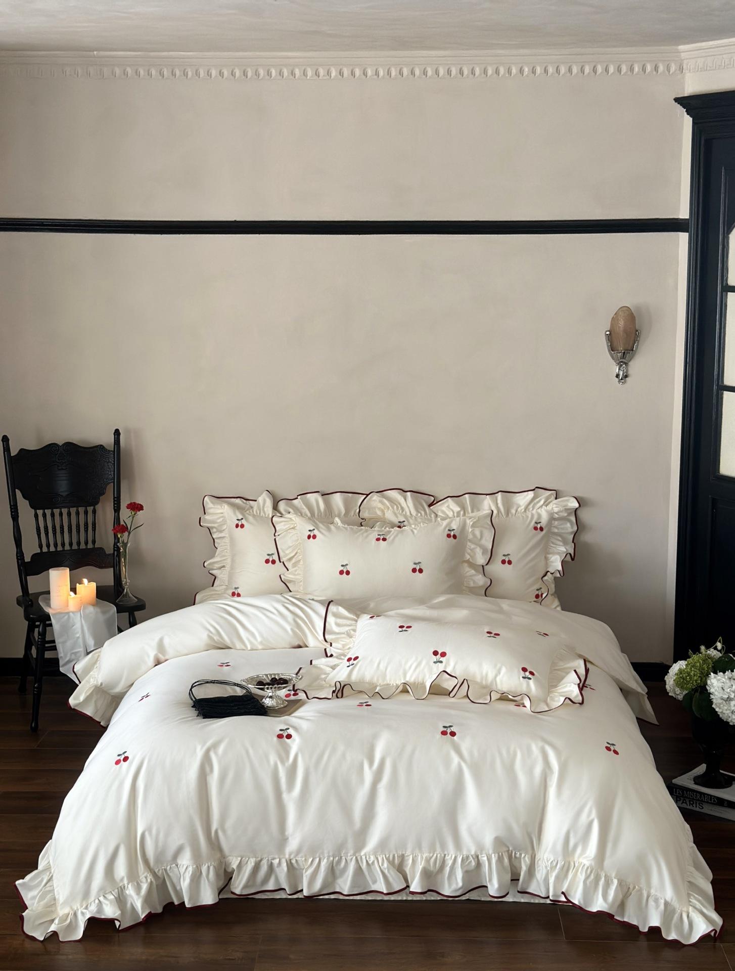 El algodón de fibra larga se utiliza a menudo para tejer hilo de alta densidad. El producto final es transpirable, suave, delicado, liso y con cierto brillo. Por lo tanto, la tela es más suave, delicada y lisa. Por lo tanto, no será demasiado gruesa y puede ser transmisora de luz. Se recomienda usar un núcleo de edredón blanco o liso del mismo color.