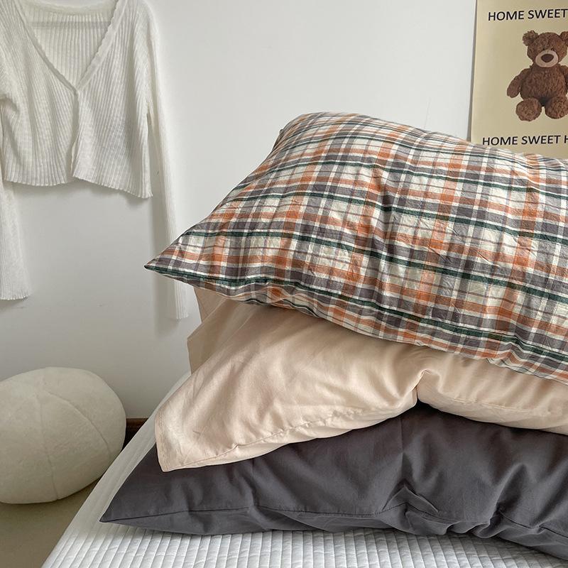 Funda de almohada individual en sarga de algodón y material teñido en hilo de algodón lavado