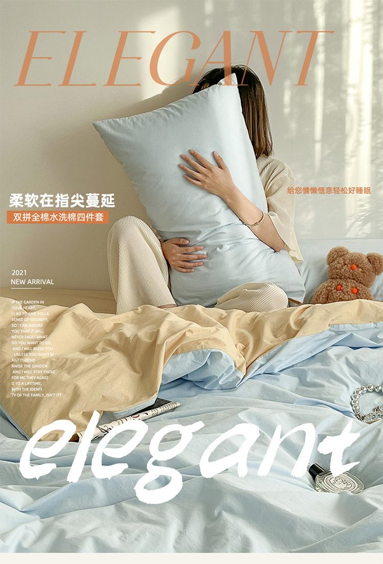 Compra Funda de edredón de algodón lavado de una sola pieza, color liso, para dormitorio de estudiantes, color liso, doble, 200 al por mayor en Joom.pro