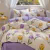 Juego de Cama Ins de Cuatro Piezas para Todas las Estaciones, Sábanas y Funda de Edredón Cepilladas Engrosadas, Juego de Tres Piezas para Dormitorio de Estudiante, Estilo Ins