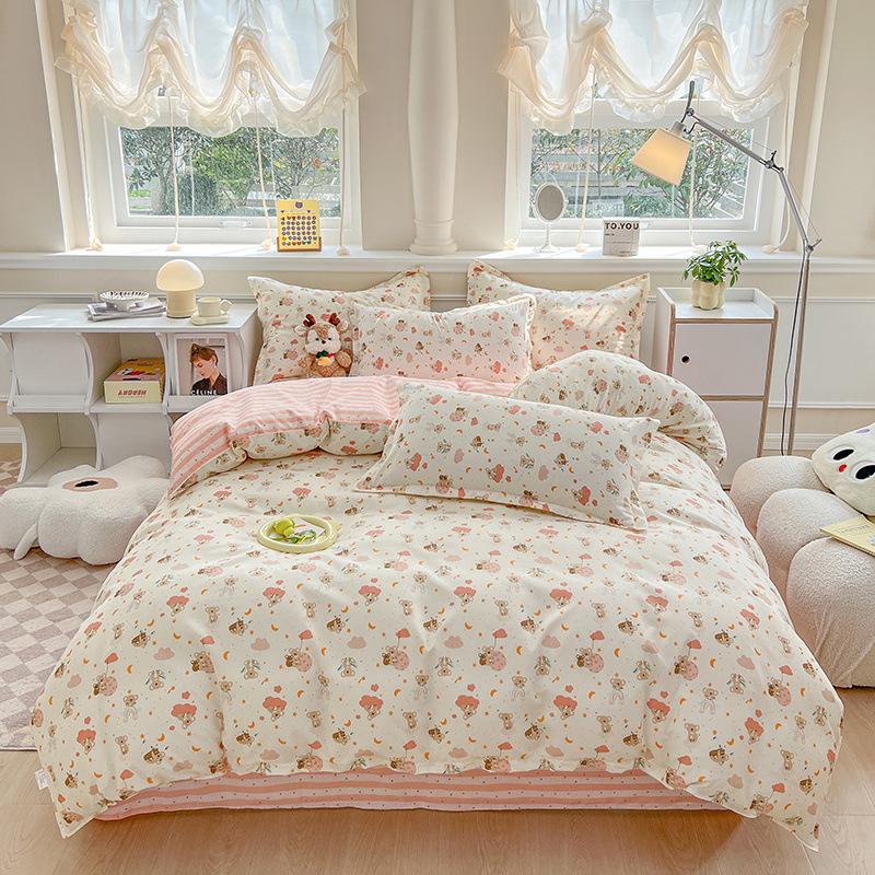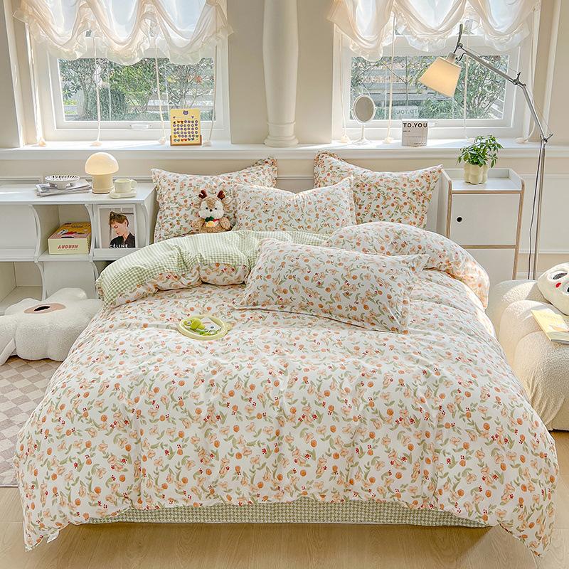 Sábana de lijado de cuatro piezas, funda de edredón, ropa de cama 2024, nuevo dormitorio, lavado de algodón, tres piezas de algodón