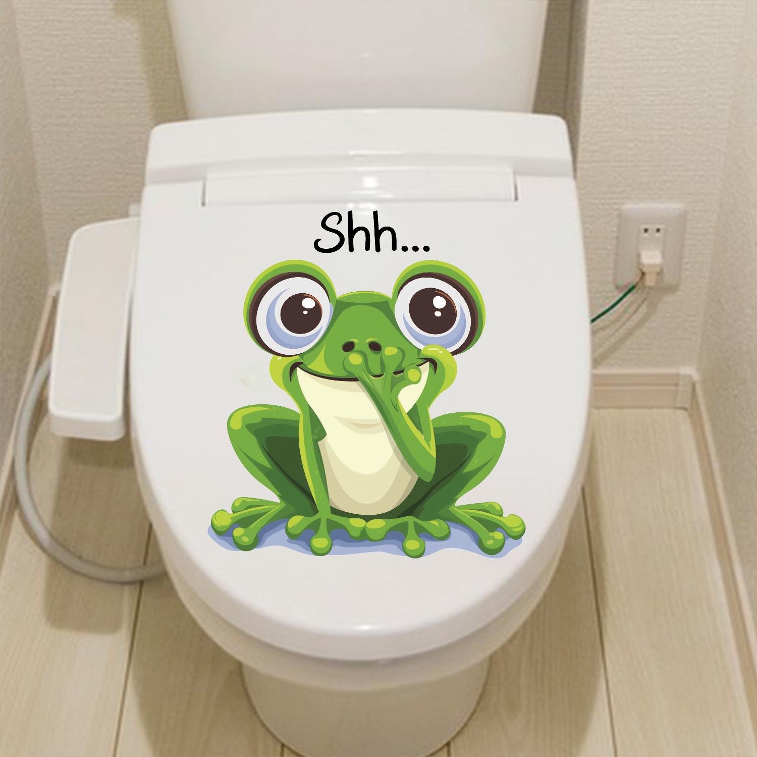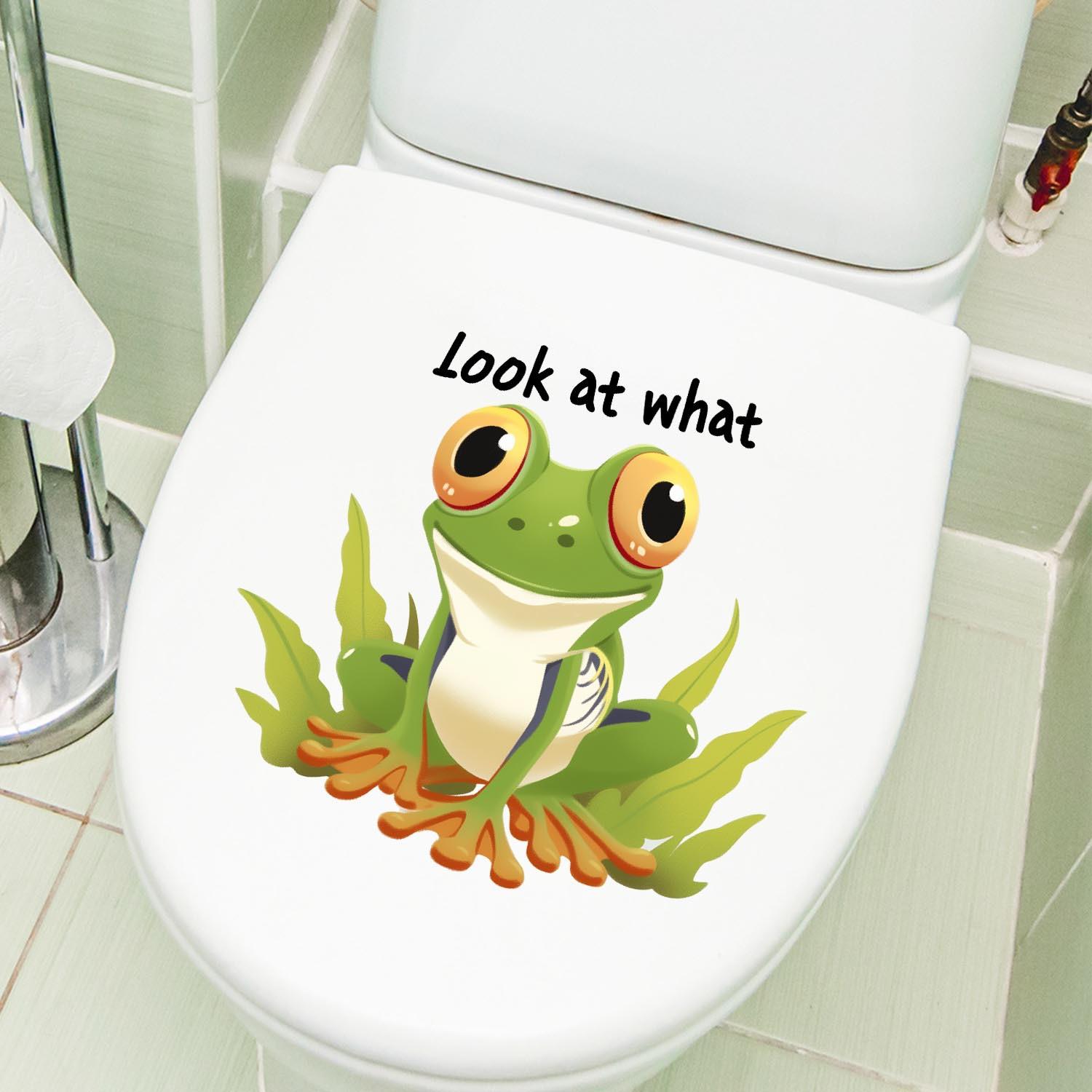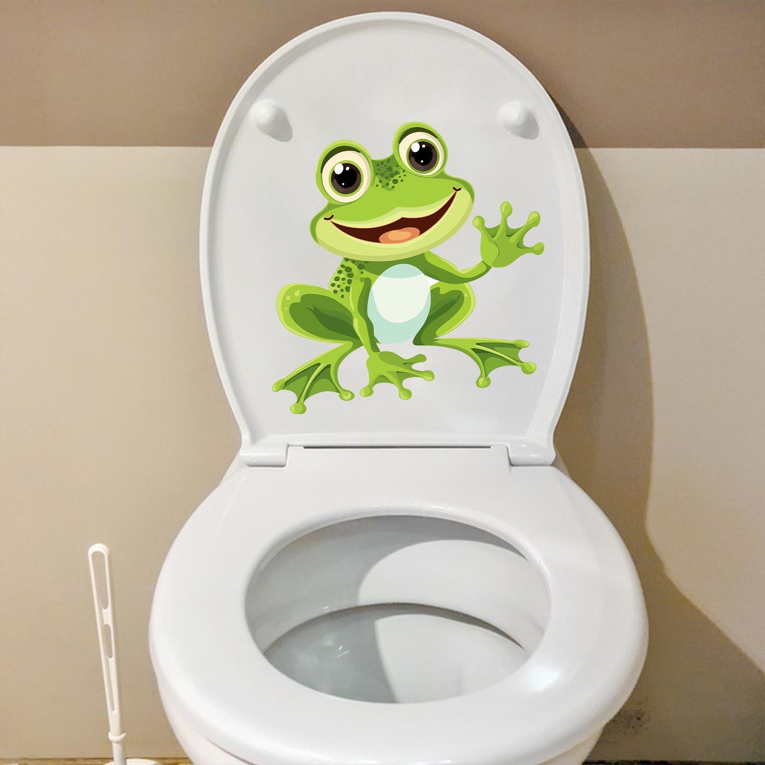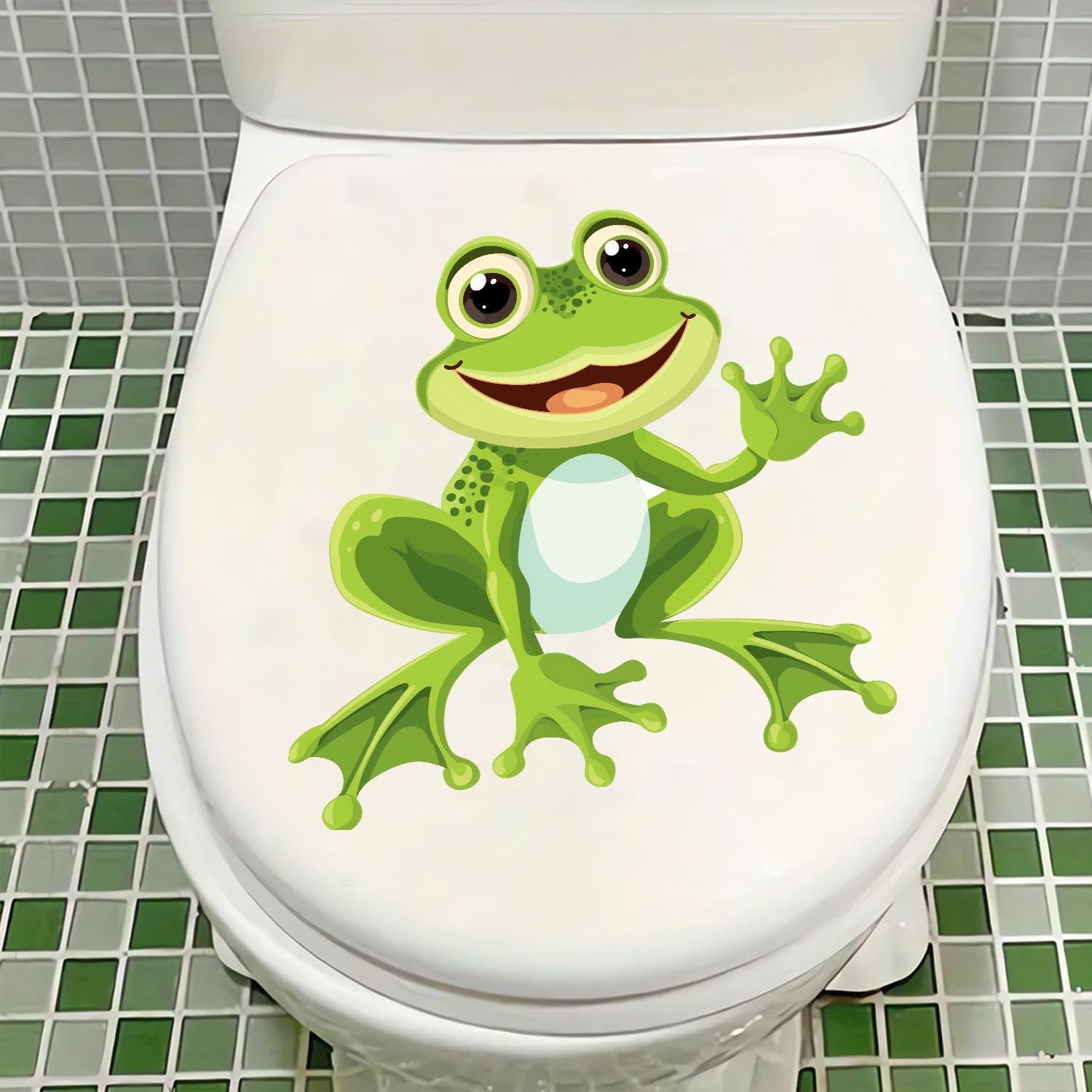Lindo diseño de pegatinas de inodoro de rana verde, decoración de inodoro de baño, pegatinas de pared de embellecimiento al por mayor