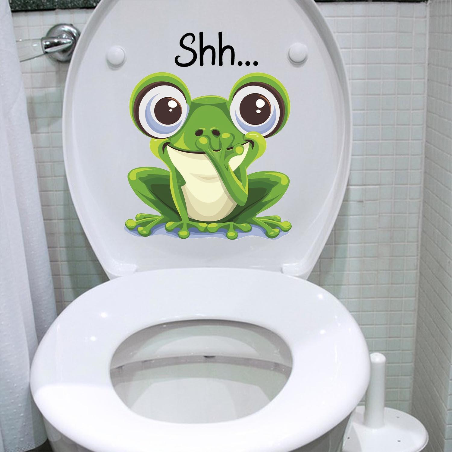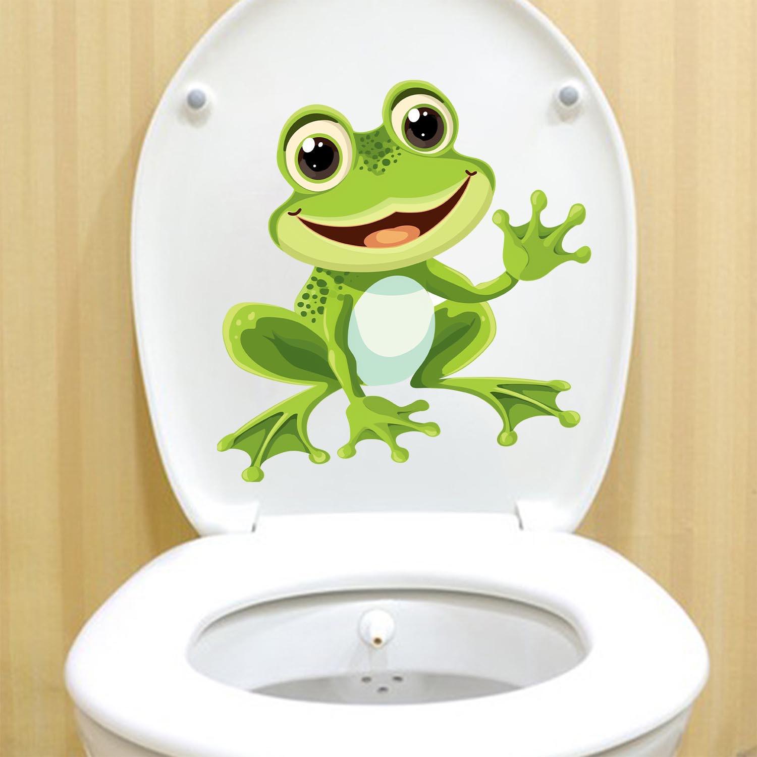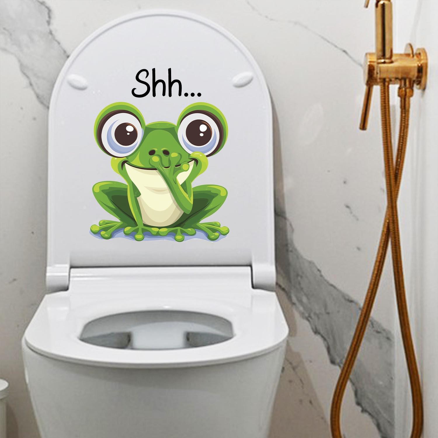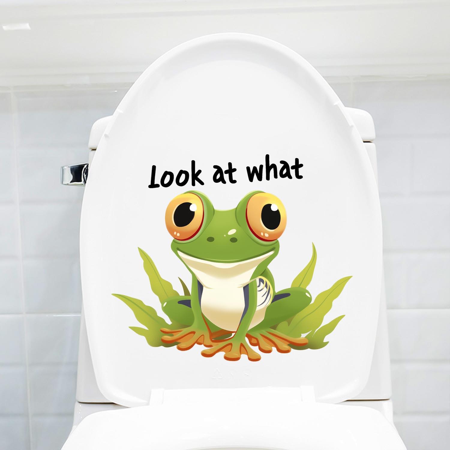 Lindo diseño de pegatinas de inodoro de rana verde, decoración de inodoro de baño, pegatinas de pared de embellecimiento al por mayor