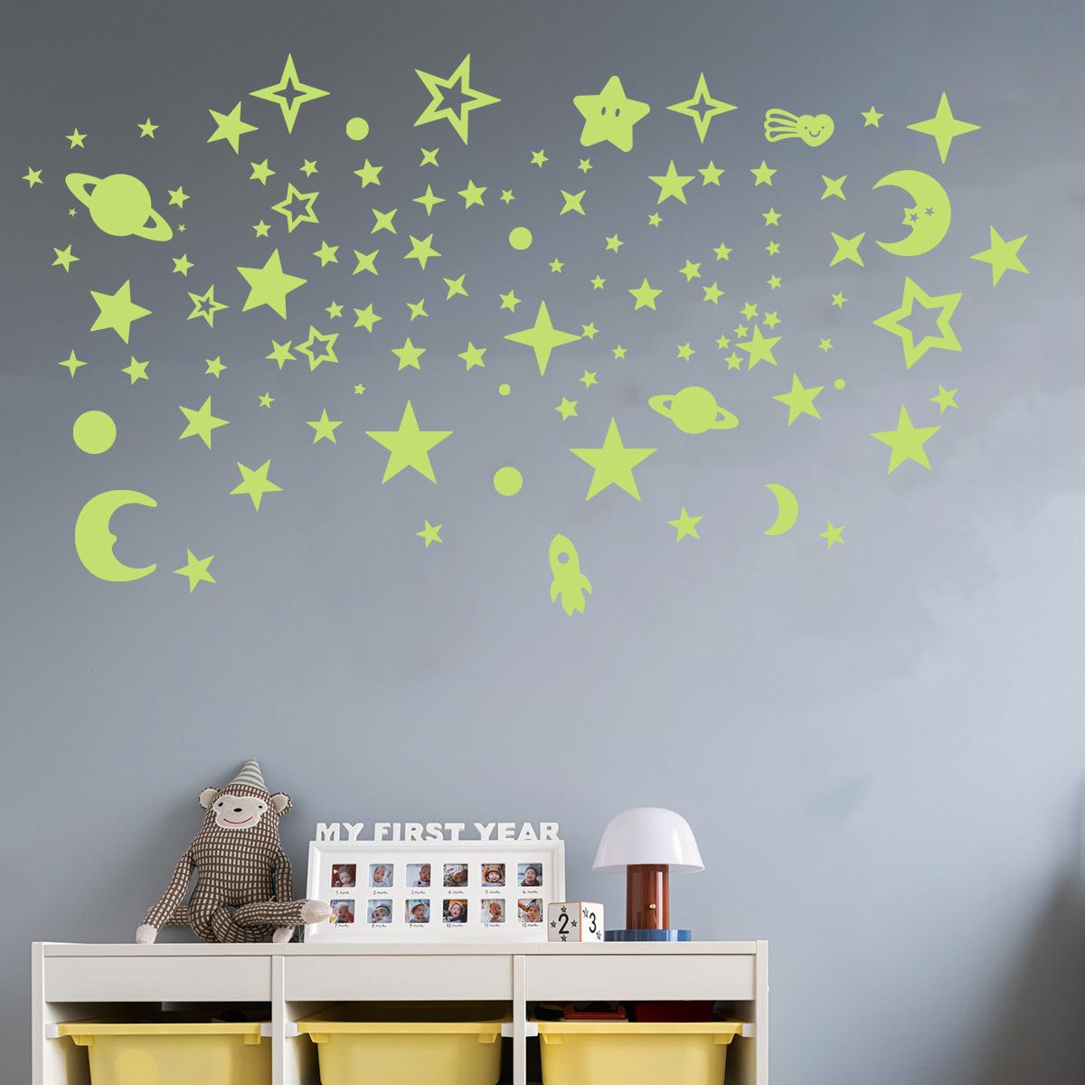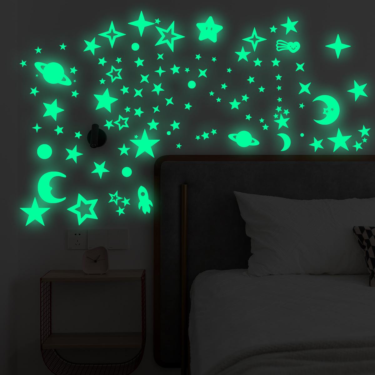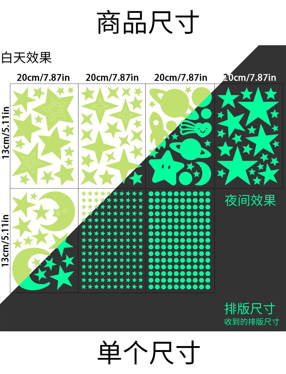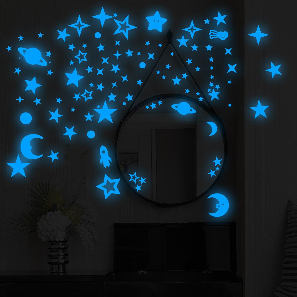 Pegatinas luminosas de estrella y luna, pegatinas de pared transfronterizas de Amazon, decoración para dormitorio infantil, pegatinas fluorescentes, pegatinas de pared