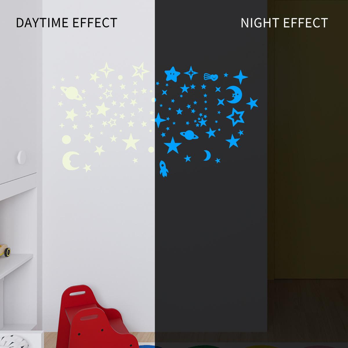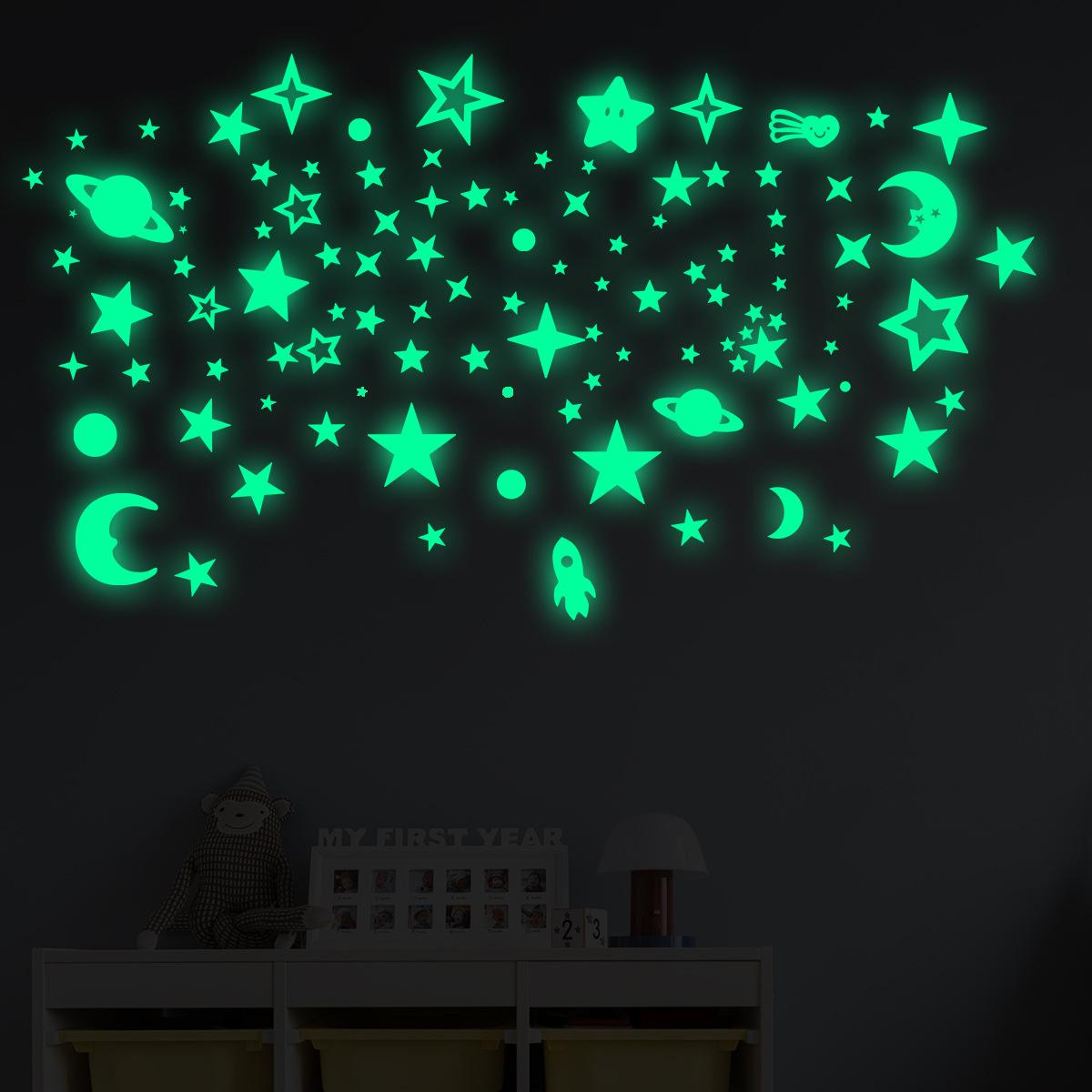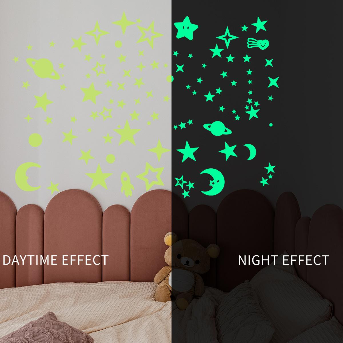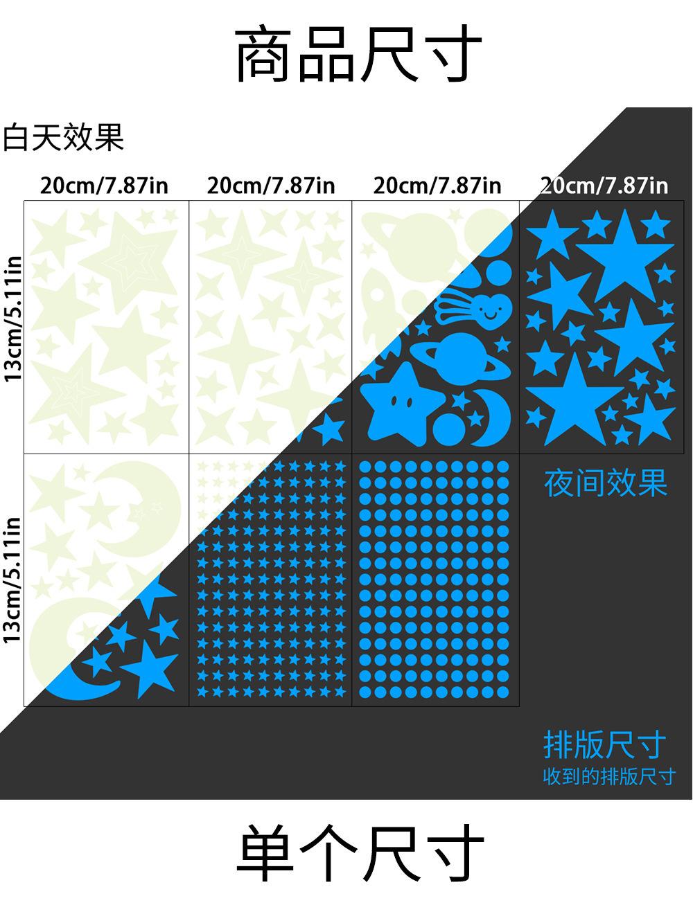 Pegatinas luminosas de estrella y luna, pegatinas de pared transfronterizas de Amazon, decoración para dormitorio infantil, pegatinas fluorescentes, pegatinas de pared