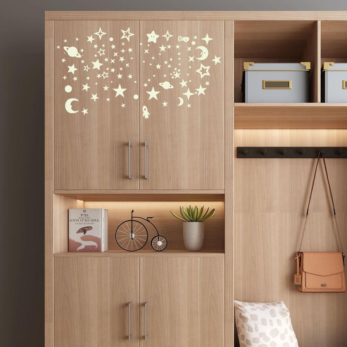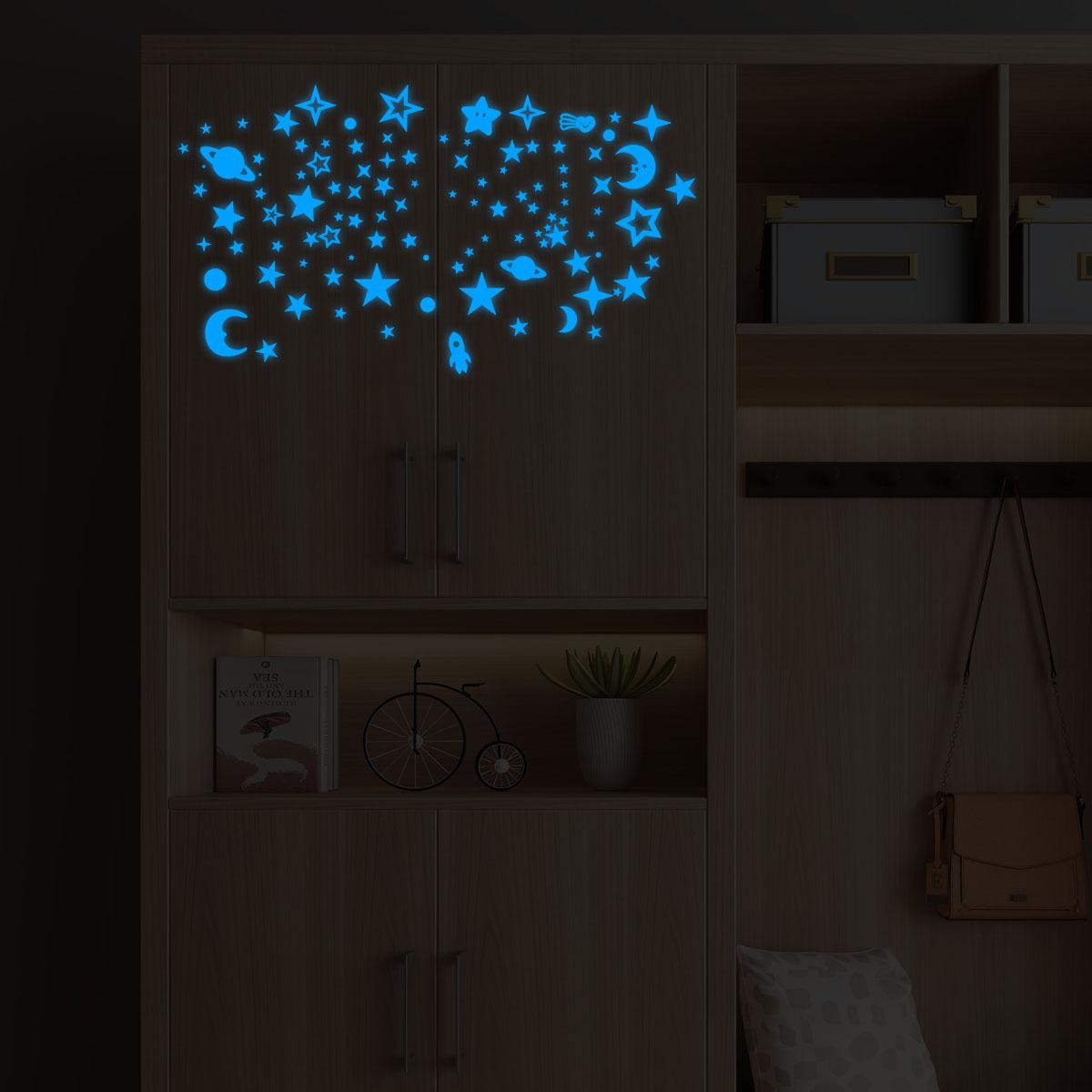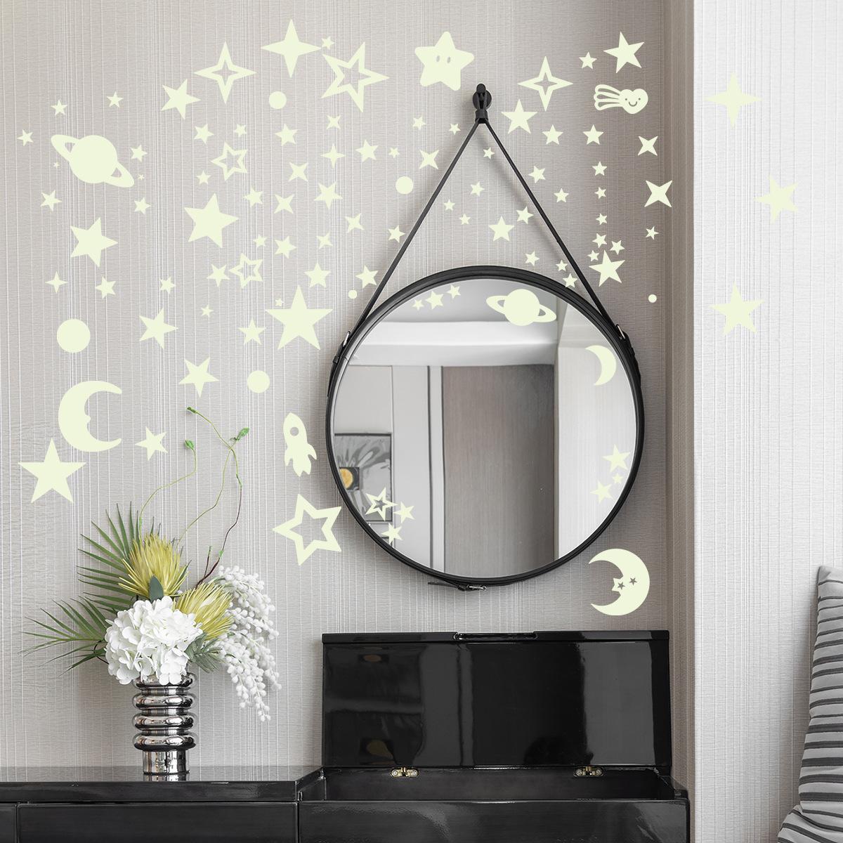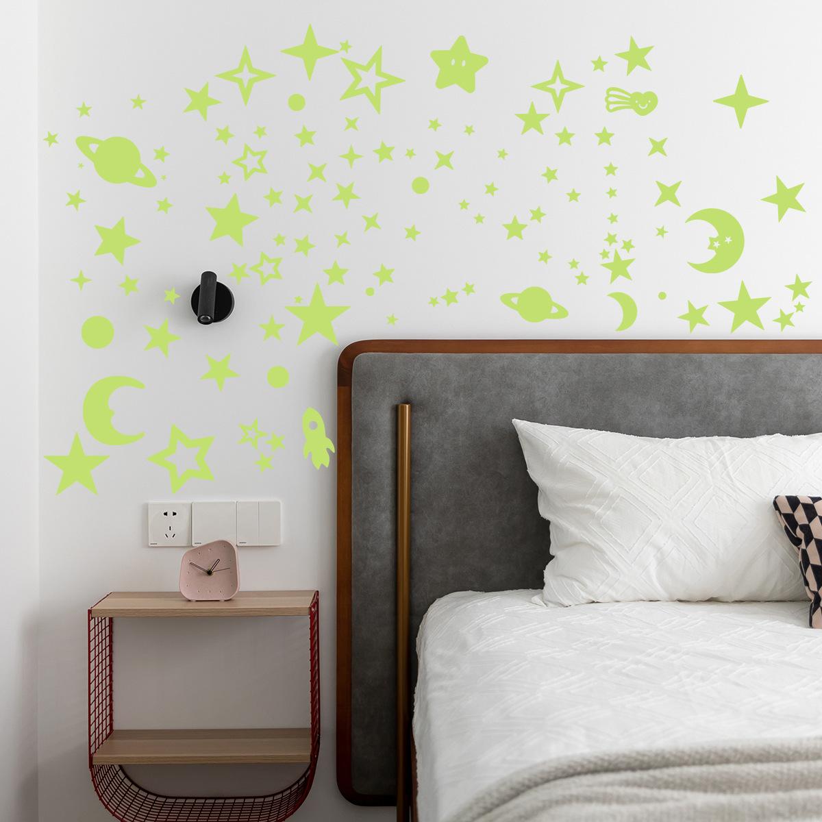 Pegatinas luminosas de estrella y luna, pegatinas de pared transfronterizas de Amazon, decoración para dormitorio infantil, pegatinas fluorescentes, pegatinas de pared