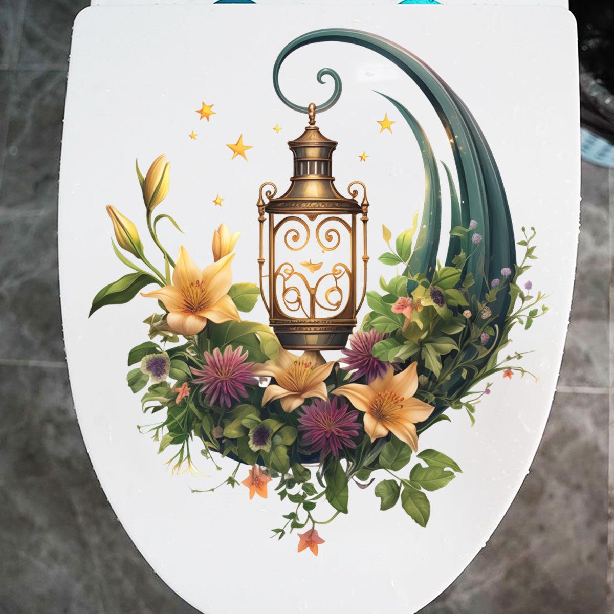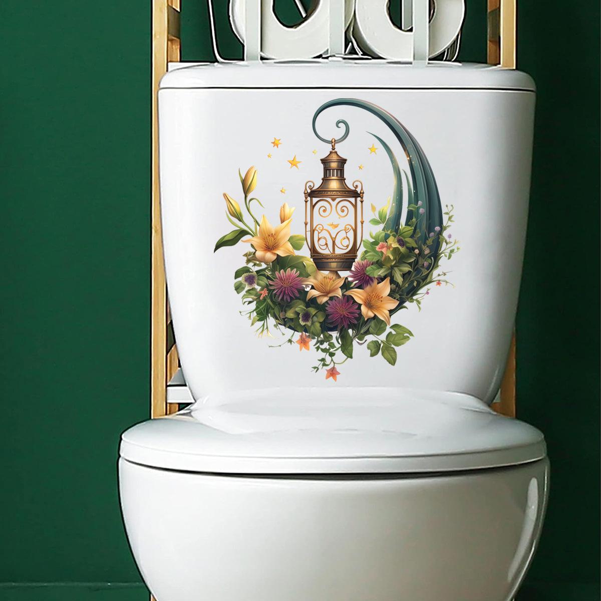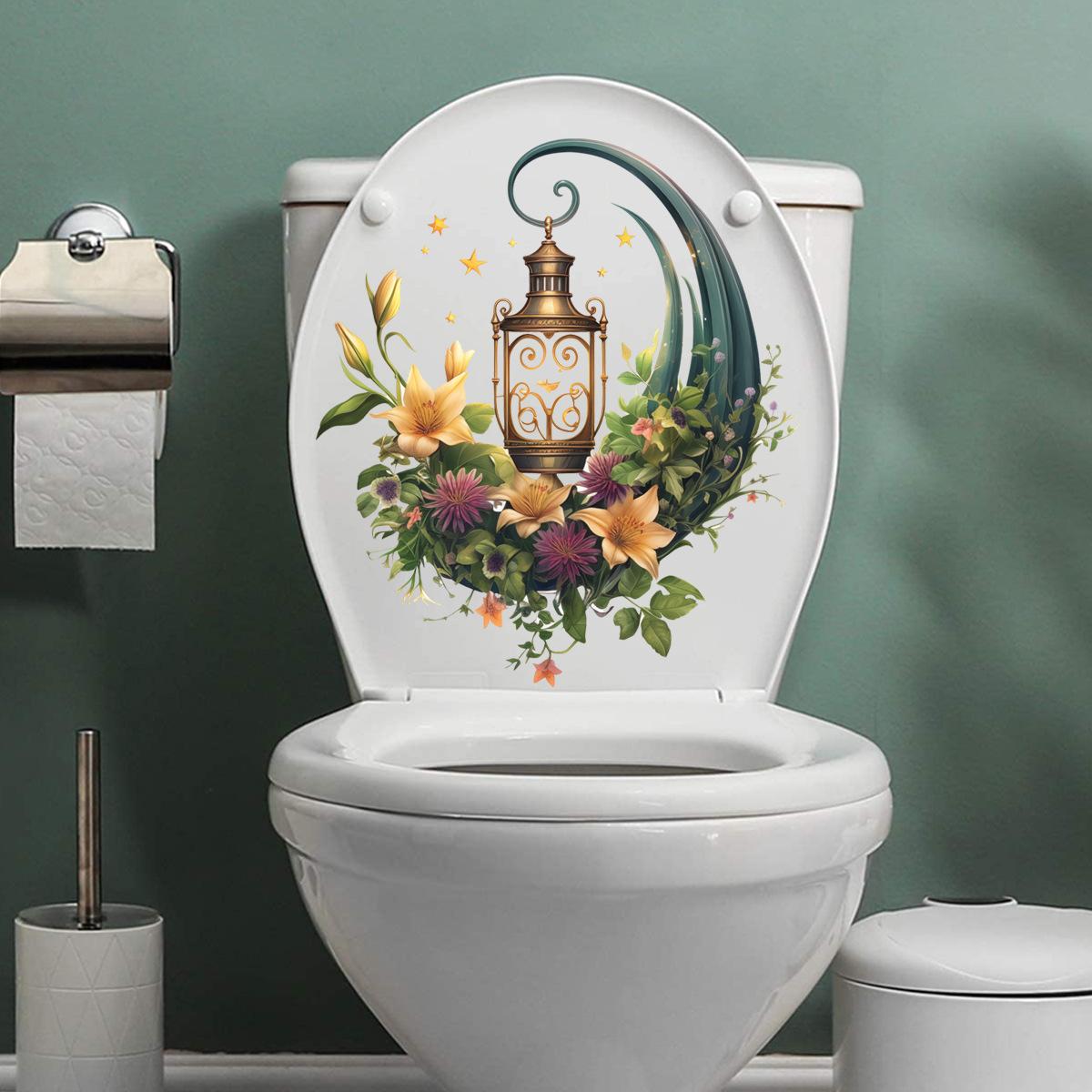 Calcomanías de flores con linternas creativas transfronterizas de Amazon, pegatinas decorativas para el asiento del inodoro del baño, pegatinas para el hogar, pegatinas de pared autoadhesivas