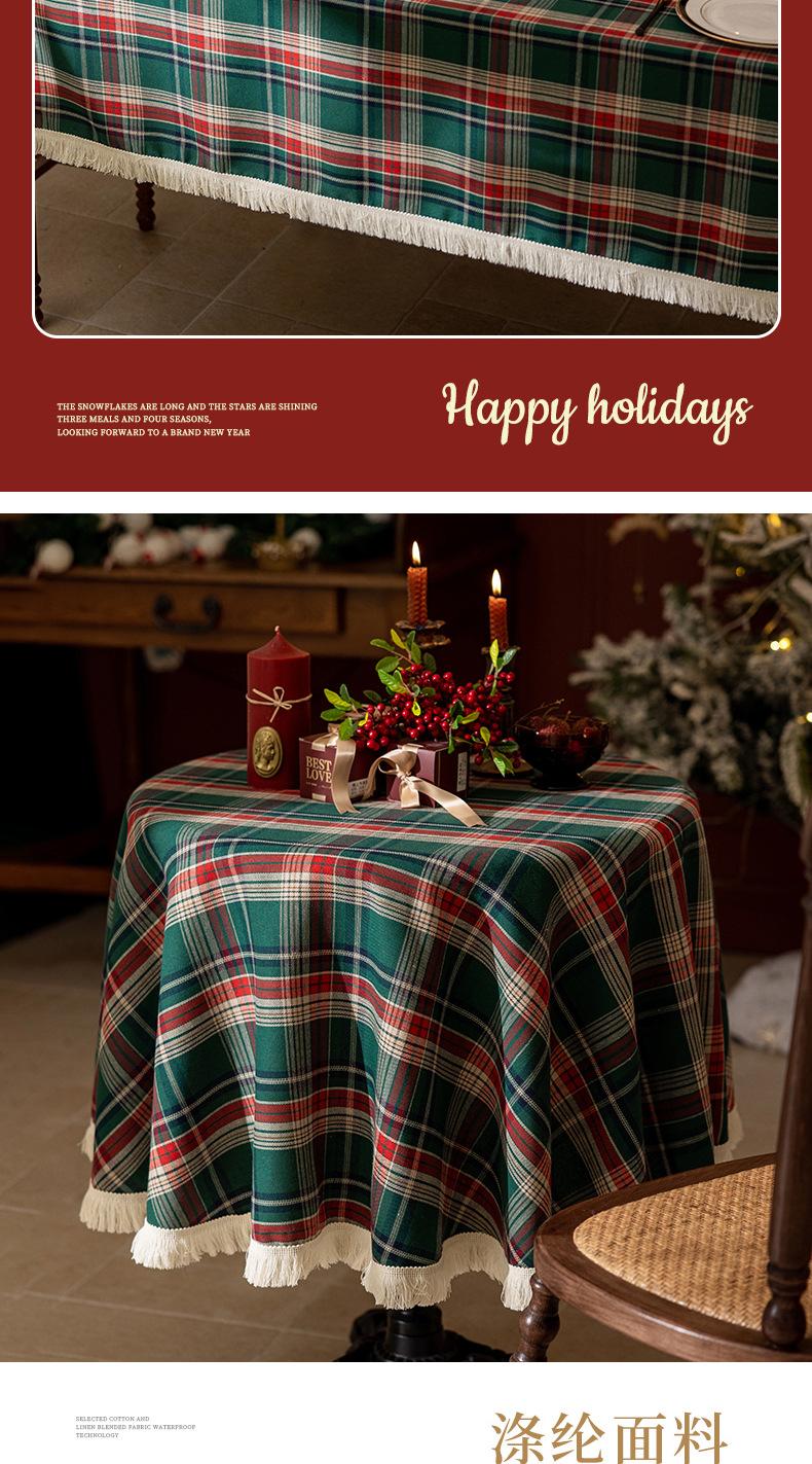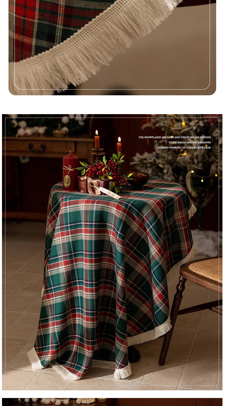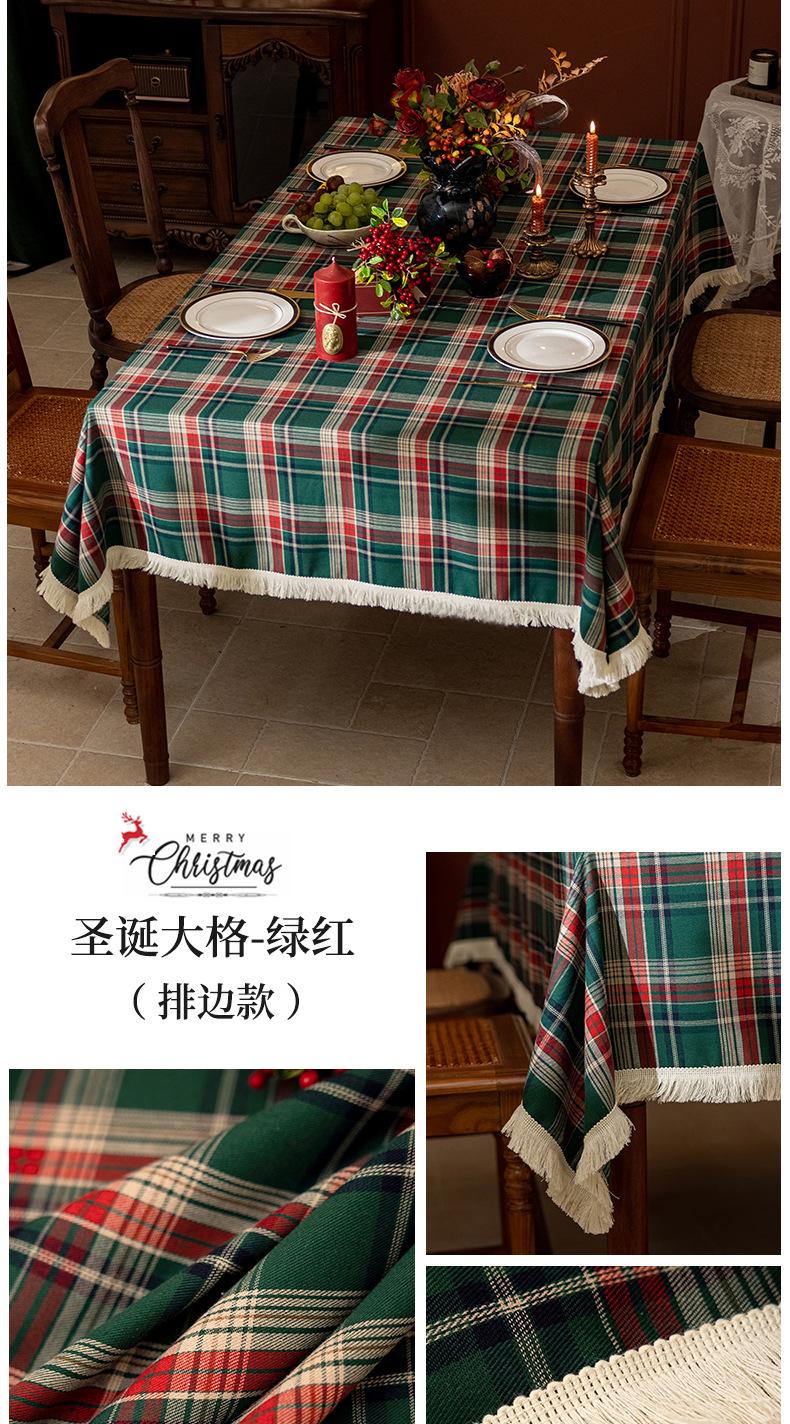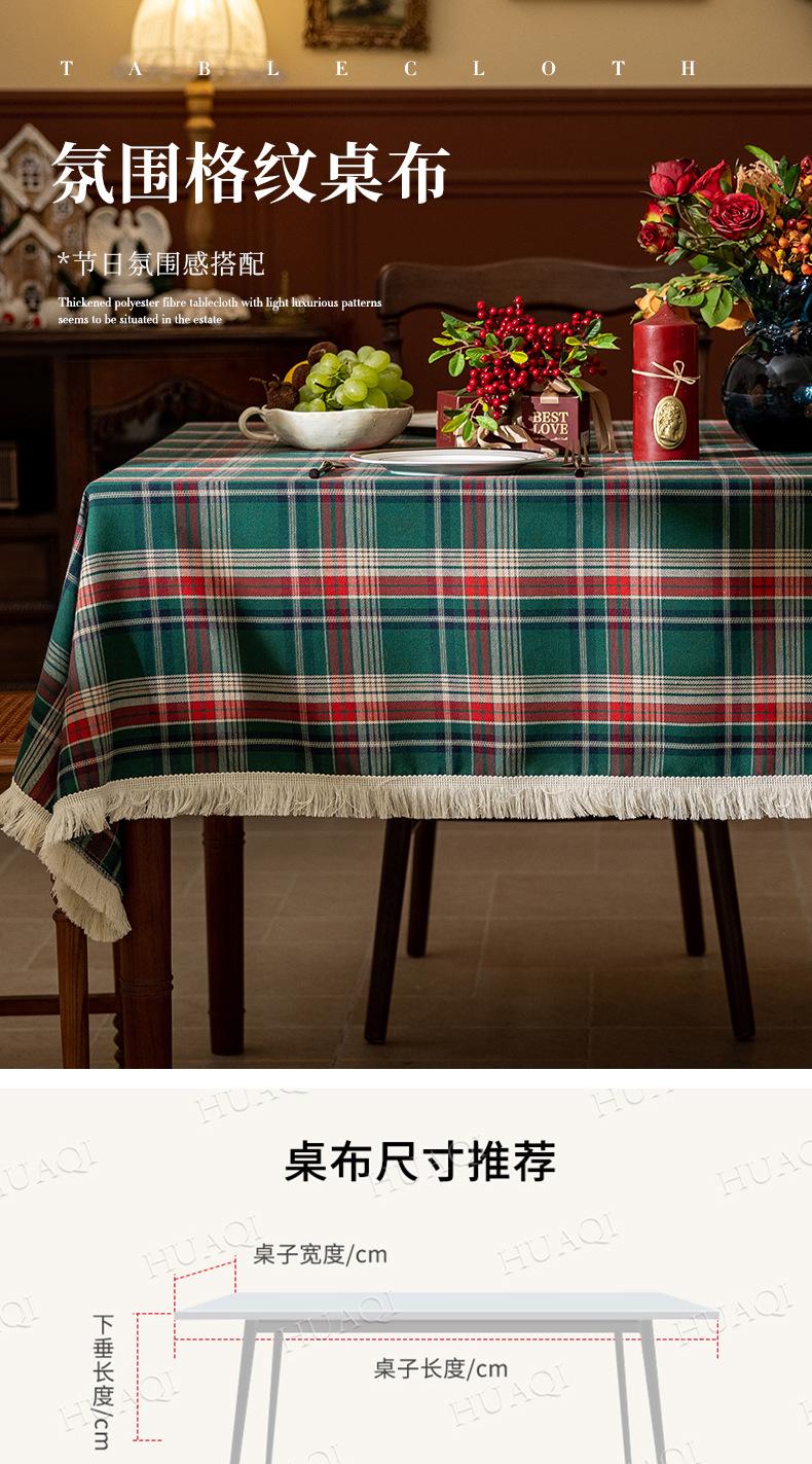 Mantel a cuadros estilo americano transfronterizo, rectangular, estilo retro, para mesa de centro, con borlas, decorativo