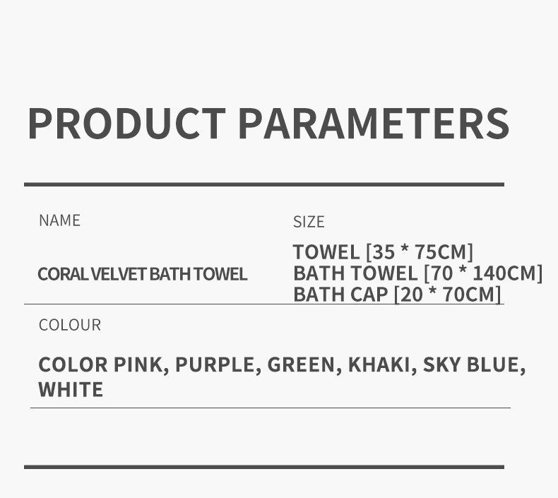 Bath towel [70*140cm], Towel "35*75cm], Two-piece set of bath towel, Shower cap [20*70]]
