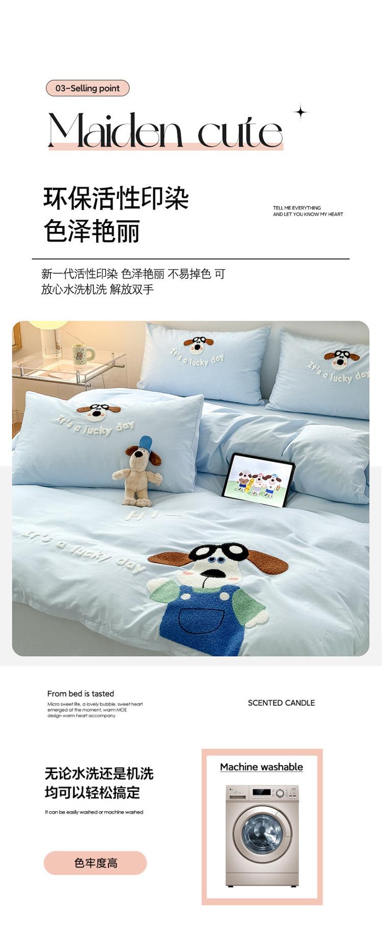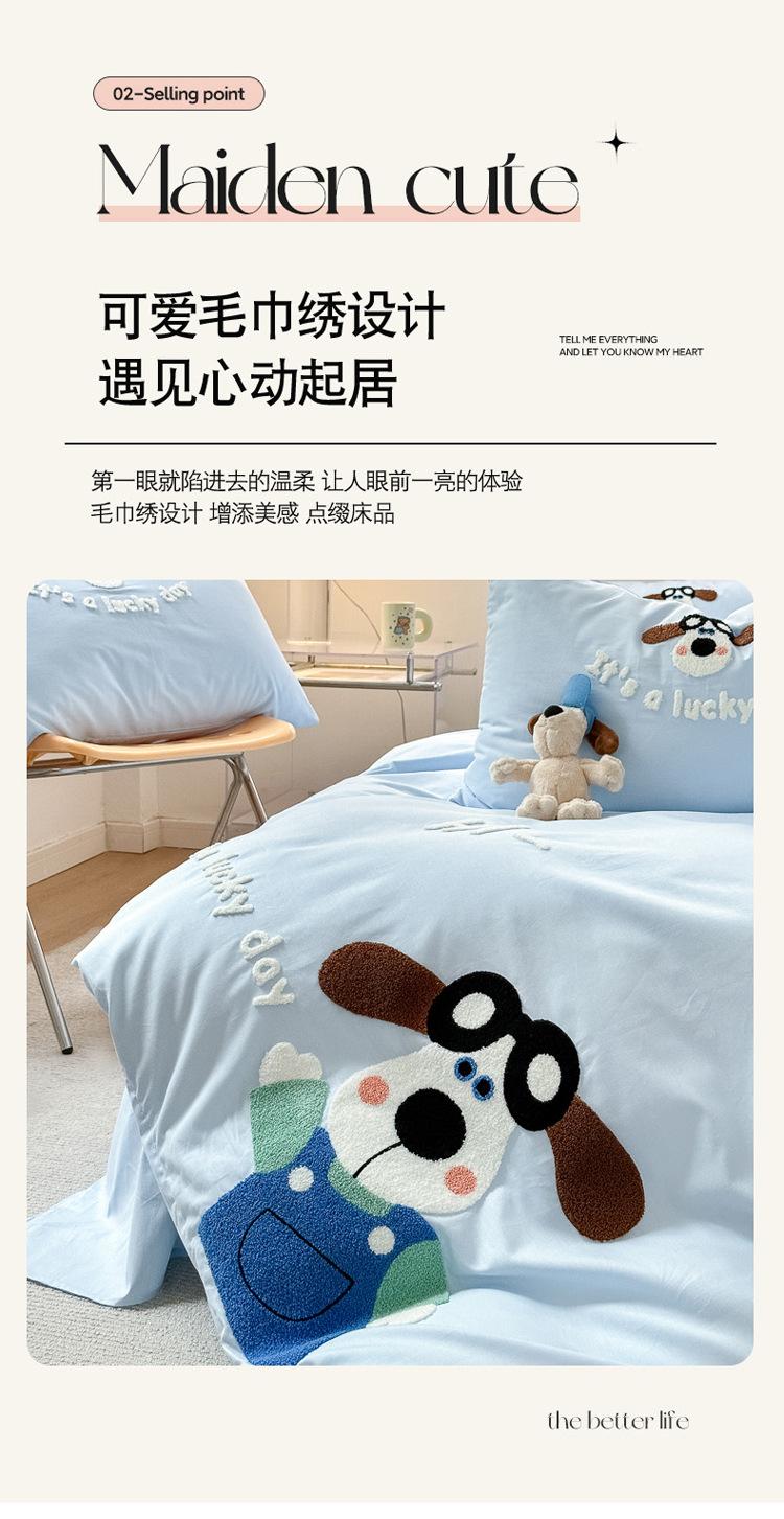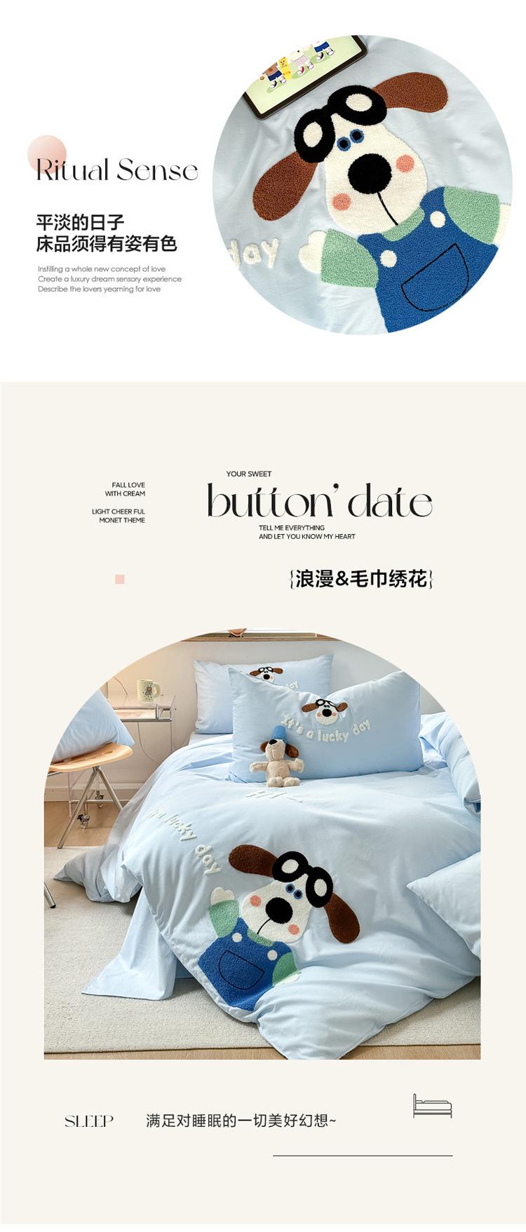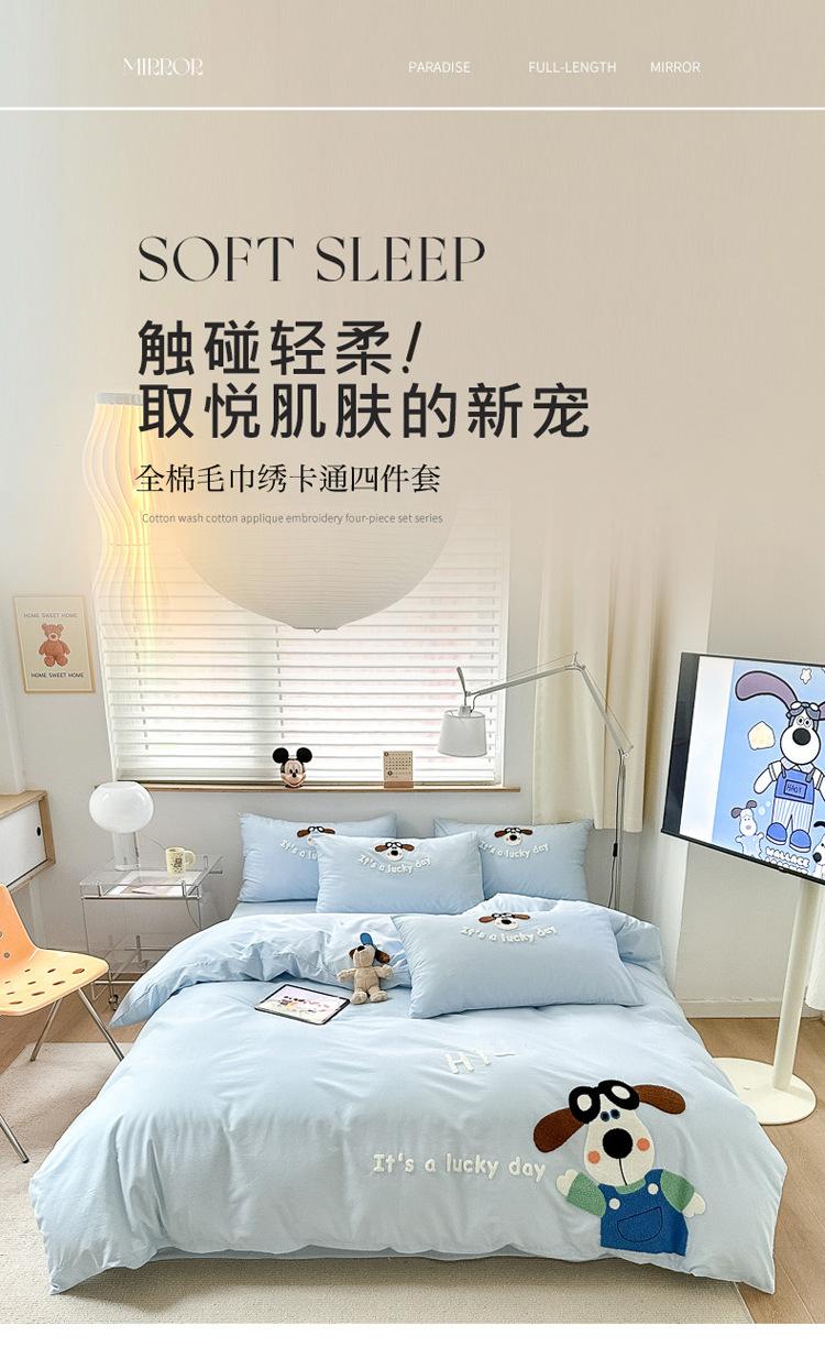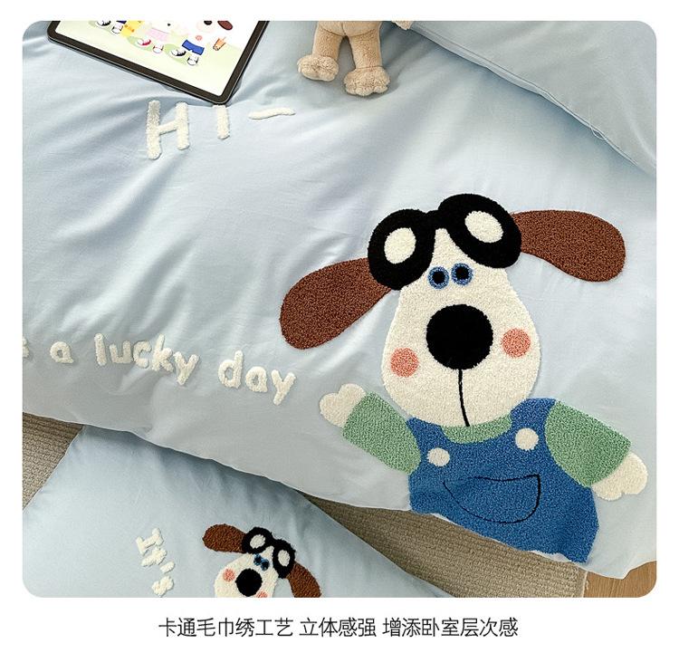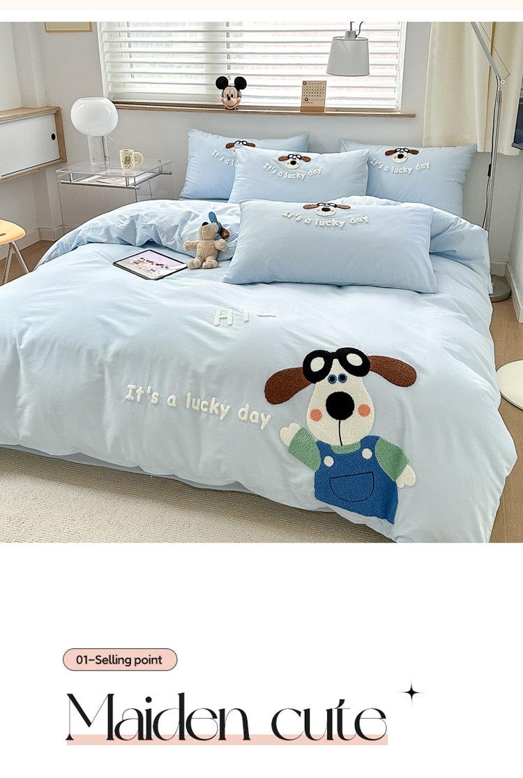Algodón ins algodón lavado fresco juego de cuatro piezas bordado simple algodón puro 100 caricatura sábana ajustable toalla funda nórdica bordada