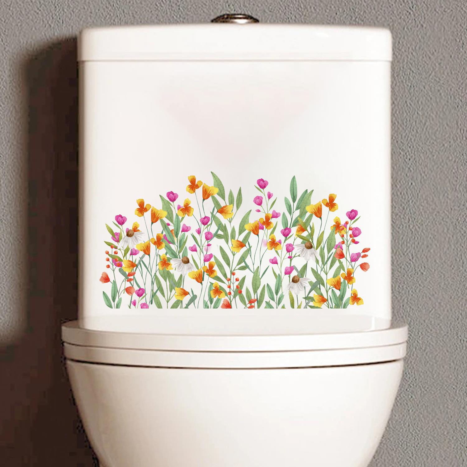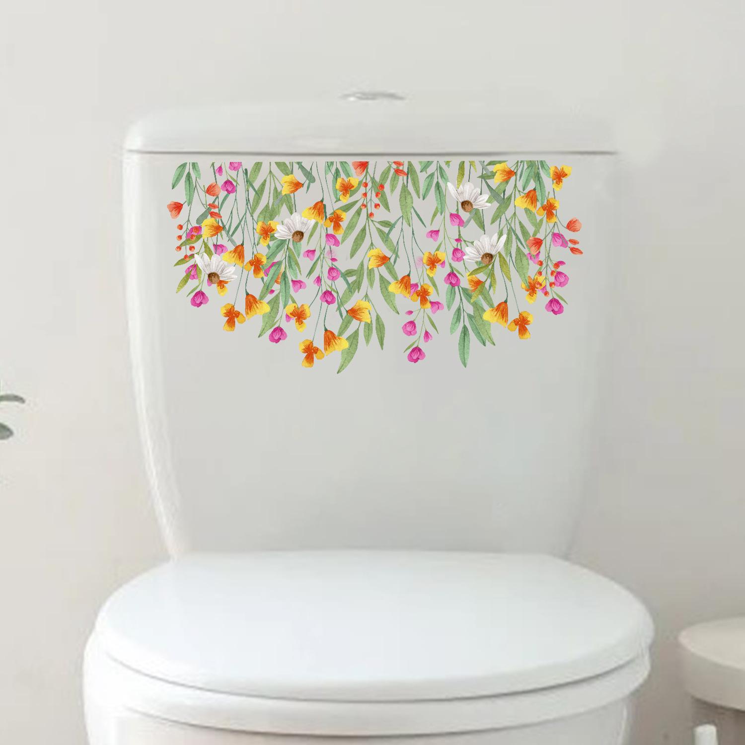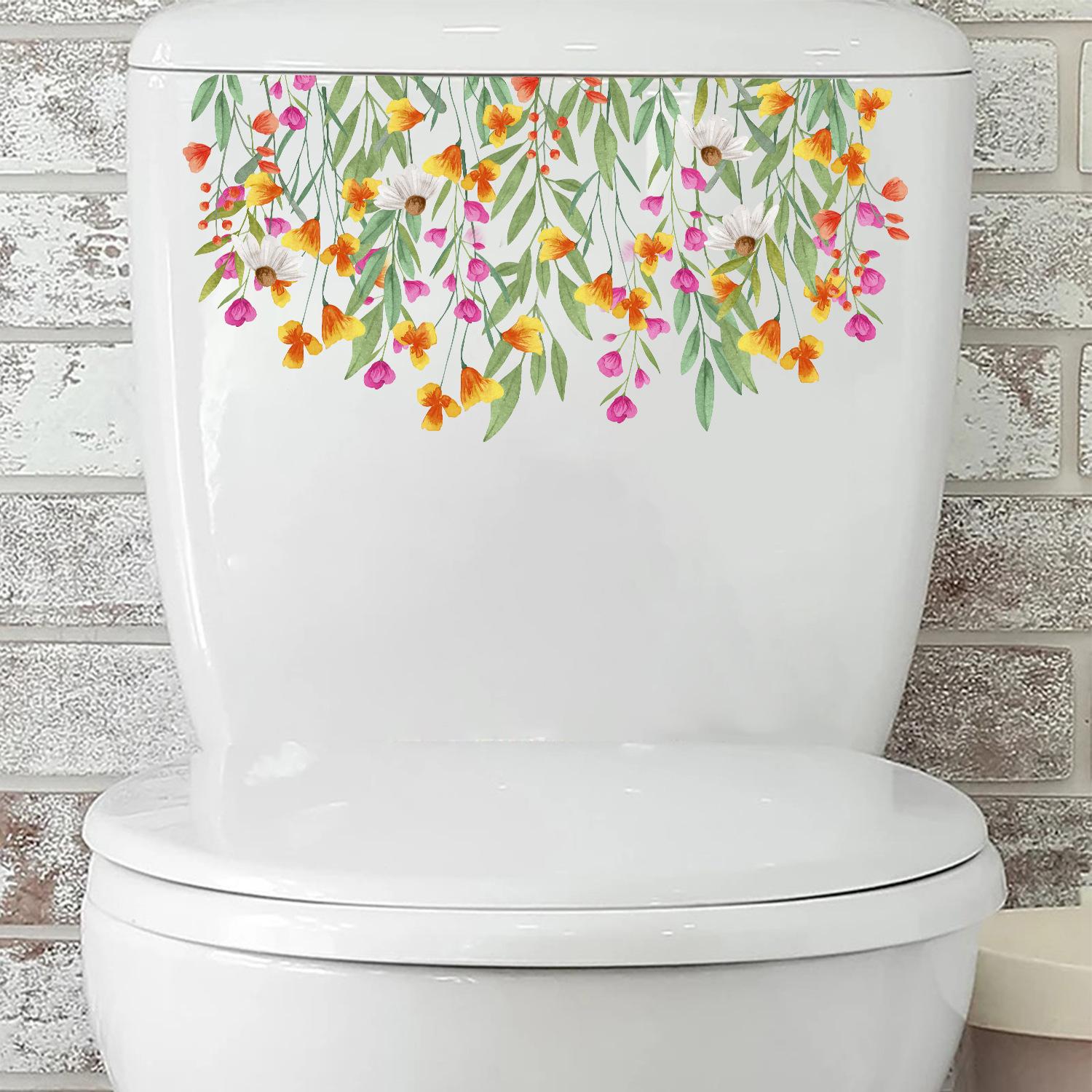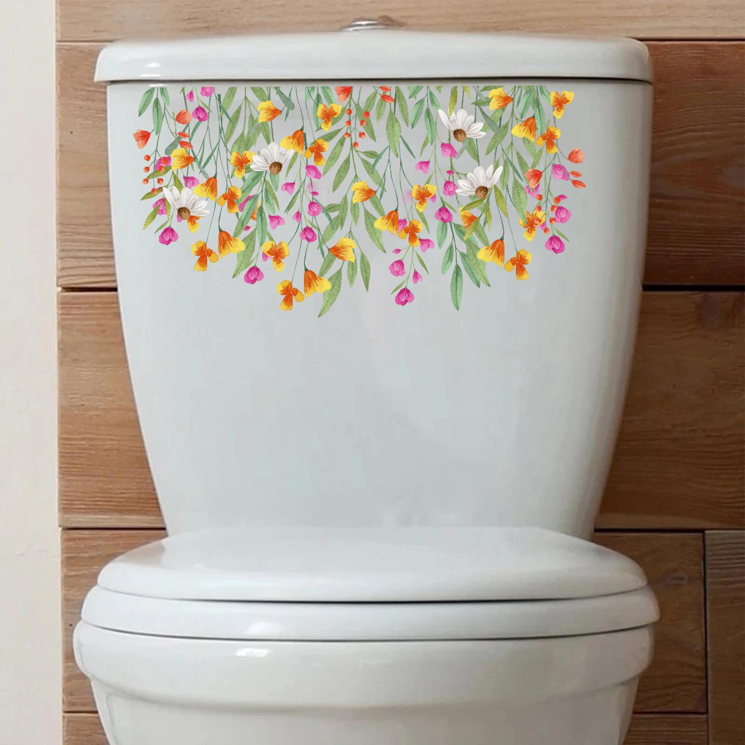 Transfronterizo Amazon Comercio Exterior Flores Flor Floración Pegatinas Pegatinas para Inodoro Diseño Baño Inodoro Lavabo Pegatinas de Pared