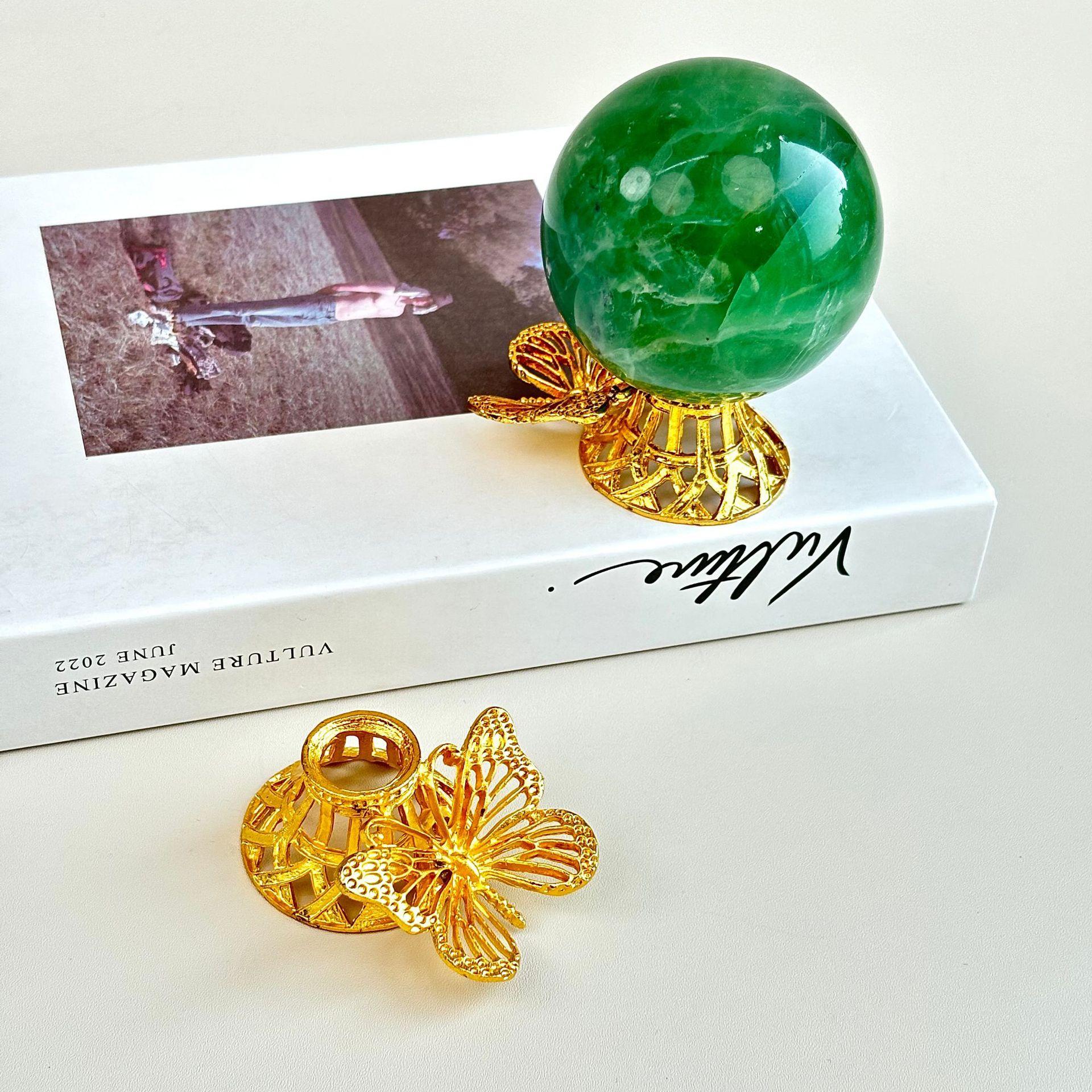 Bola de Cristal Artesanías Base Soporte para Pelota de Béisbol Soporte para Talla de Huevo Mariposa de Metal Adornos Antiguos Retro Adornos Estrella Dorada