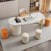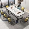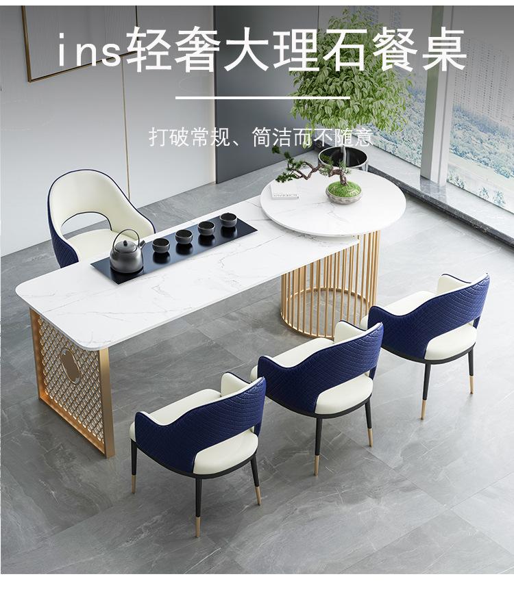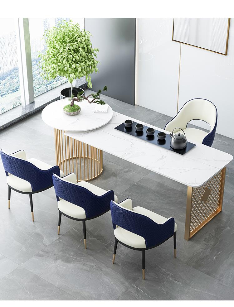 Mesa de Té y Silla de Mármol de Lujo Ligero Nórdico Combinación Hogar Sala de Estar Balcón Mesa de Té Casual Mesa de Té de Hierro Hueco