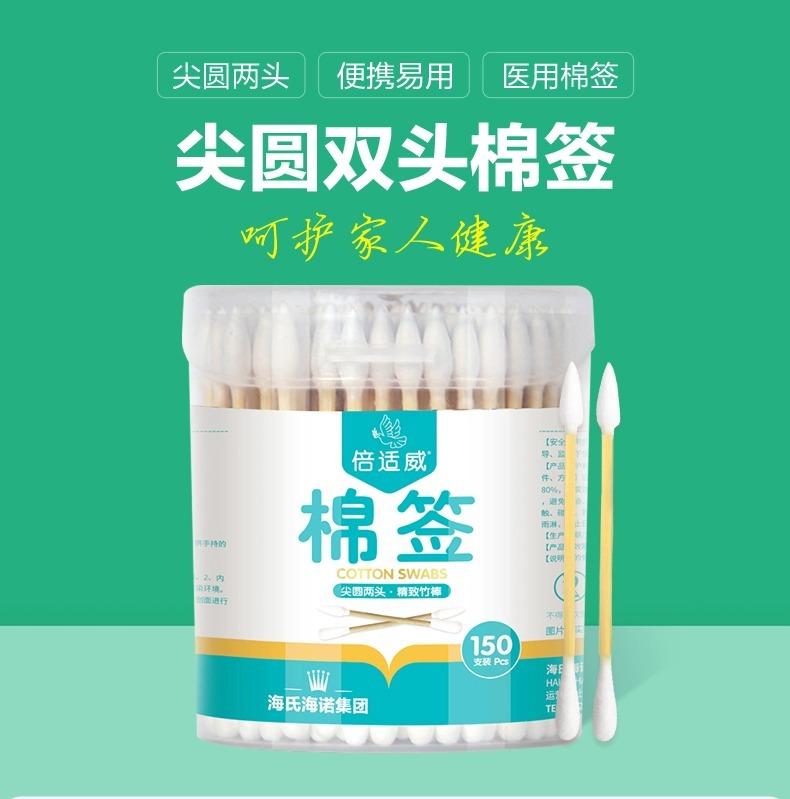 Hisopos de algodón Haishi Hainuo Beishiwei Hisopos de algodón de doble punta 150 Cabezal redondo puntiagudo Desmaquillante Limpieza de oídos