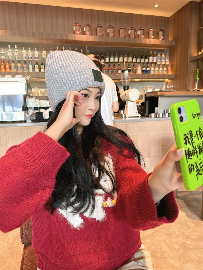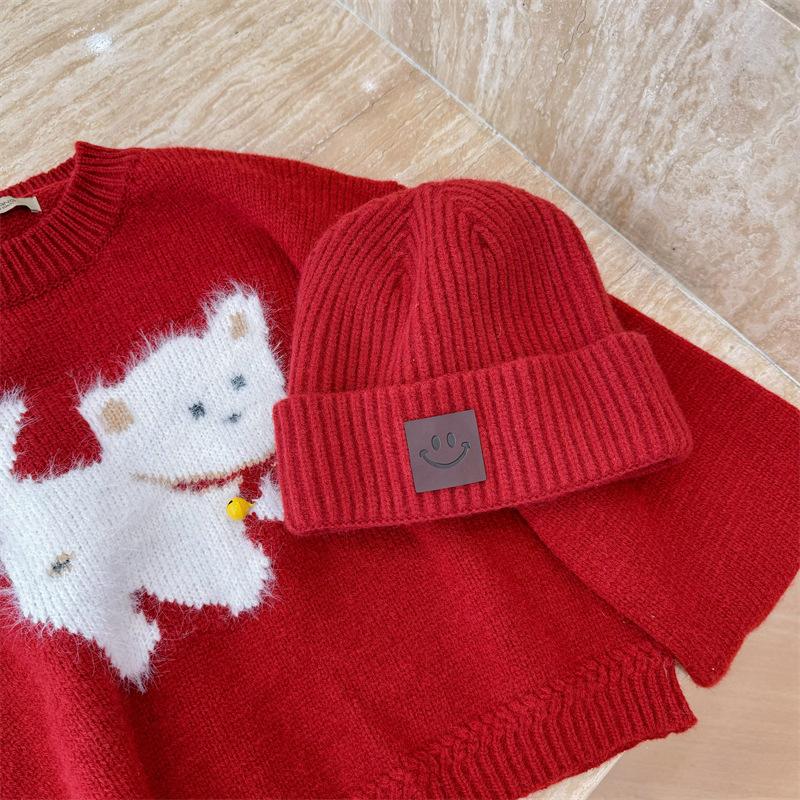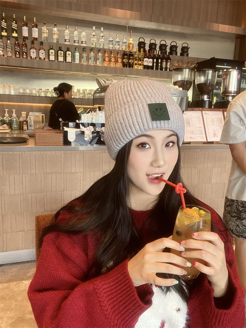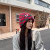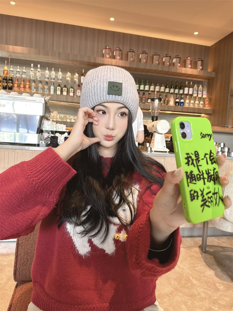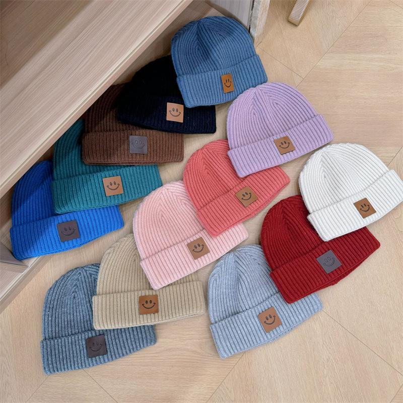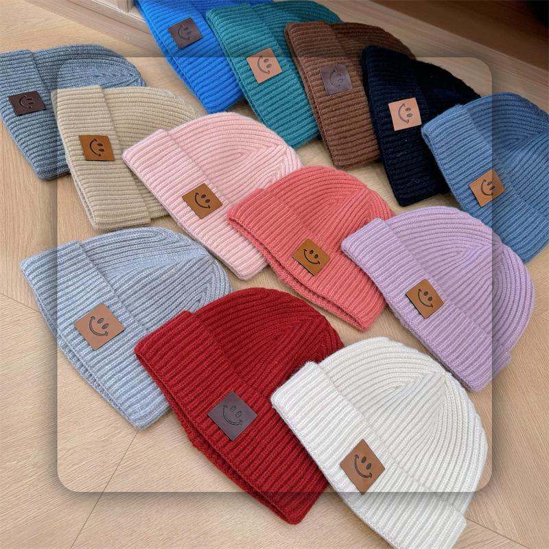Gorro de lana para mujer, otoño e invierno, japonés, moderno, grande, para la cabeza, pequeño, cálido, protector de orejas, resistente al frío, combinable, gorro de punto con cara sonriente.