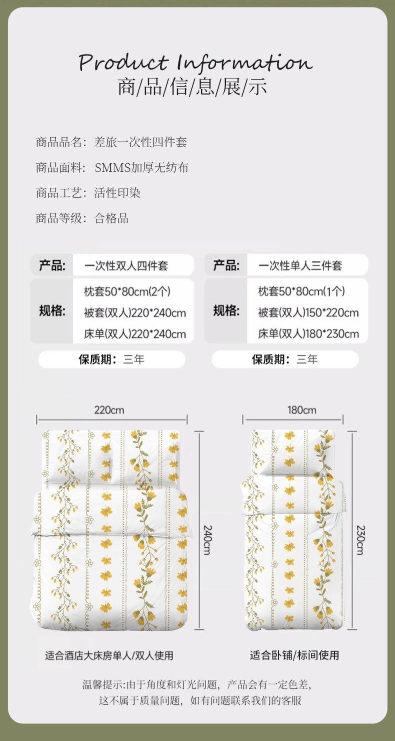Sábanas Desechables Gruesas Juego Grande de Cuatro Piezas Verano Viaje Suministros de Hotel Hogar Plegable Portátil Venta al por Mayor