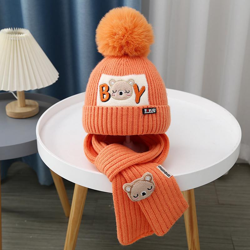 Gorro de lana de oso para niño y niña, de dos piezas, de otoño e invierno, de algodón cálido, tejido y bufanda.