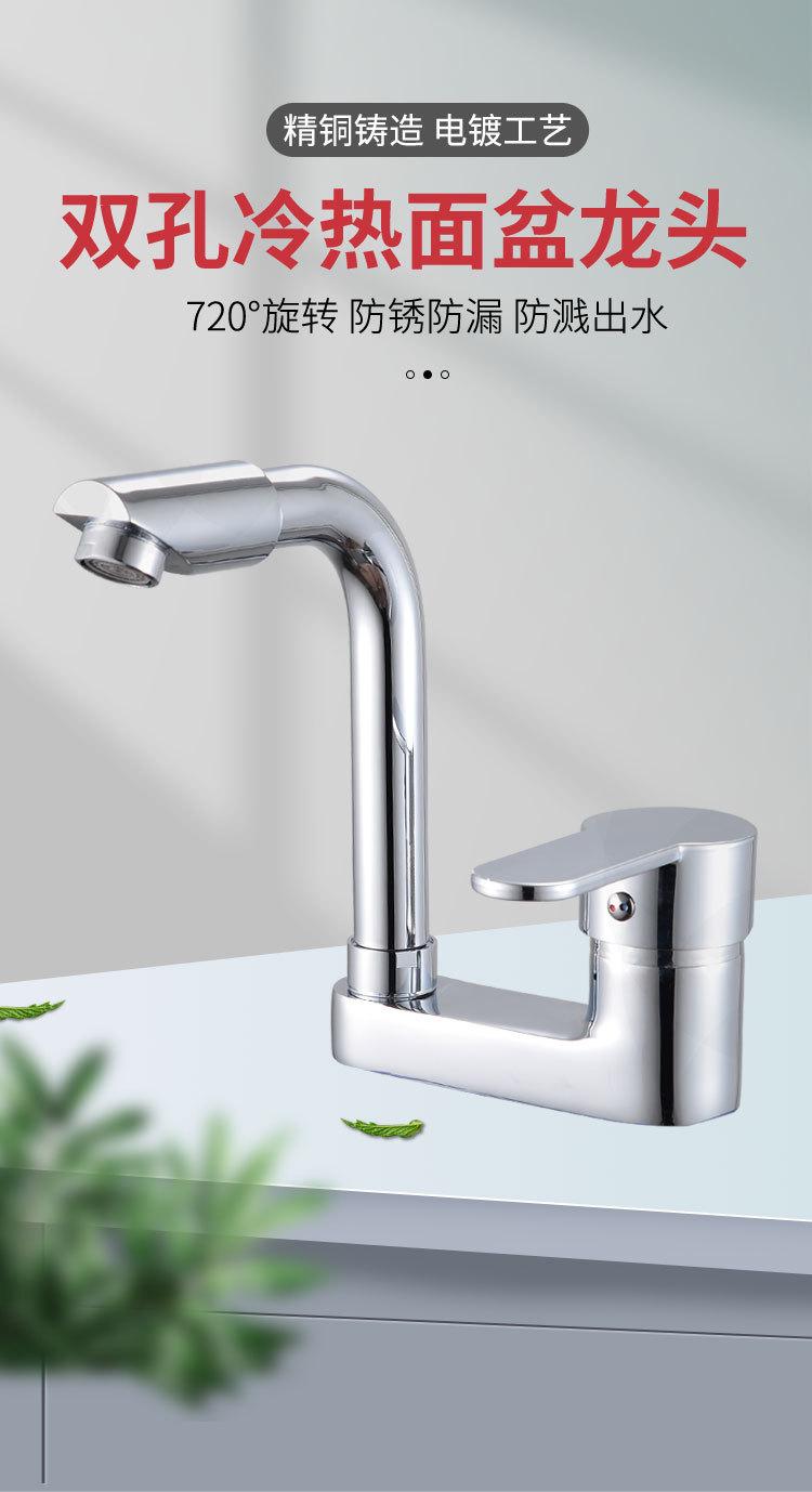 Grifo de lavabo para inodoro de cobre con doble orificio, agua fría y caliente, grifo para lavabo dos en uno