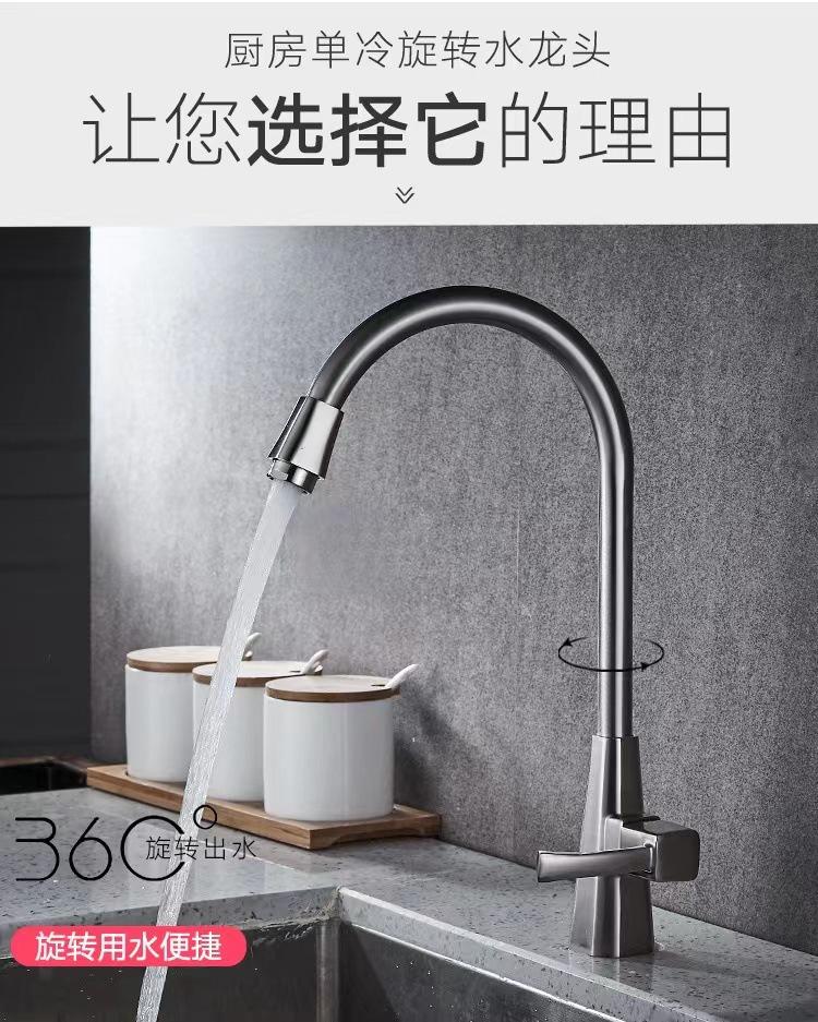 Fregadero de cocina, grifo de agua fría simple, fregadero giratorio de acero inoxidable 304 para el hogar, grifo de agua fría simple